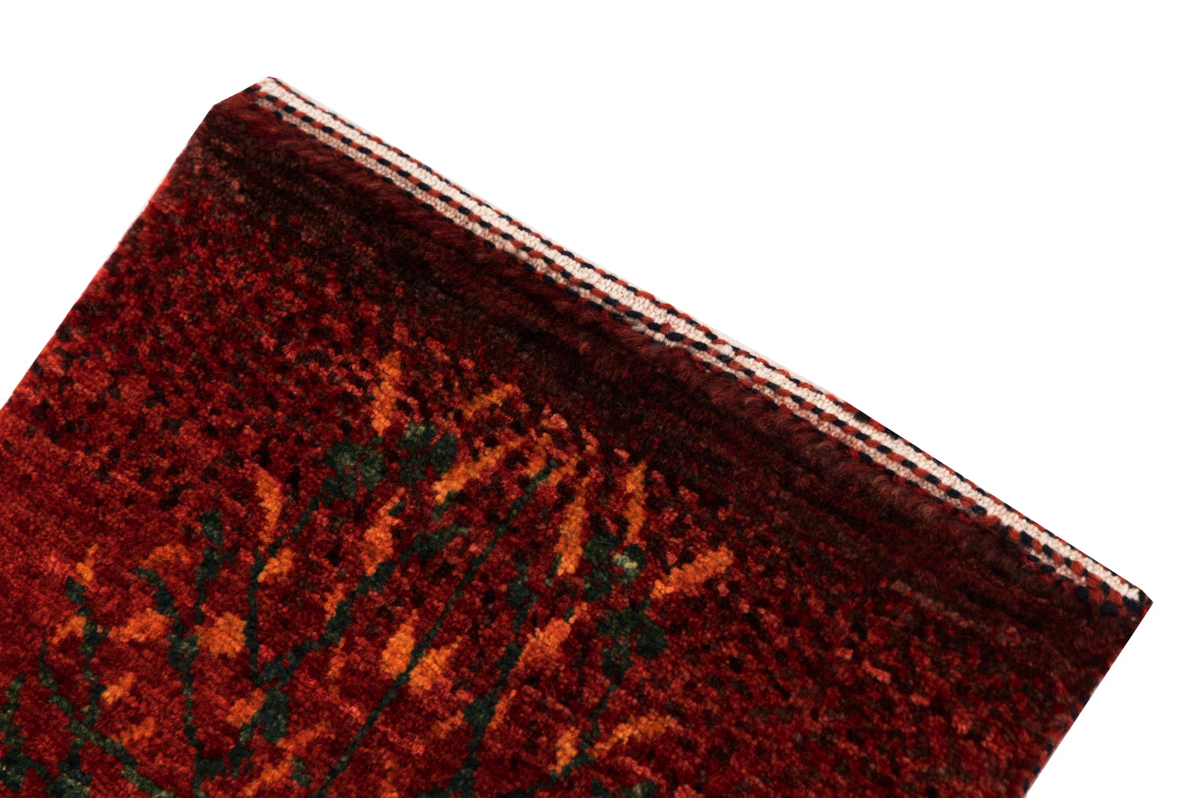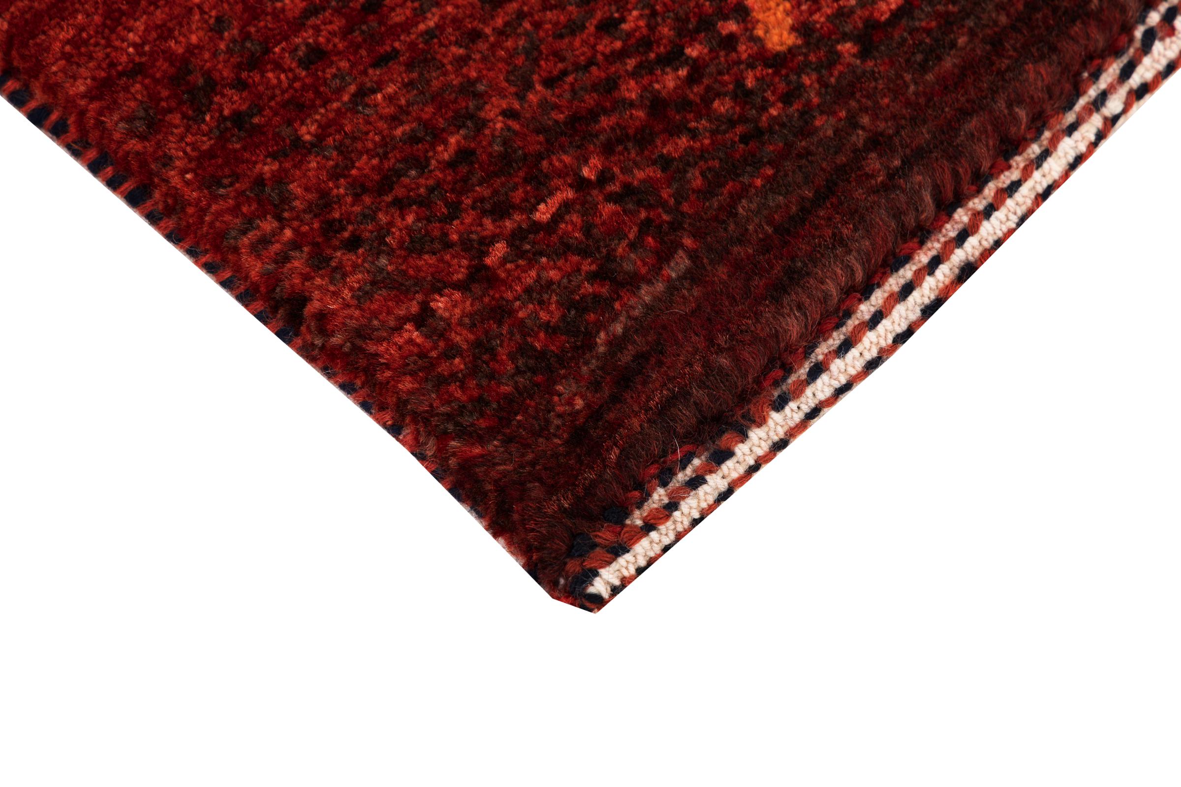 Dette smukke tæppe er en persisk Gabbeh og er en af ​​de højeste kvalitet Gabbeh tæpper. Tæpper er knyttet af nomader eller semi-nomader i Iran ved hjælp af traditionelt håndværk. De enkle motiver og mønstre er for det meste inspireret af nomadernes umiddelbare omgivelser. F.eks. Kan kameler, træer eller buske findes på traditionelle tæpper. Persiske Gabbeh-tæpper er lavet af uld fra lokale fårbesætninger. Ulden er derfor for det meste spundet for hånd. Hver af disse orientalske tæpper udgør en unik karakter af århundreder gammel kultur.