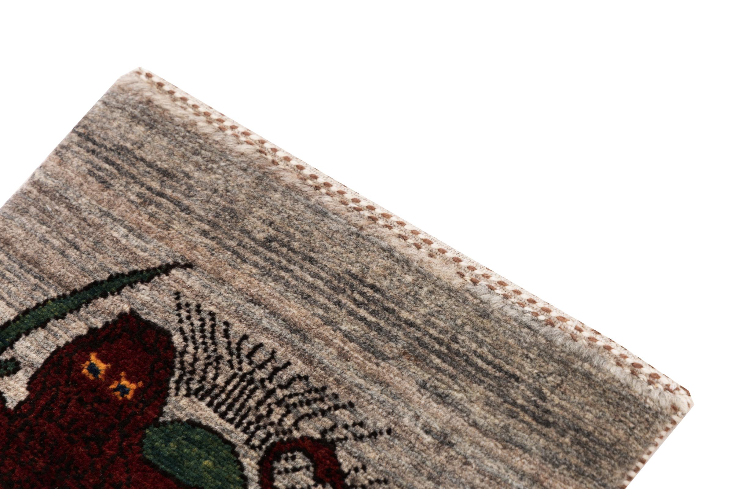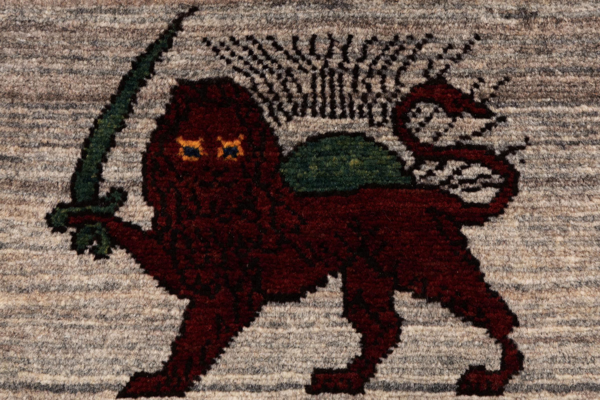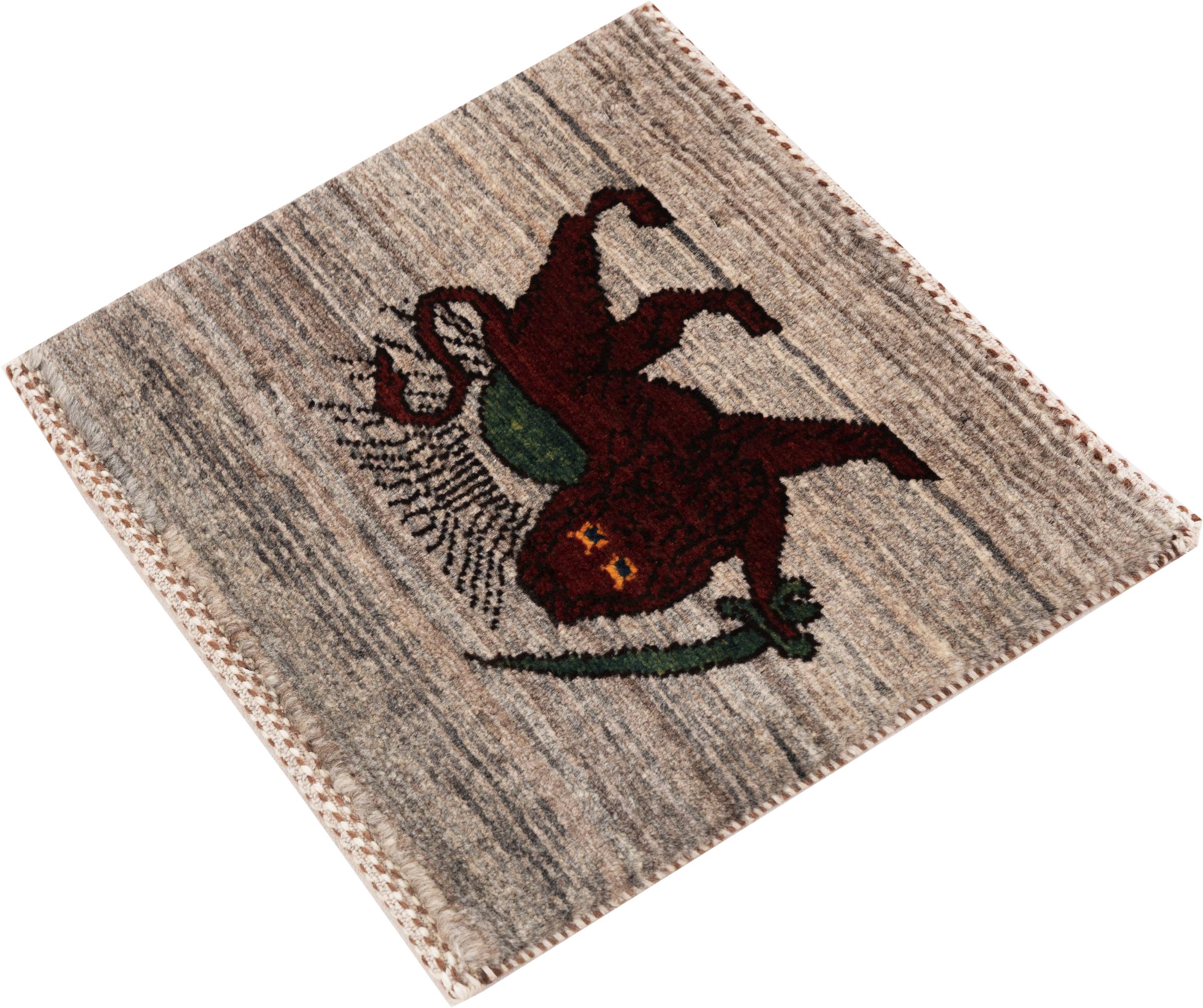 Dette smukke tæppe er en persisk Gabbeh og er en af ​​de højeste kvalitet Gabbeh tæpper. Tæpper er knyttet af nomader eller semi-nomader i Iran ved hjælp af traditionelt håndværk. De enkle motiver og mønstre er for det meste inspireret af nomadernes umiddelbare omgivelser. F.eks. Kan kameler, træer eller buske findes på traditionelle tæpper. Persiske Gabbeh-tæpper er lavet af uld fra lokale fårbesætninger. Ulden er derfor for det meste spundet for hånd. Hver af disse orientalske tæpper udgør en unik karakter af århundreder gammel kultur.