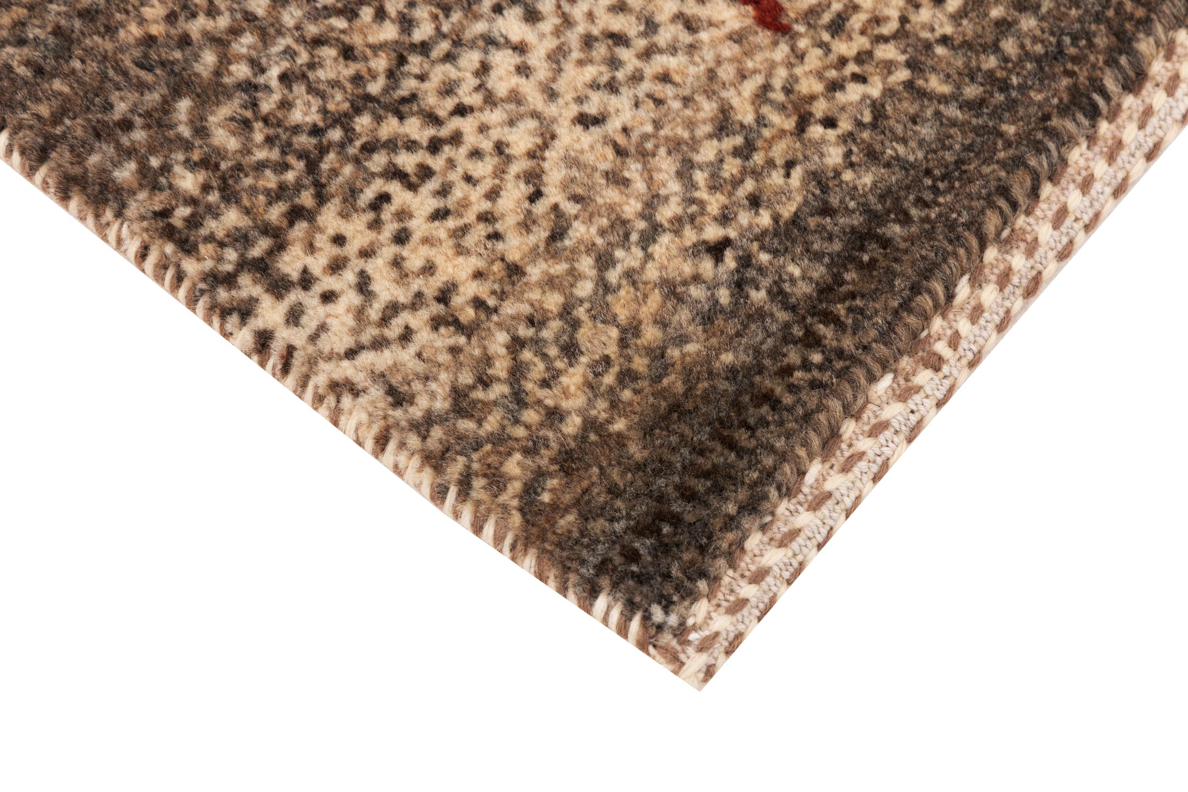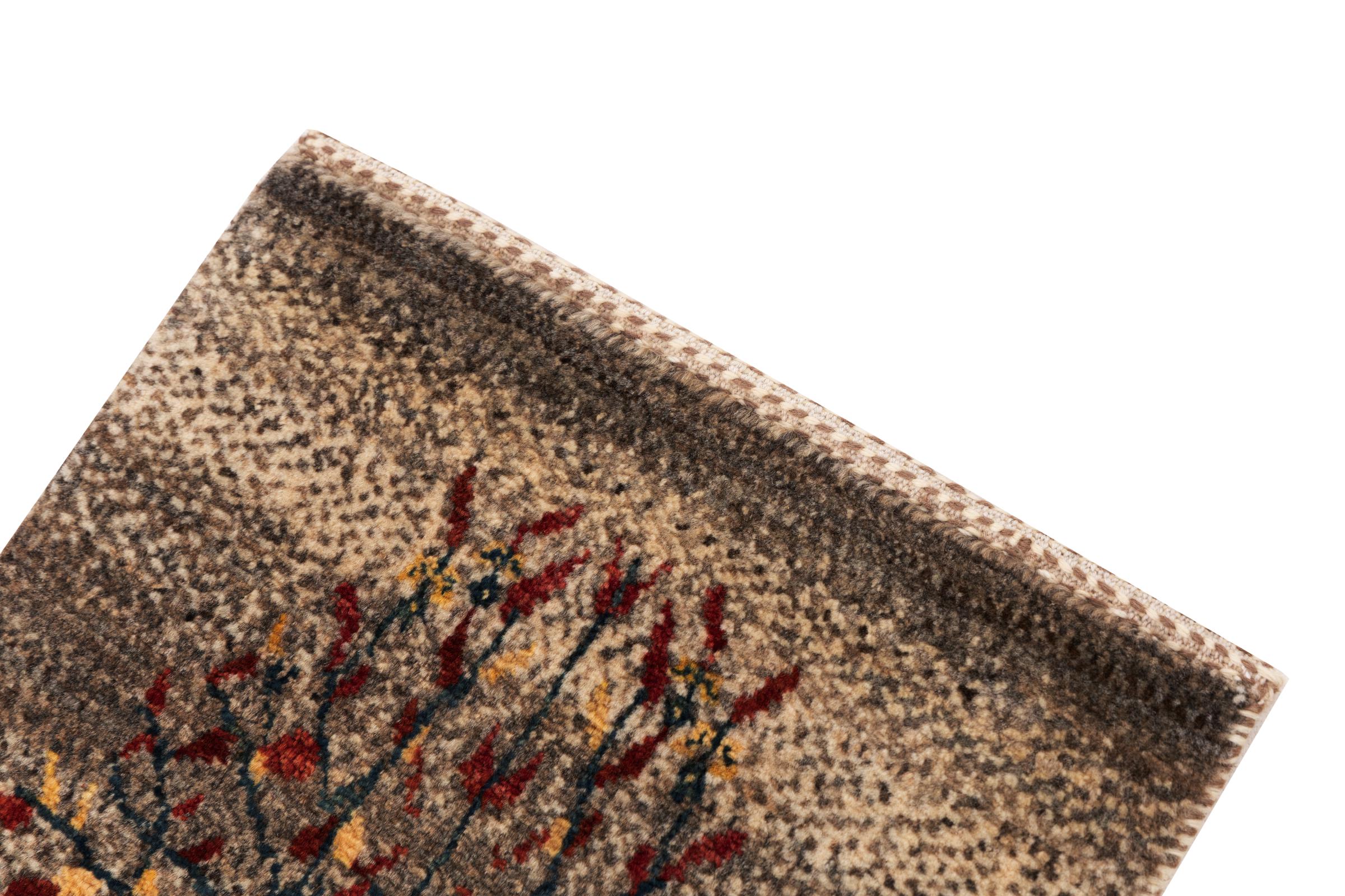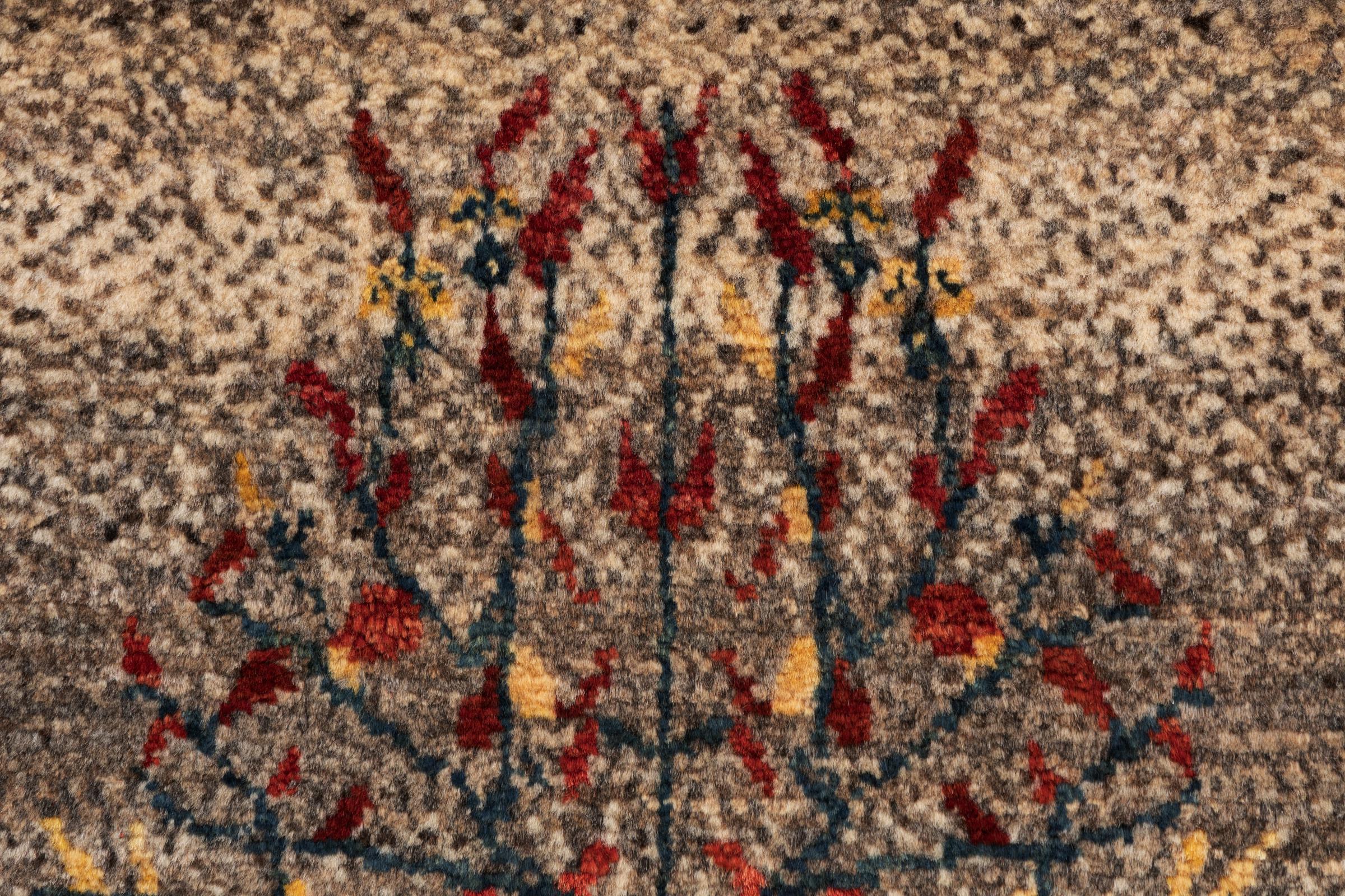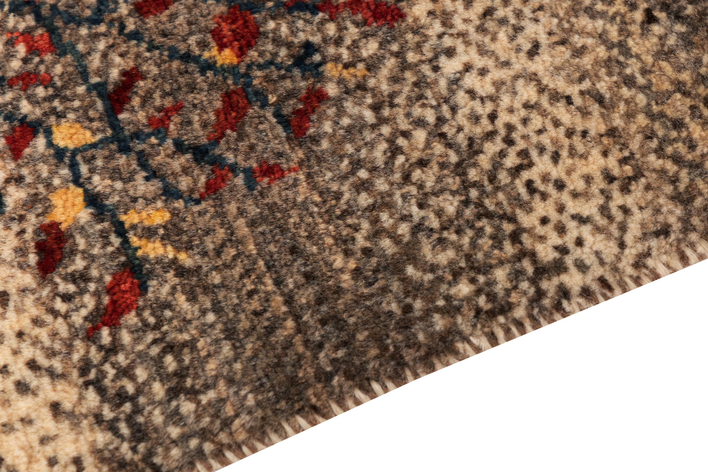 Dette smukke tæppe er en persisk Gabbeh og er en af ​​de højeste kvalitet Gabbeh tæpper. Tæpper er knyttet af nomader eller semi-nomader i Iran ved hjælp af traditionelt håndværk. De enkle motiver og mønstre er for det meste inspireret af nomadernes umiddelbare omgivelser. F.eks. Kan kameler, træer eller buske findes på traditionelle tæpper. Persiske Gabbeh-tæpper er lavet af uld fra lokale fårbesætninger. Ulden er derfor for det meste spundet for hånd. Hver af disse orientalske tæpper udgør en unik karakter af århundreder gammel kultur.
