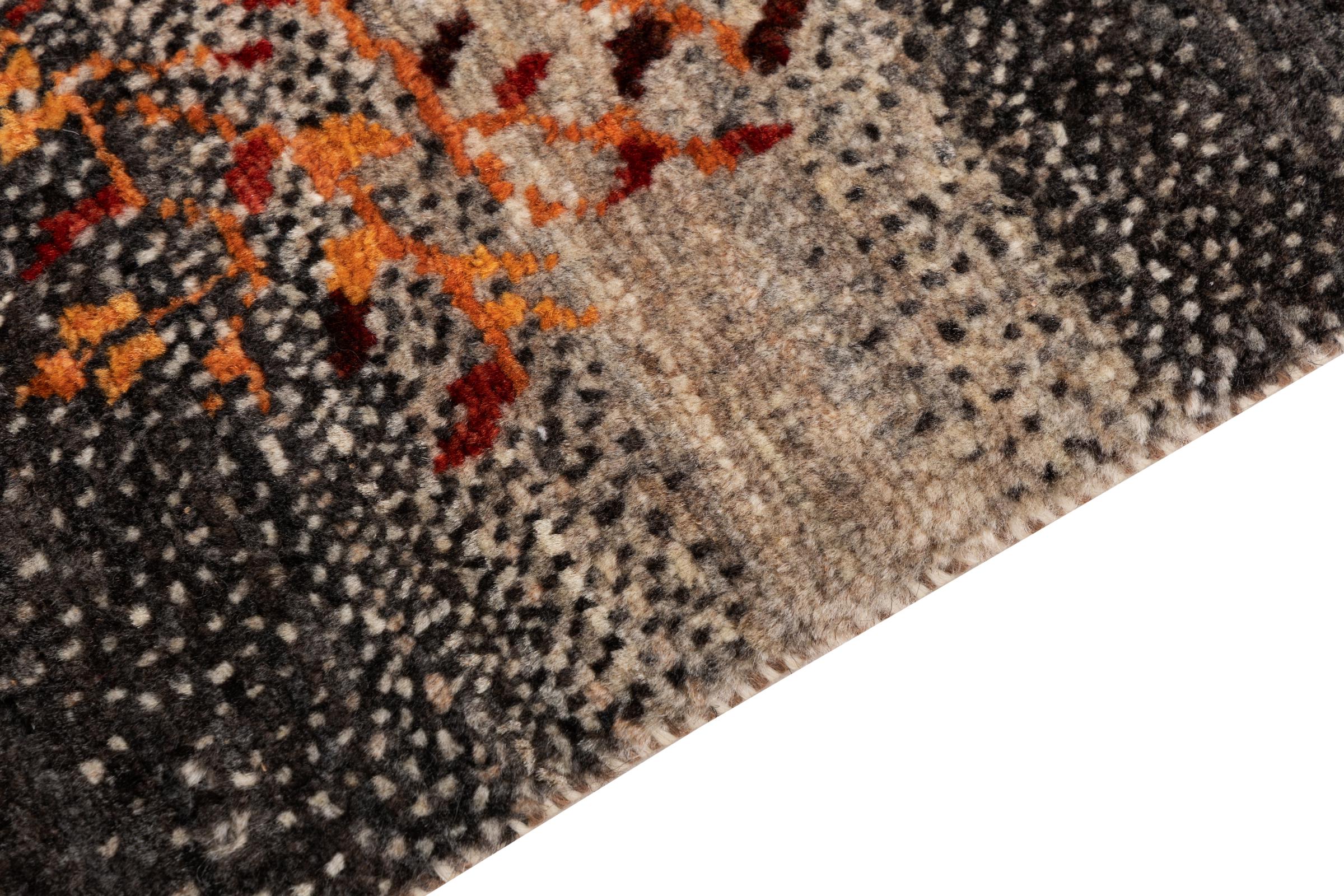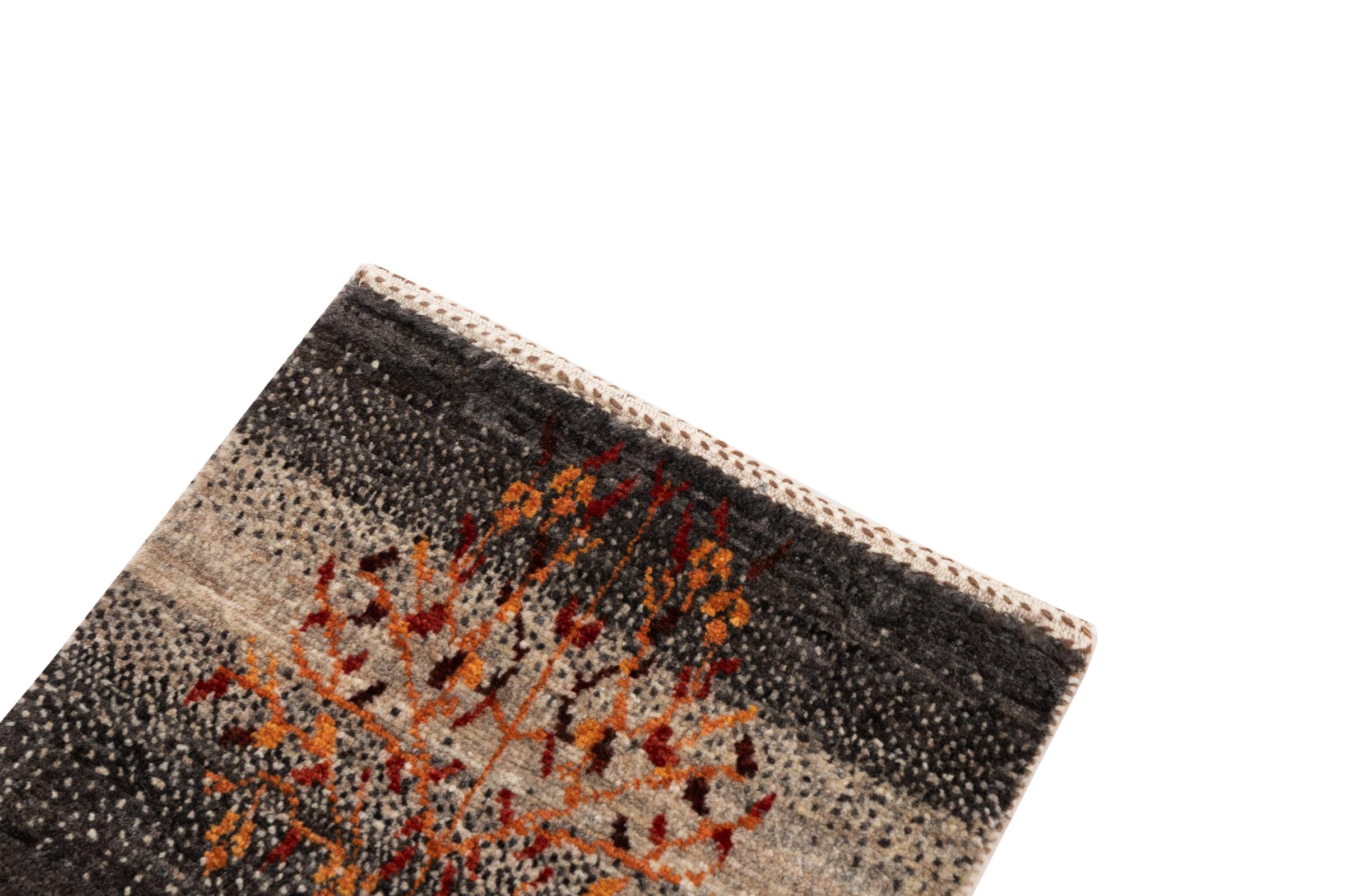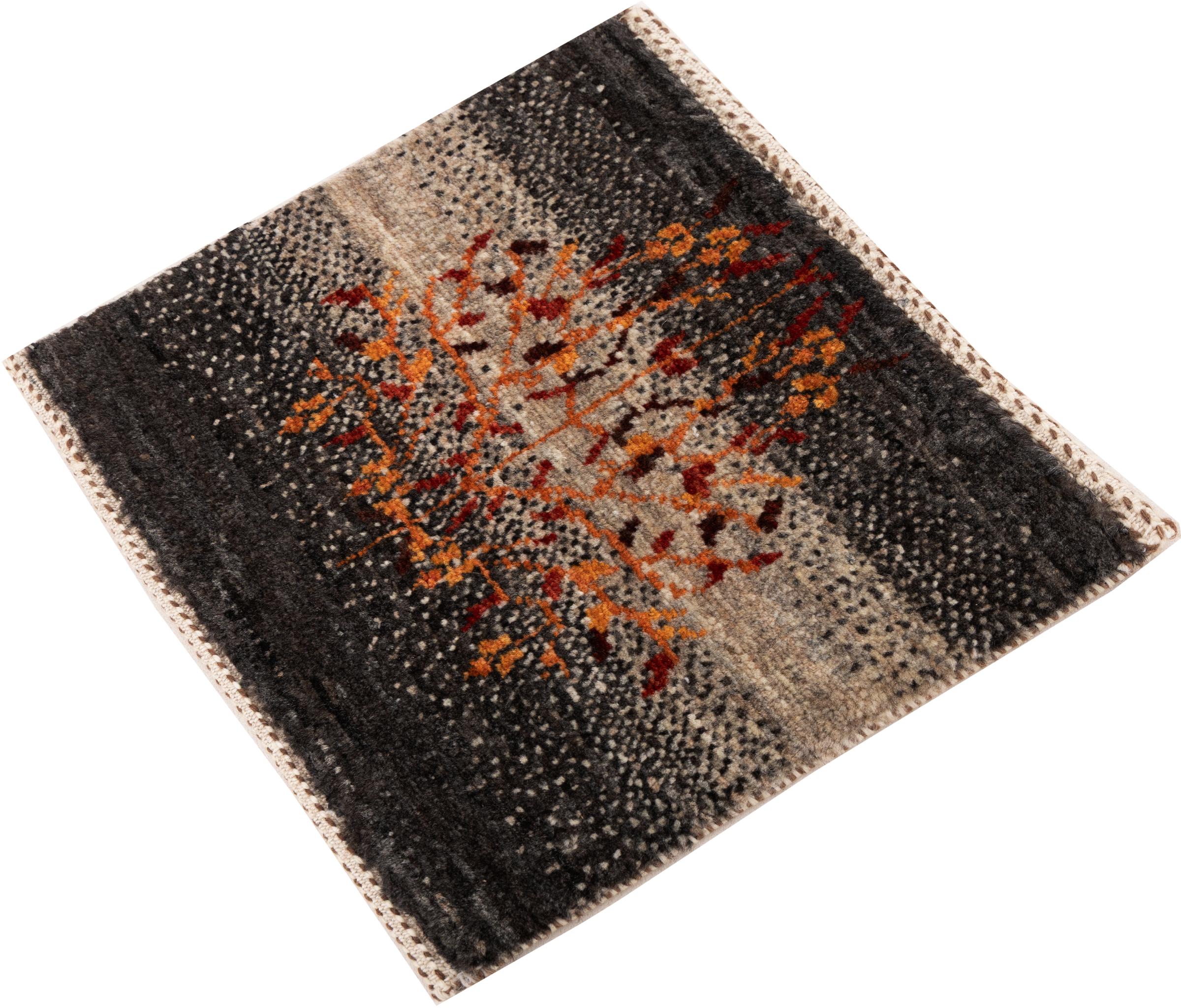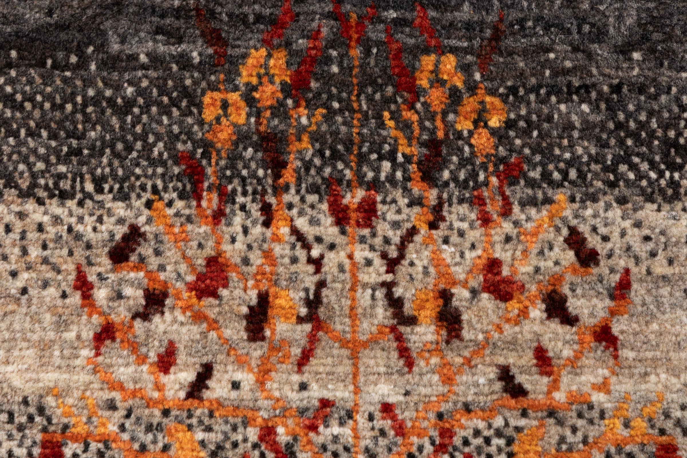 Dette smukke tæppe er en persisk Gabbeh og er en af ​​de højeste kvalitet Gabbeh tæpper. Tæpper er knyttet af nomader eller semi-nomader i Iran ved hjælp af traditionelt håndværk. De enkle motiver og mønstre er for det meste inspireret af nomadernes umiddelbare omgivelser. F.eks. Kan kameler, træer eller buske findes på traditionelle tæpper. Persiske Gabbeh-tæpper er lavet af uld fra lokale fårbesætninger. Ulden er derfor for det meste spundet for hånd. Hver af disse orientalske tæpper udgør en unik karakter af århundreder gammel kultur.