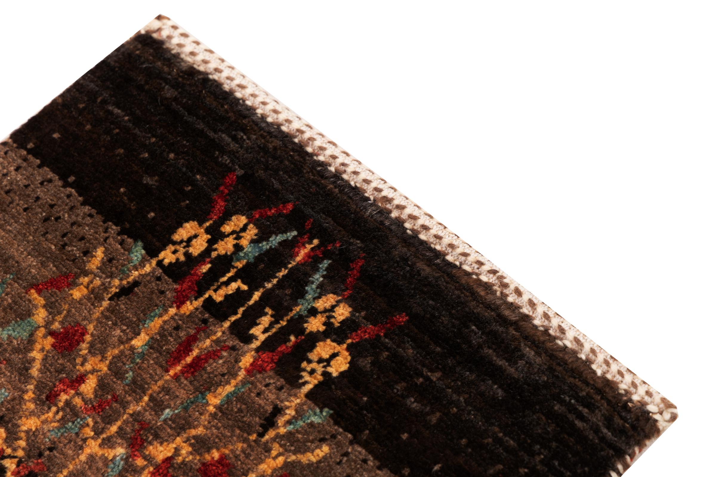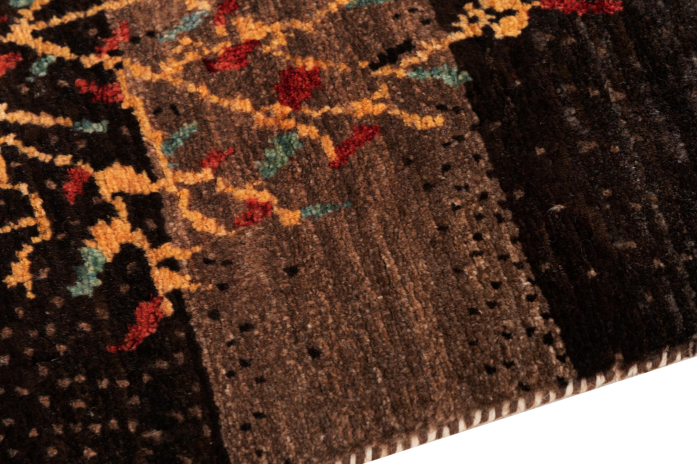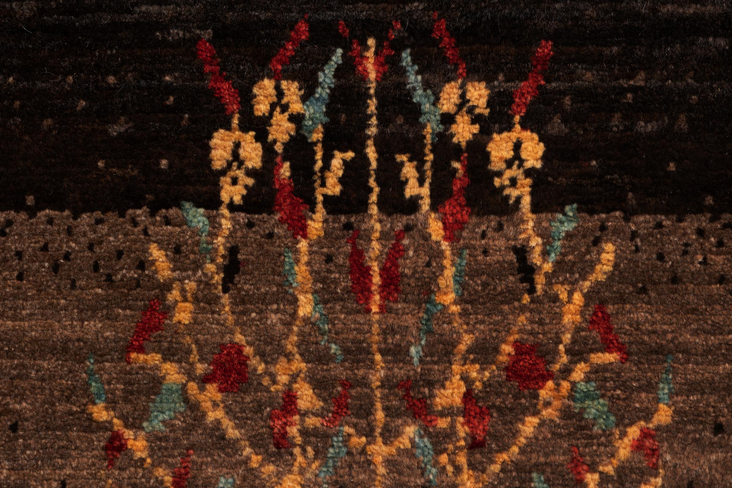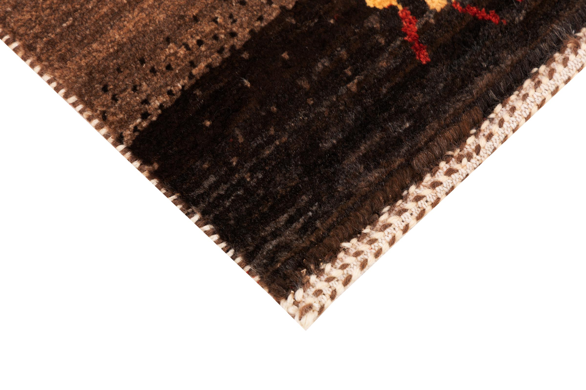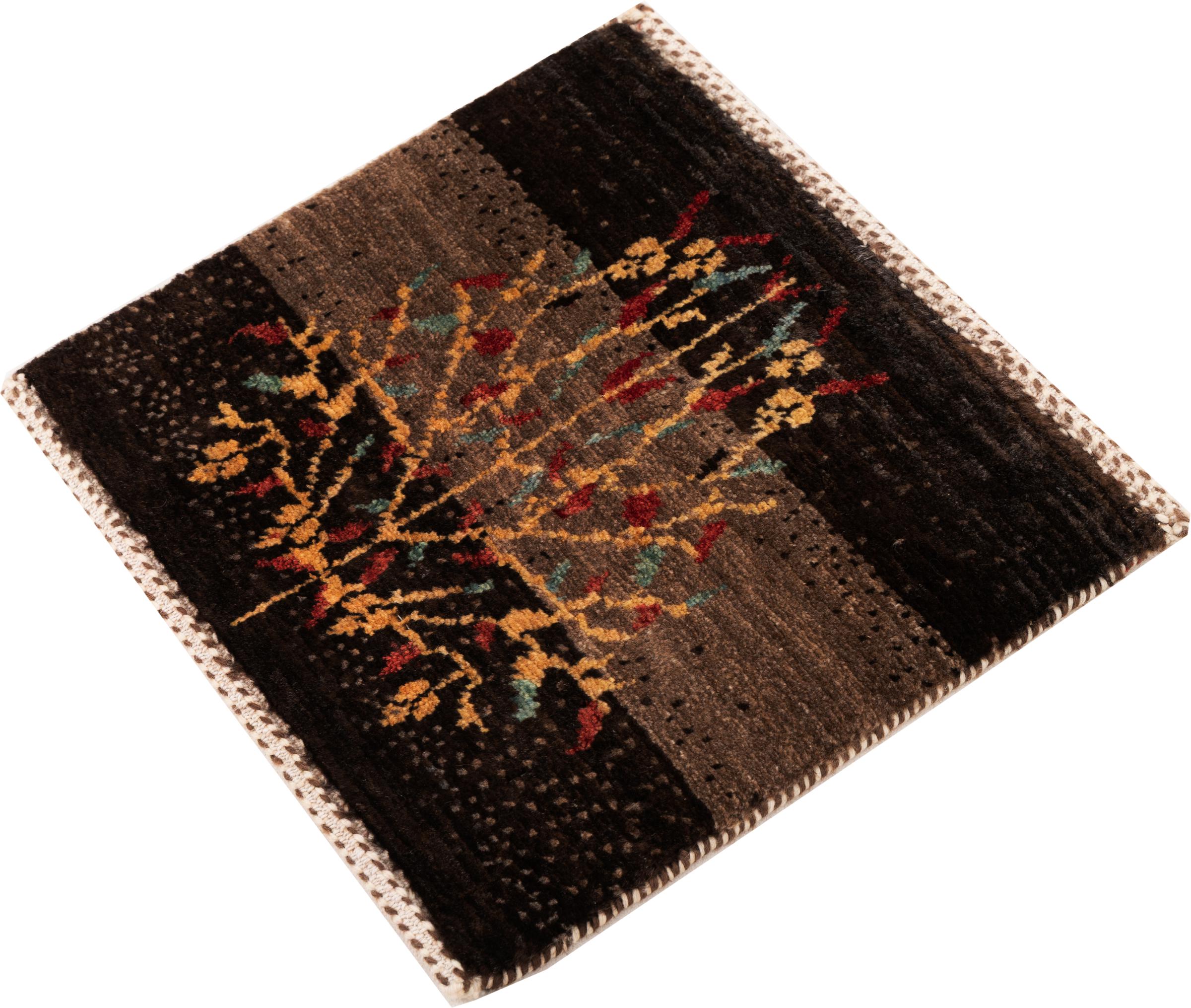 Dette smukke tæppe er en persisk Gabbeh og er en af ​​de højeste kvalitet Gabbeh tæpper. Tæpper er knyttet af nomader eller semi-nomader i Iran ved hjælp af traditionelt håndværk. De enkle motiver og mønstre er for det meste inspireret af nomadernes umiddelbare omgivelser. F.eks. Kan kameler, træer eller buske findes på traditionelle tæpper. Persiske Gabbeh-tæpper er lavet af uld fra lokale fårbesætninger. Ulden er derfor for det meste spundet for hånd. Hver af disse orientalske tæpper udgør en unik karakter af århundreder gammel kultur.