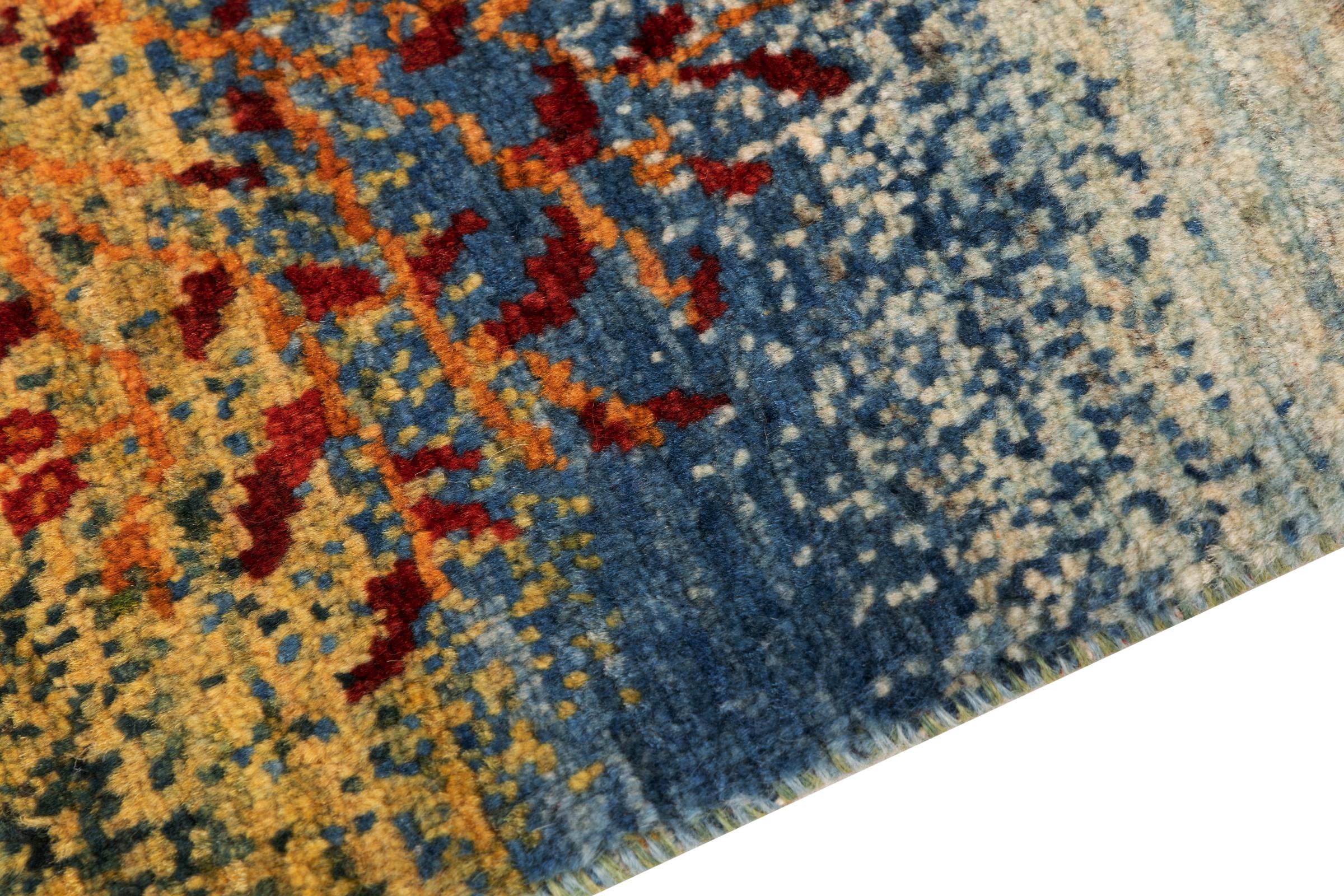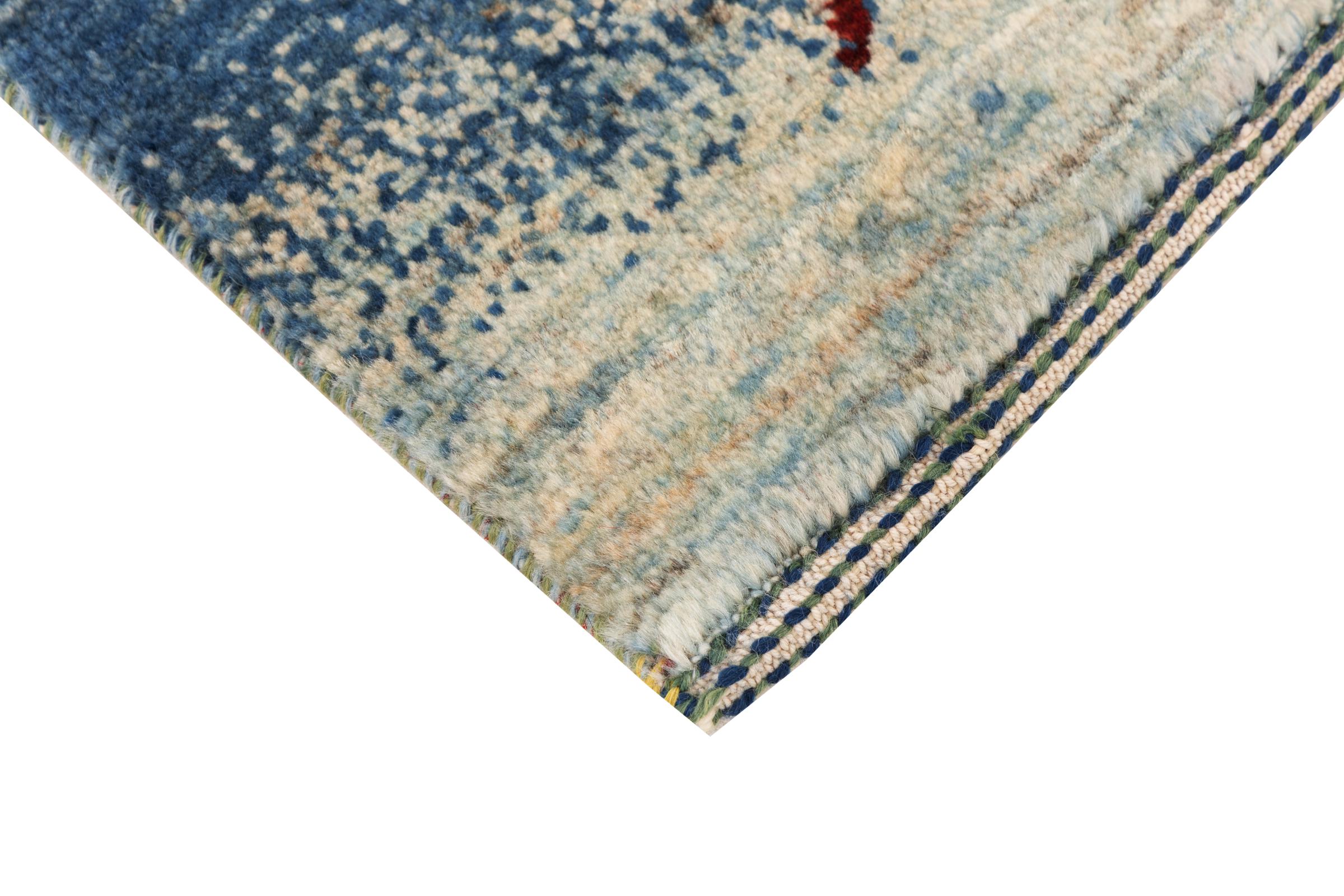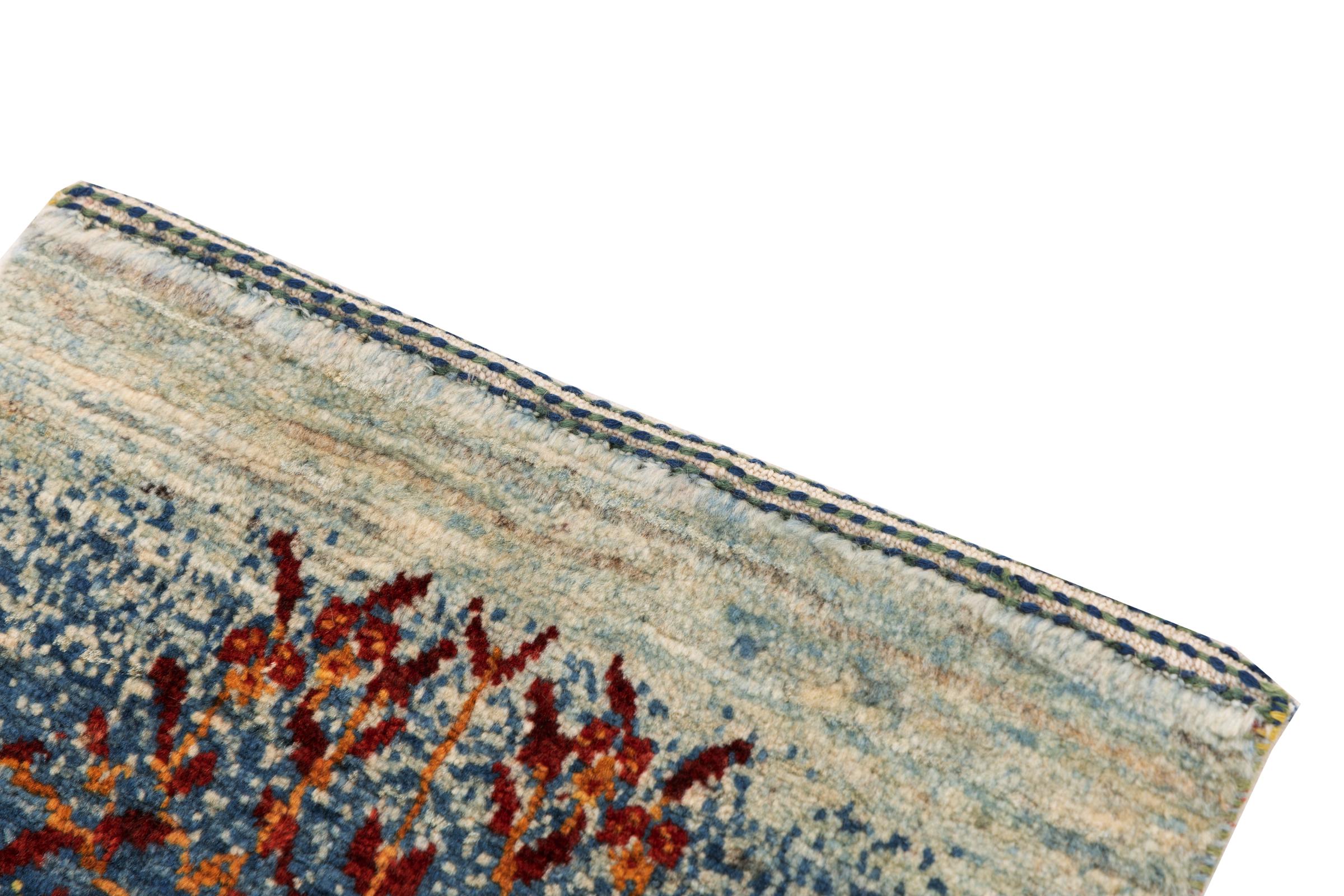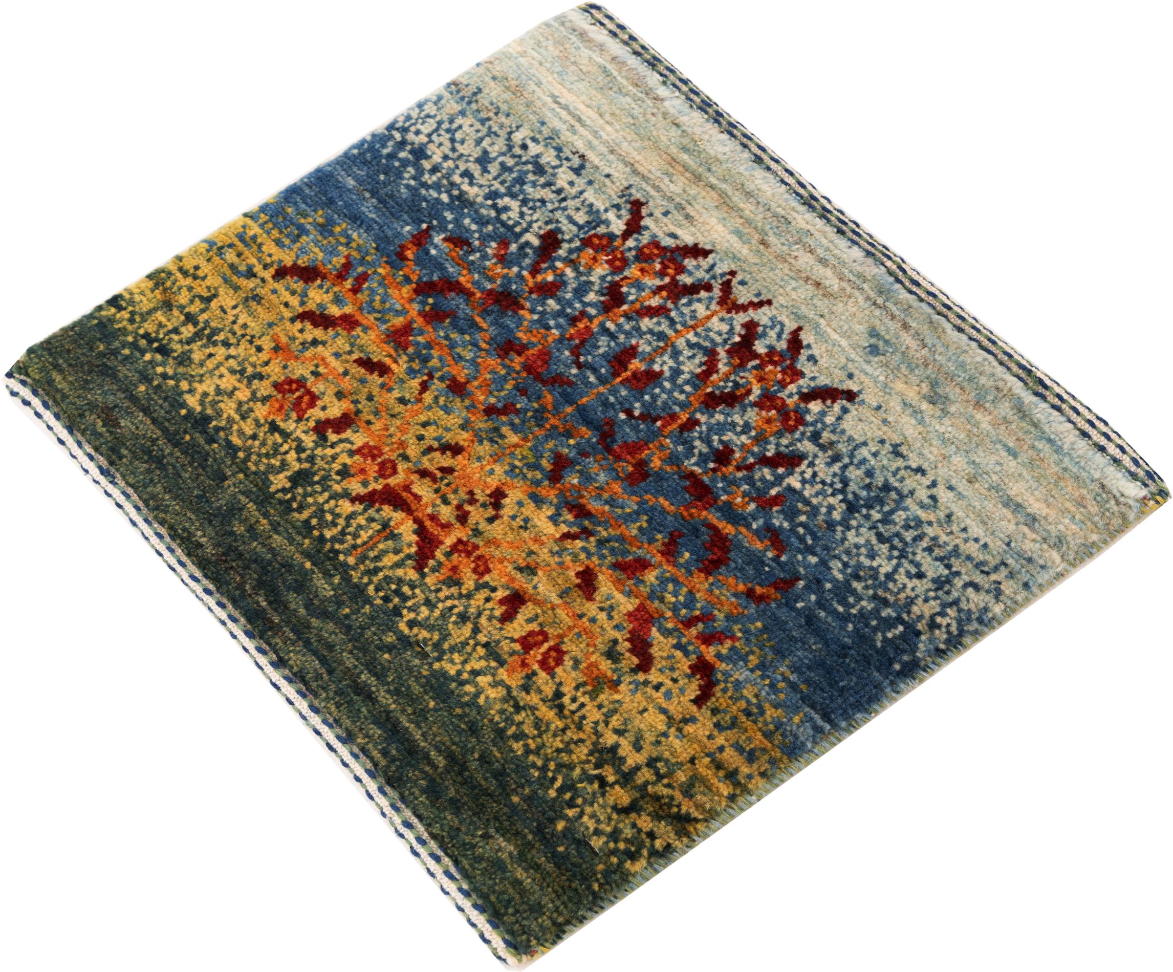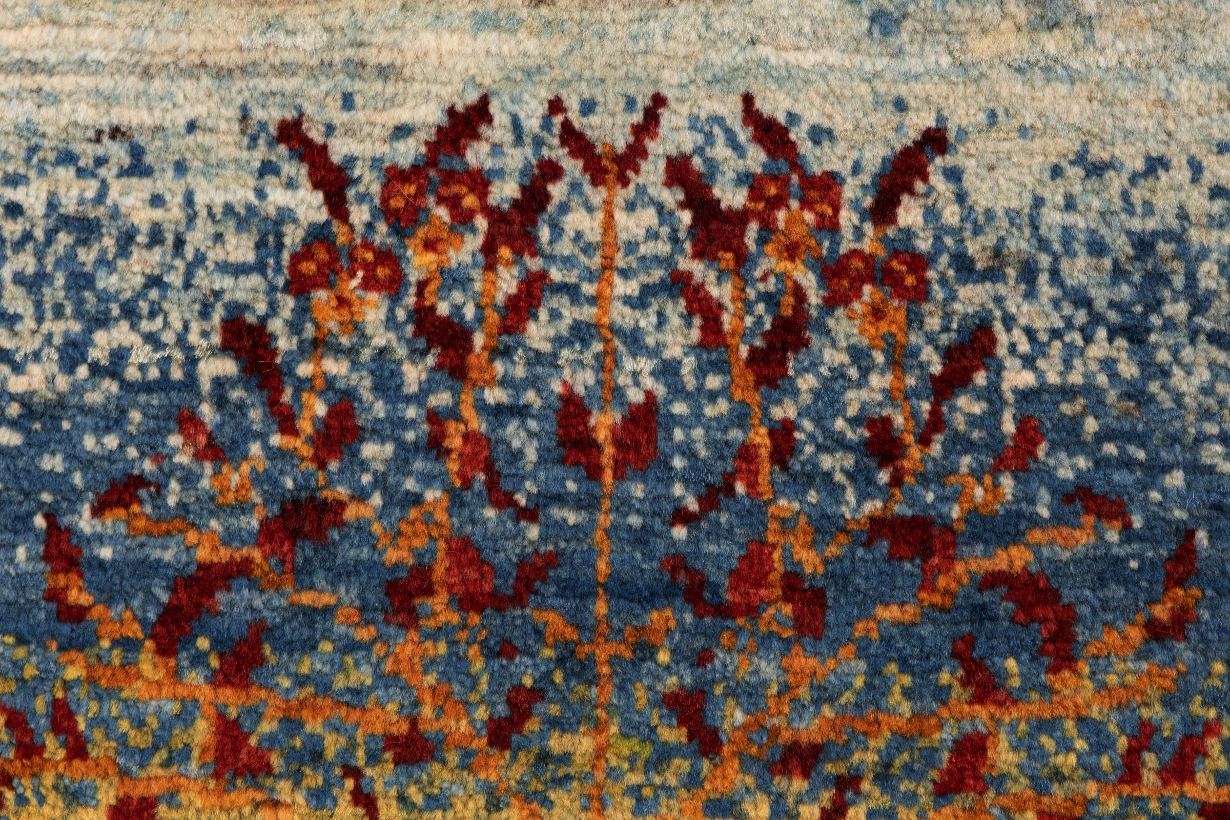 Dette smukke tæppe er en persisk Gabbeh og er en af ​​de højeste kvalitet Gabbeh tæpper. Tæpper er knyttet af nomader eller semi-nomader i Iran ved hjælp af traditionelt håndværk. De enkle motiver og mønstre er for det meste inspireret af nomadernes umiddelbare omgivelser. F.eks. Kan kameler, træer eller buske findes på traditionelle tæpper. Persiske Gabbeh-tæpper er lavet af uld fra lokale fårbesætninger. Ulden er derfor for det meste spundet for hånd. Hver af disse orientalske tæpper udgør en unik karakter af århundreder gammel kultur.