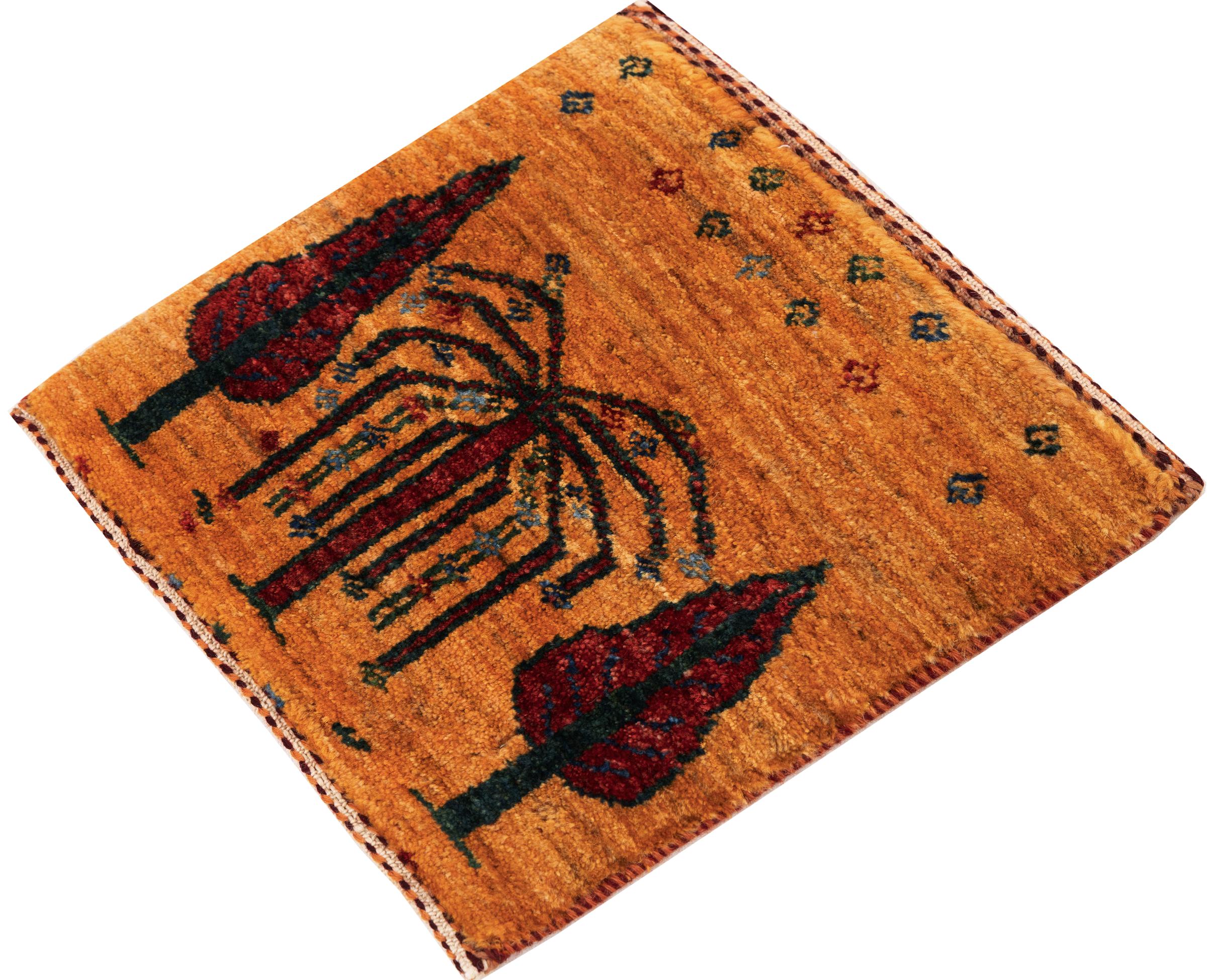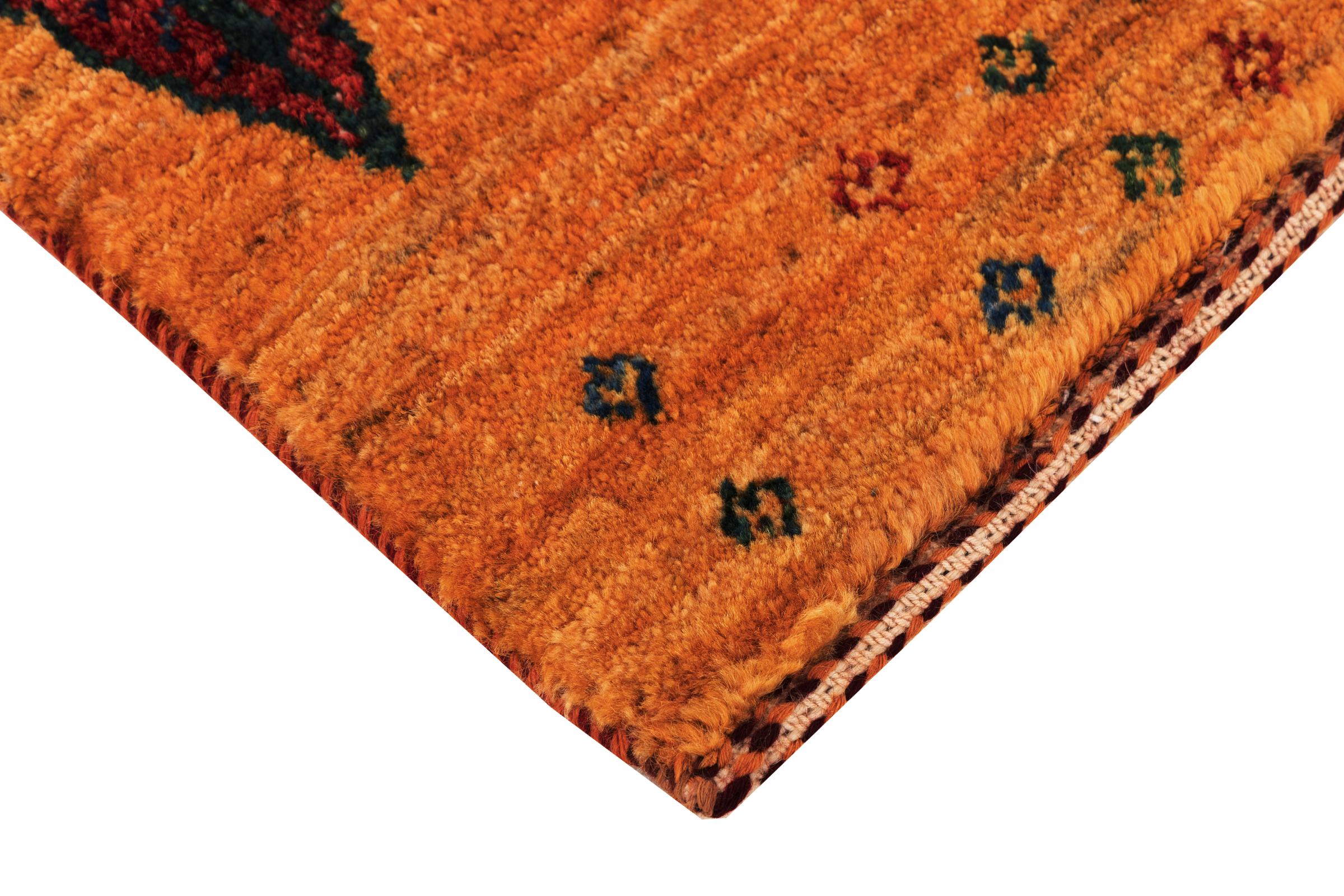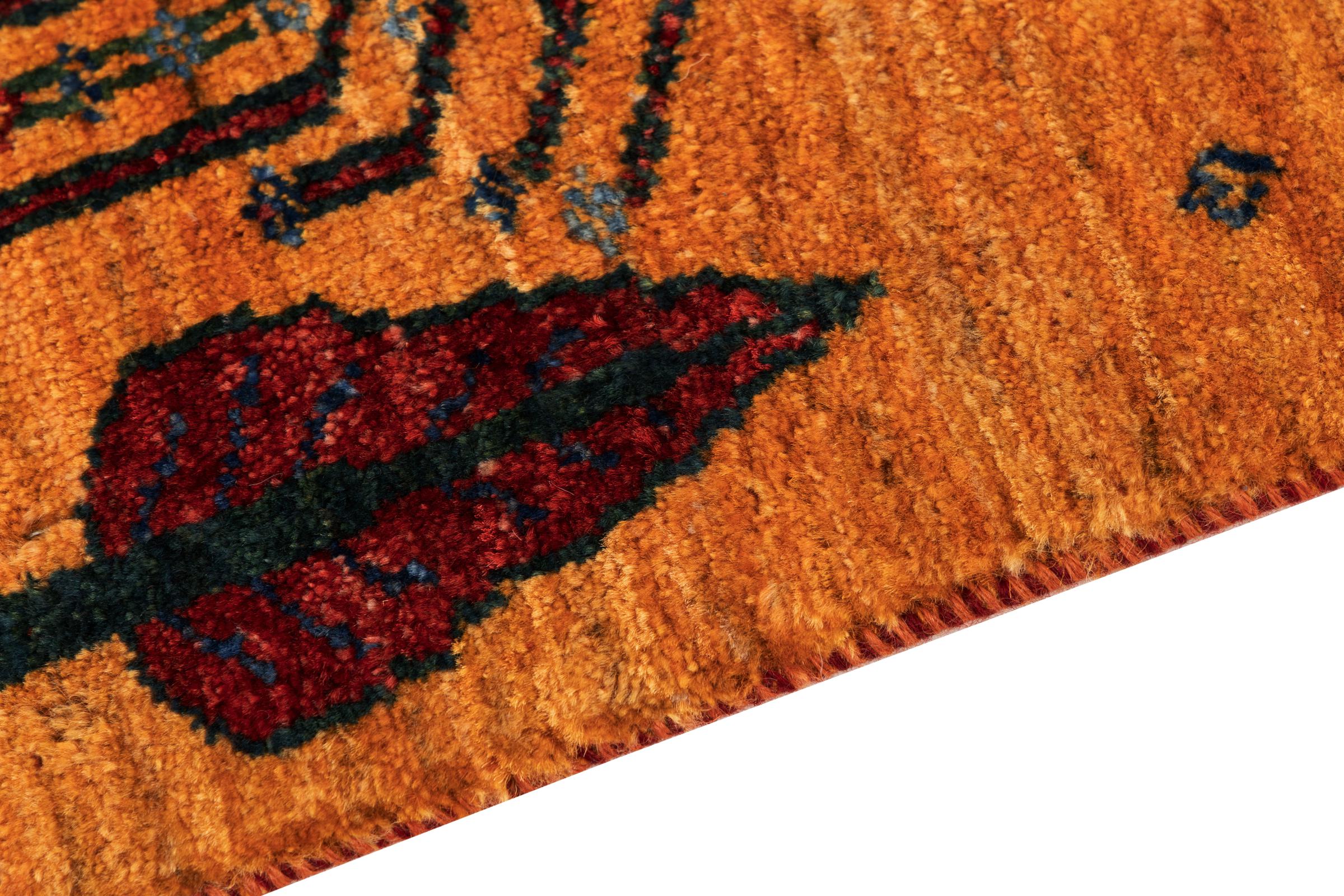 Dette smukke tæppe er en persisk Gabbeh og er en af ​​de højeste kvalitet Gabbeh tæpper. Tæpper er knyttet af nomader eller semi-nomader i Iran ved hjælp af traditionelt håndværk. De enkle motiver og mønstre er for det meste inspireret af nomadernes umiddelbare omgivelser. F.eks. Kan kameler, træer eller buske findes på traditionelle tæpper. Persiske Gabbeh-tæpper er lavet af uld fra lokale fårbesætninger. Ulden er derfor for det meste spundet for hånd. Hver af disse orientalske tæpper udgør en unik karakter af århundreder gammel kultur.