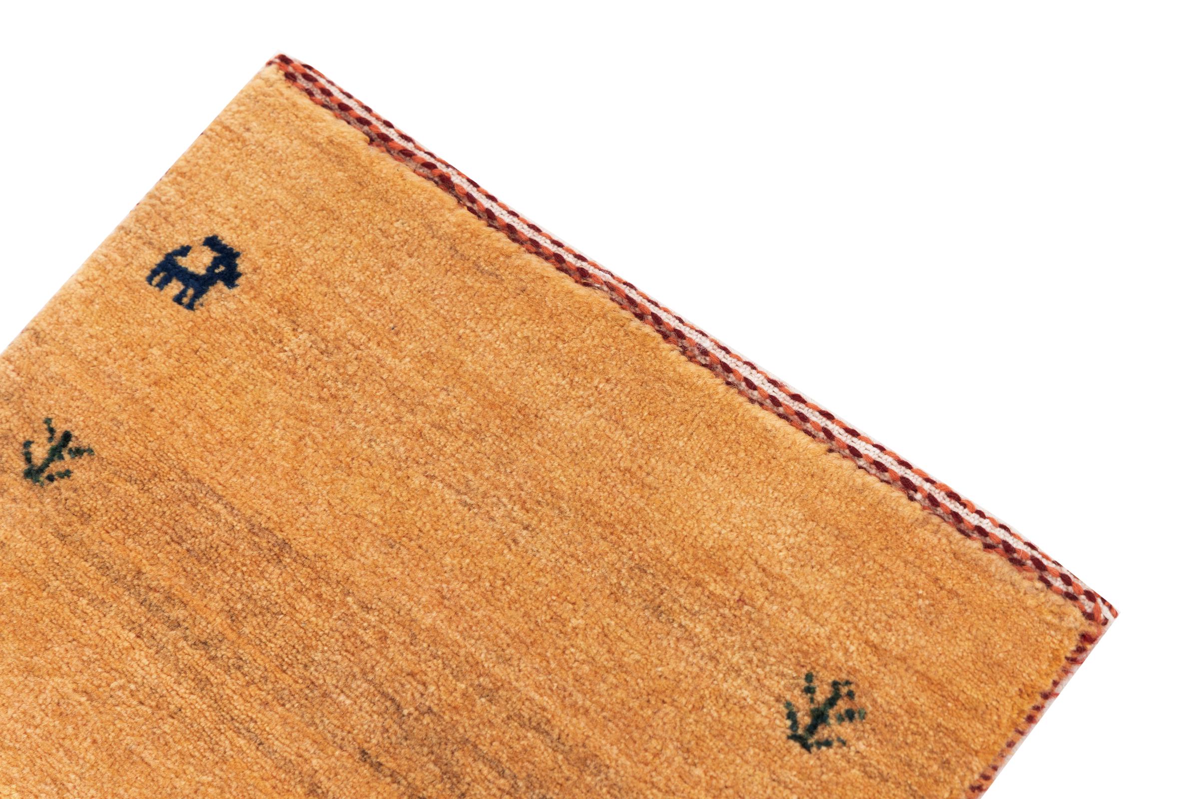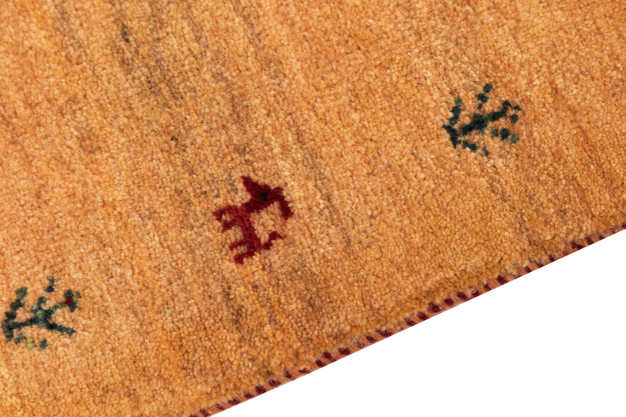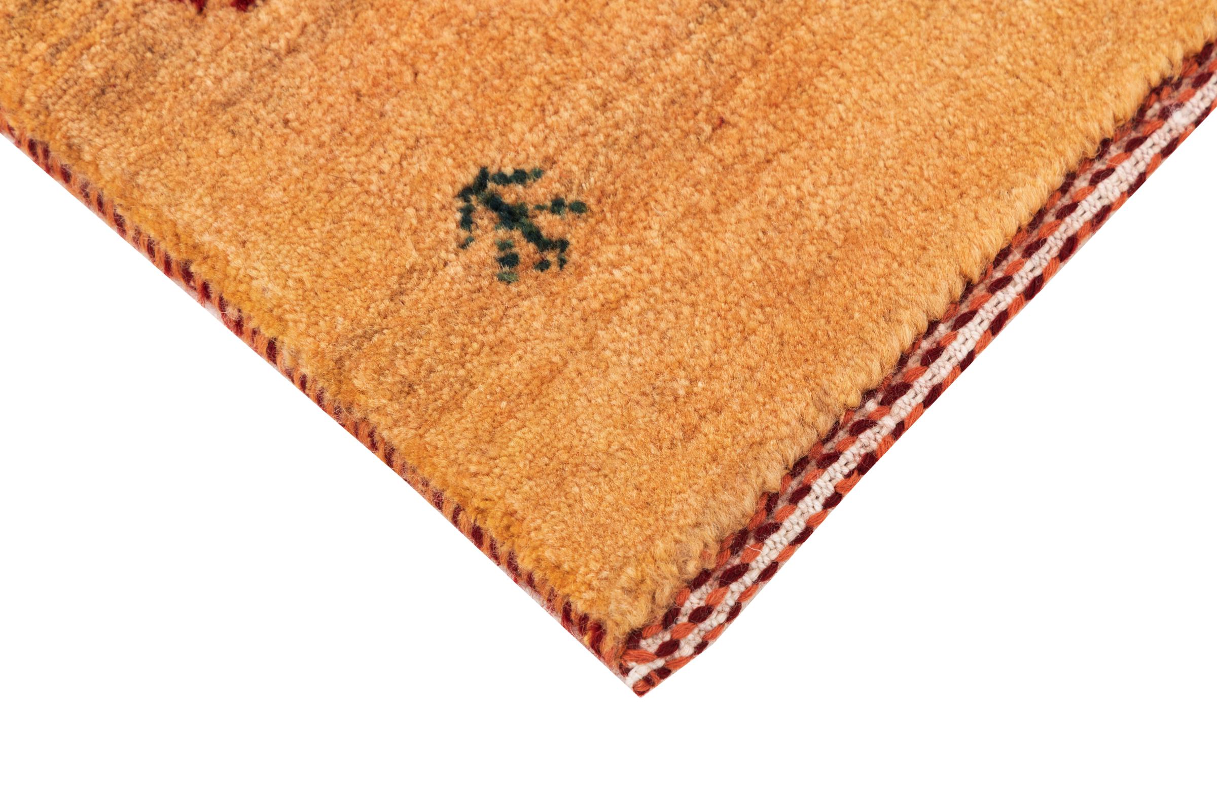 Dette smukke tæppe er en persisk Gabbeh og er en af ​​de højeste kvalitet Gabbeh tæpper. Tæpper er knyttet af nomader eller semi-nomader i Iran ved hjælp af traditionelt håndværk. De enkle motiver og mønstre er for det meste inspireret af nomadernes umiddelbare omgivelser. F.eks. Kan kameler, træer eller buske findes på traditionelle tæpper. Persiske Gabbeh-tæpper er lavet af uld fra lokale fårbesætninger. Ulden er derfor for det meste spundet for hånd. Hver af disse orientalske tæpper udgør en unik karakter af århundreder gammel kultur.