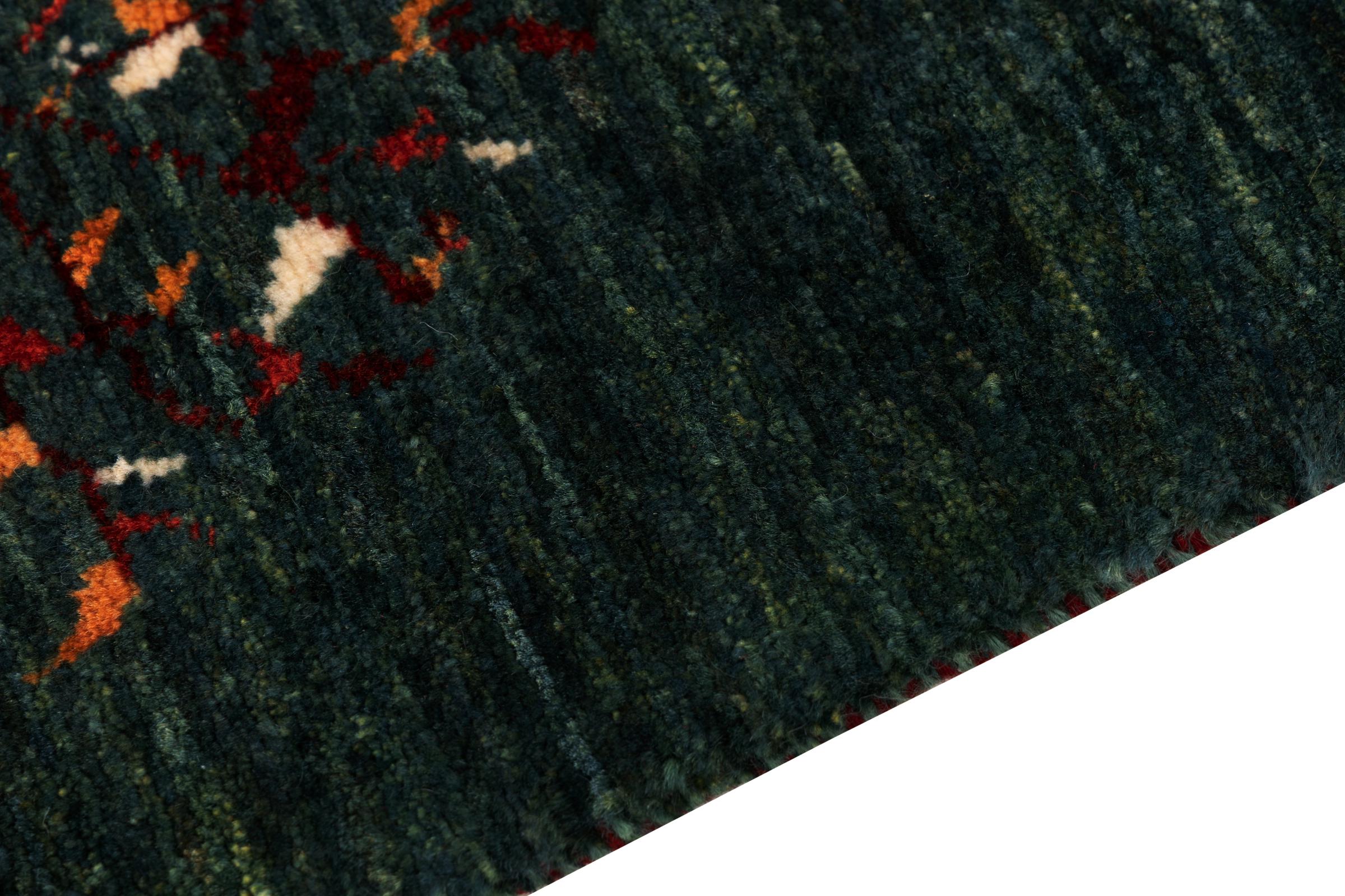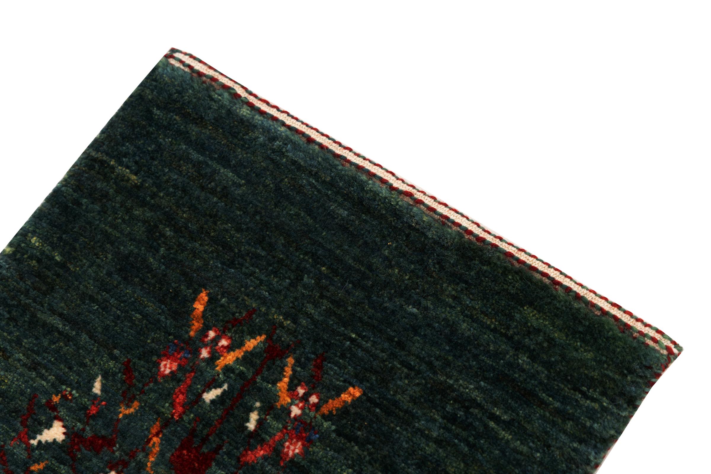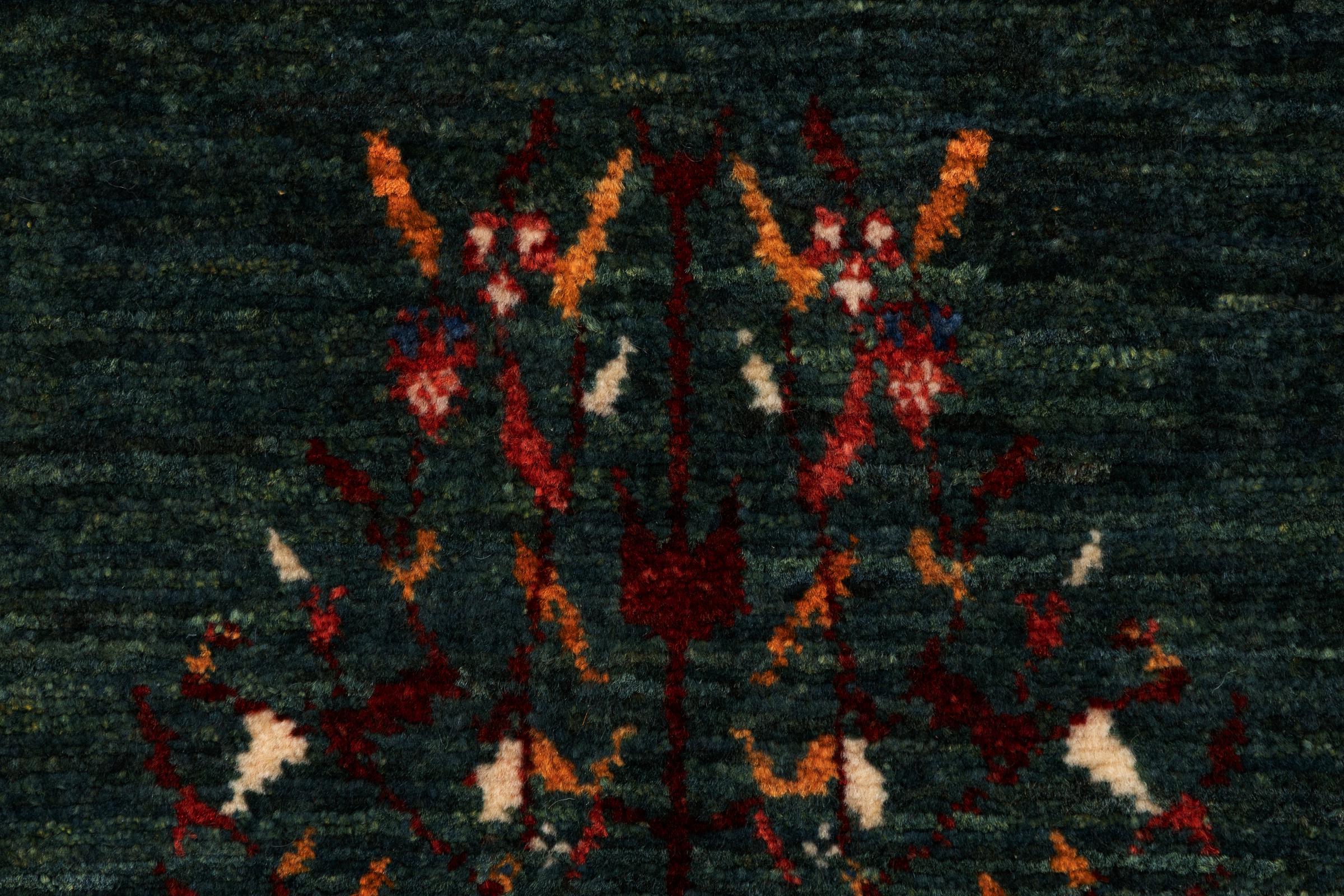 Dette smukke tæppe er en persisk Gabbeh og er en af ​​de højeste kvalitet Gabbeh tæpper. Tæpper er knyttet af nomader eller semi-nomader i Iran ved hjælp af traditionelt håndværk. De enkle motiver og mønstre er for det meste inspireret af nomadernes umiddelbare omgivelser. F.eks. Kan kameler, træer eller buske findes på traditionelle tæpper. Persiske Gabbeh-tæpper er lavet af uld fra lokale fårbesætninger. Ulden er derfor for det meste spundet for hånd. Hver af disse orientalske tæpper udgør en unik karakter af århundreder gammel kultur.