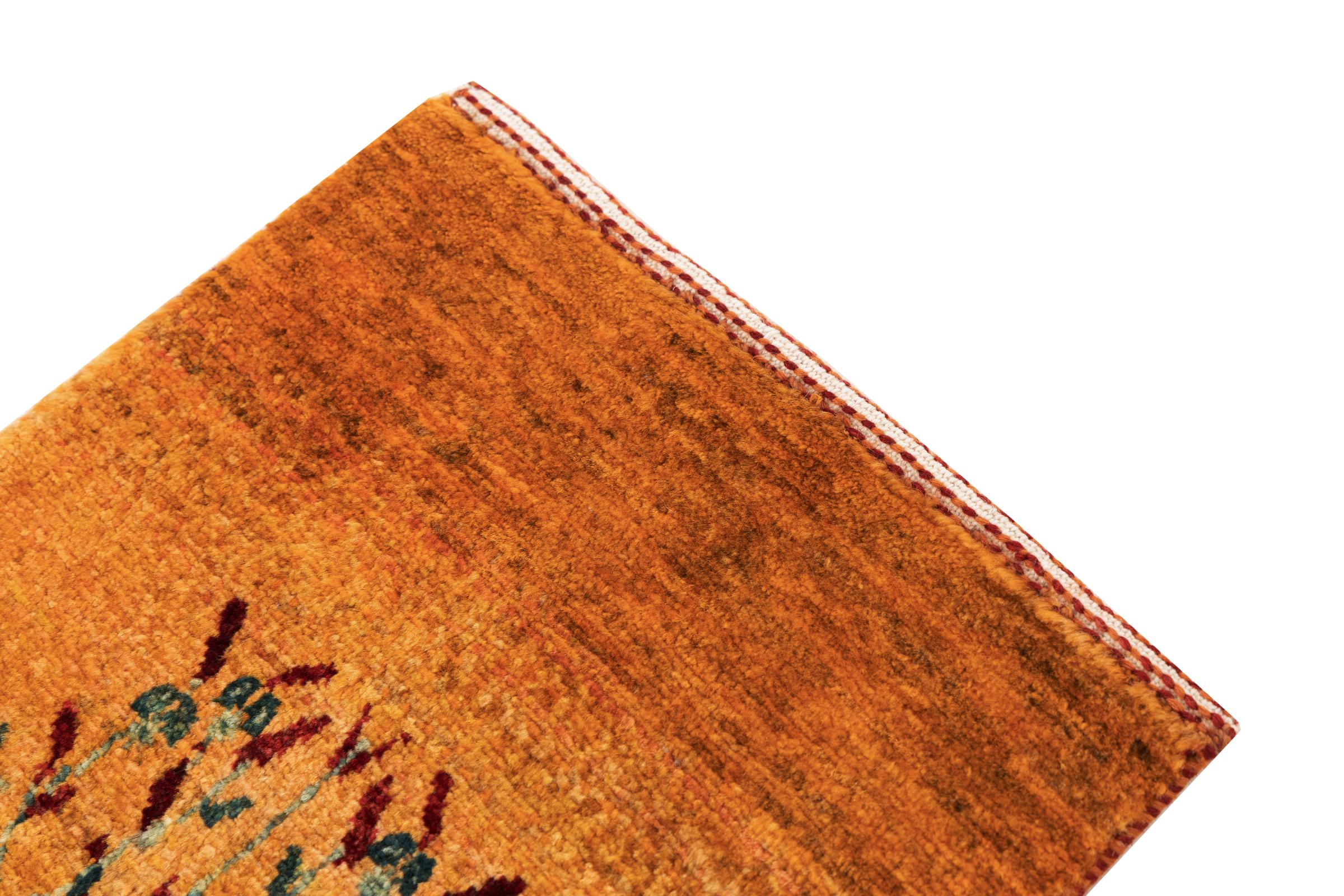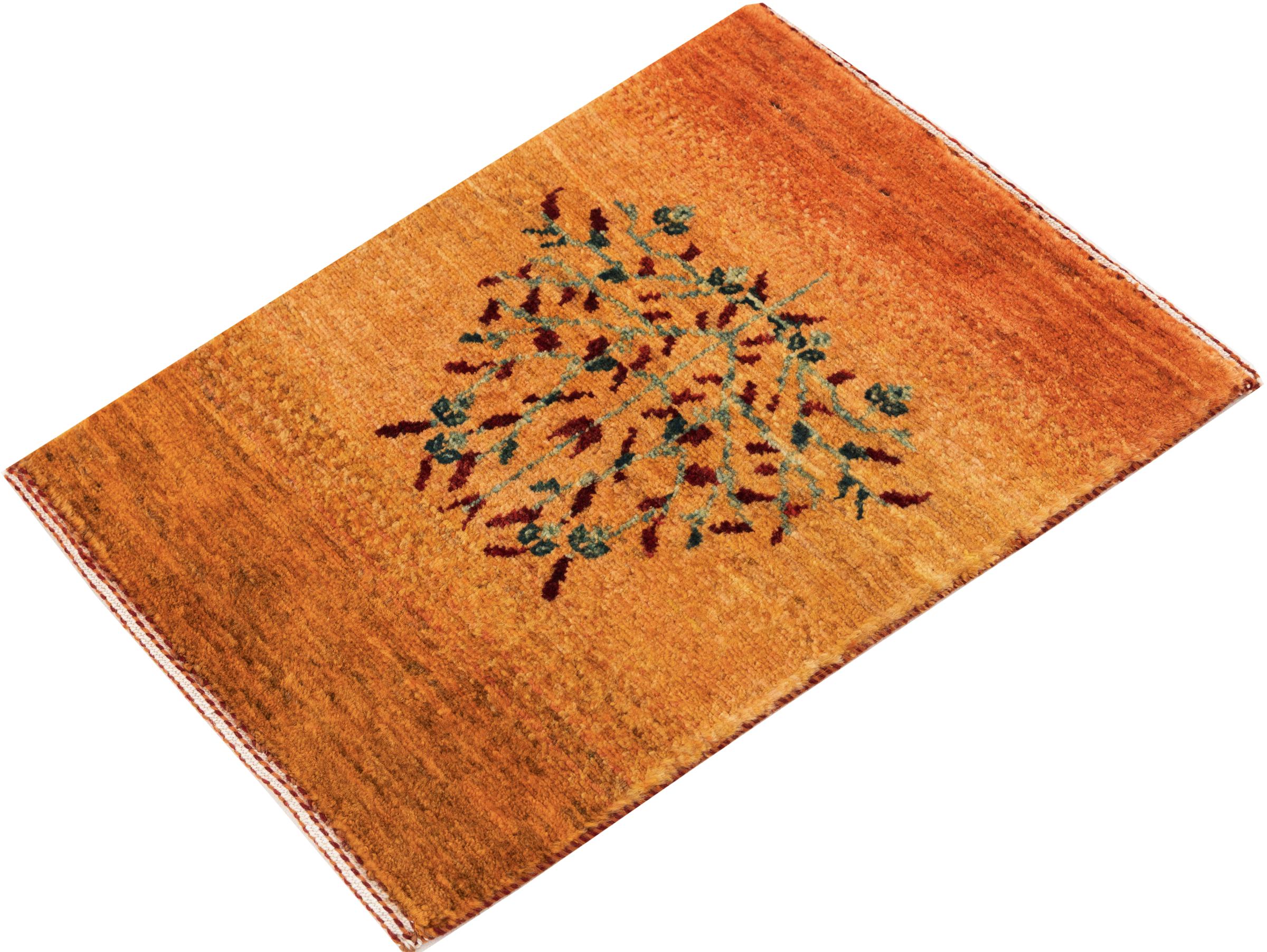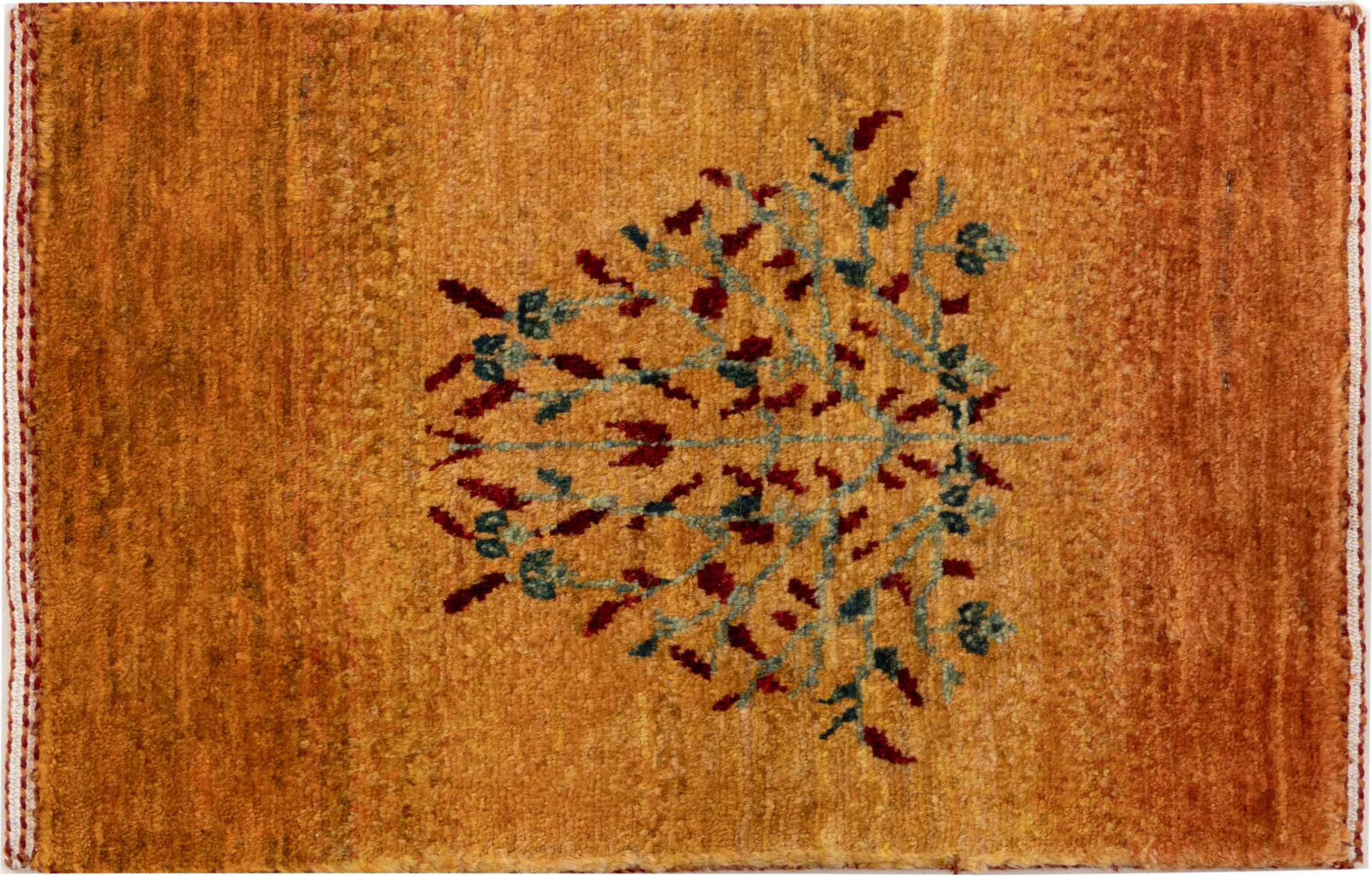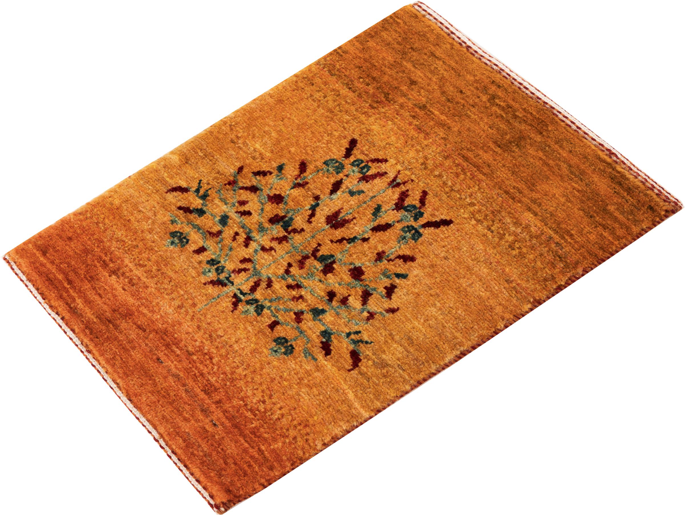 Dette smukke tæppe er en persisk Gabbeh og er en af ​​de højeste kvalitet Gabbeh tæpper. Tæpper er knyttet af nomader eller semi-nomader i Iran ved hjælp af traditionelt håndværk. De enkle motiver og mønstre er for det meste inspireret af nomadernes umiddelbare omgivelser. F.eks. Kan kameler, træer eller buske findes på traditionelle tæpper. Persiske Gabbeh-tæpper er lavet af uld fra lokale fårbesætninger. Ulden er derfor for det meste spundet for hånd. Hver af disse orientalske tæpper udgør en unik karakter af århundreder gammel kultur.