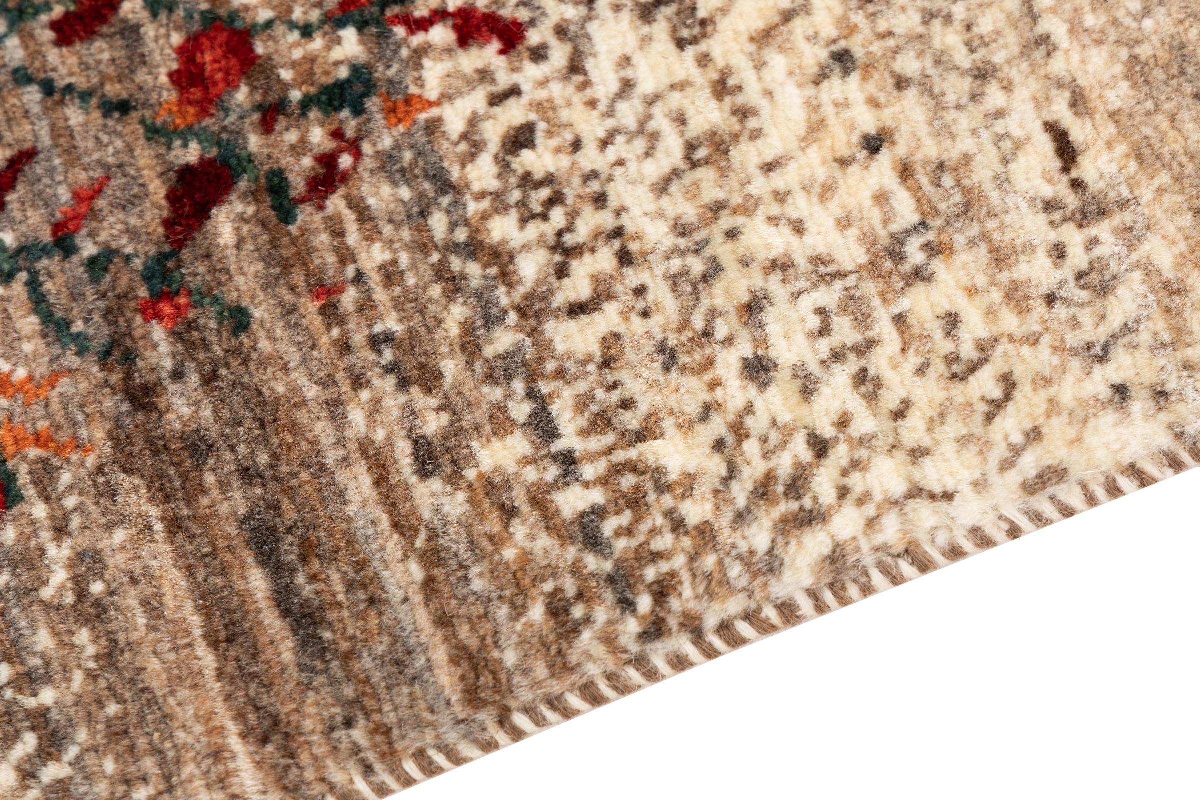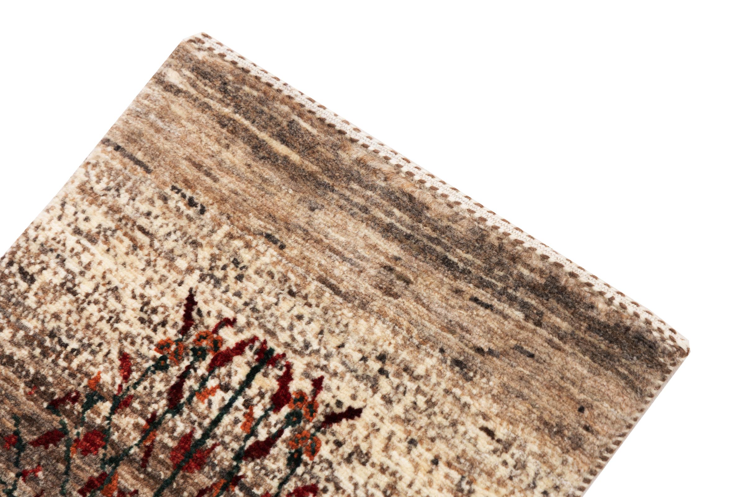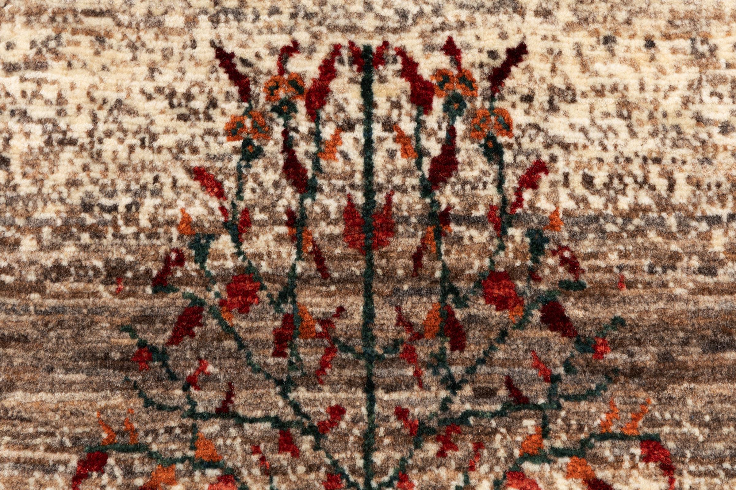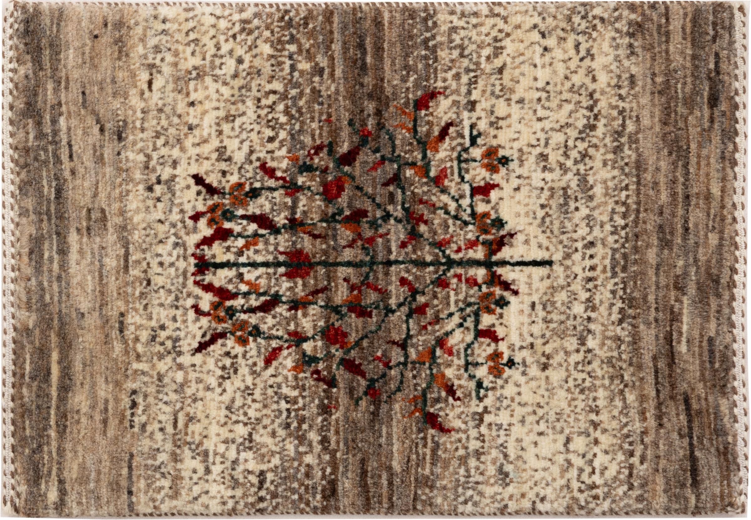 Dette smukke tæppe er en persisk Gabbeh og er en af ​​de højeste kvalitet Gabbeh tæpper. Tæpper er knyttet af nomader eller semi-nomader i Iran ved hjælp af traditionelt håndværk. De enkle motiver og mønstre er for det meste inspireret af nomadernes umiddelbare omgivelser. F.eks. Kan kameler, træer eller buske findes på traditionelle tæpper. Persiske Gabbeh-tæpper er lavet af uld fra lokale fårbesætninger. Ulden er derfor for det meste spundet for hånd. Hver af disse orientalske tæpper udgør en unik karakter af århundreder gammel kultur.