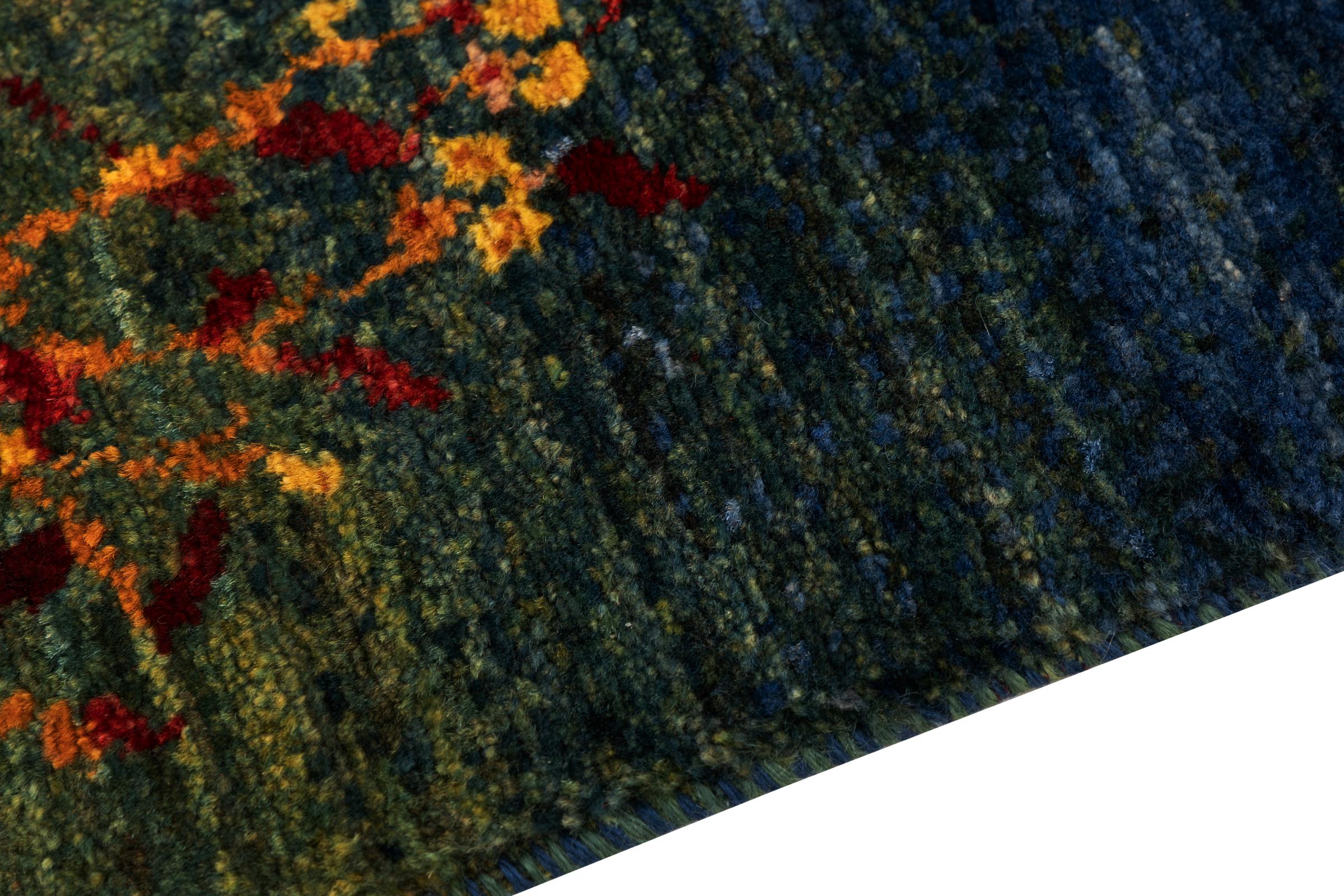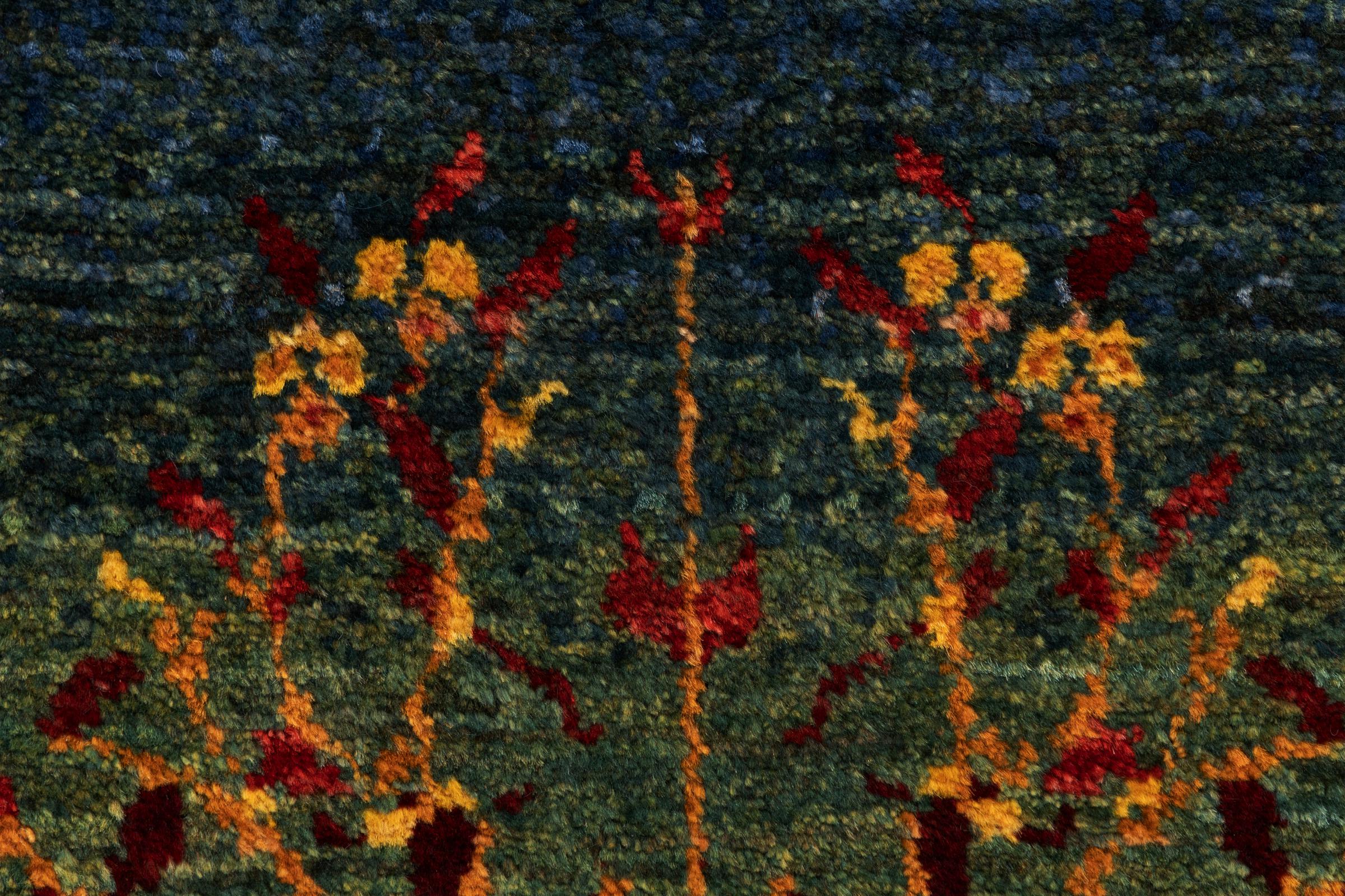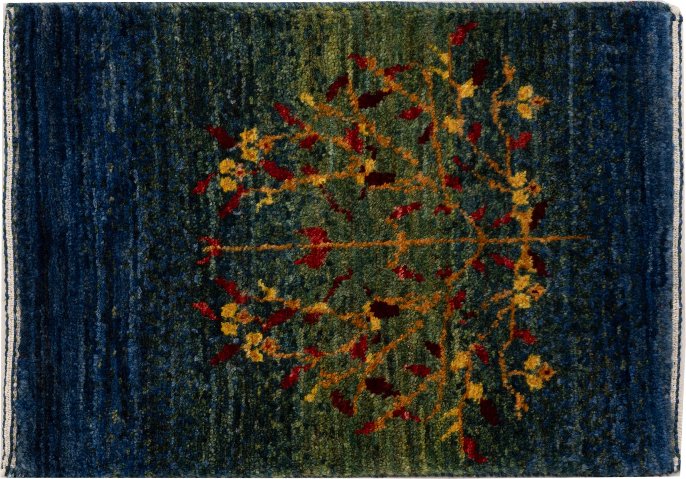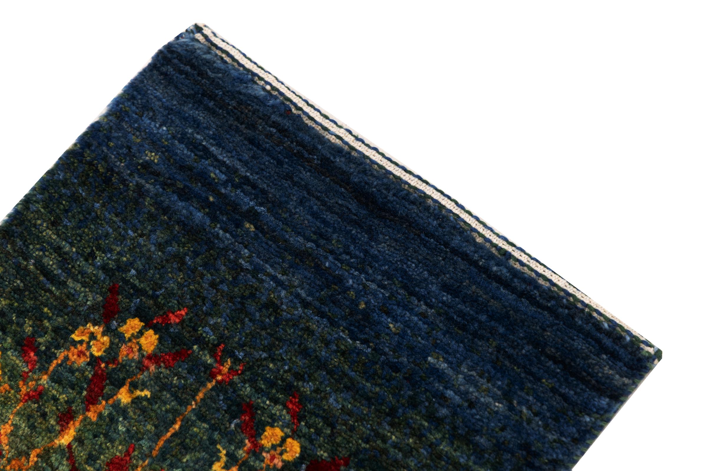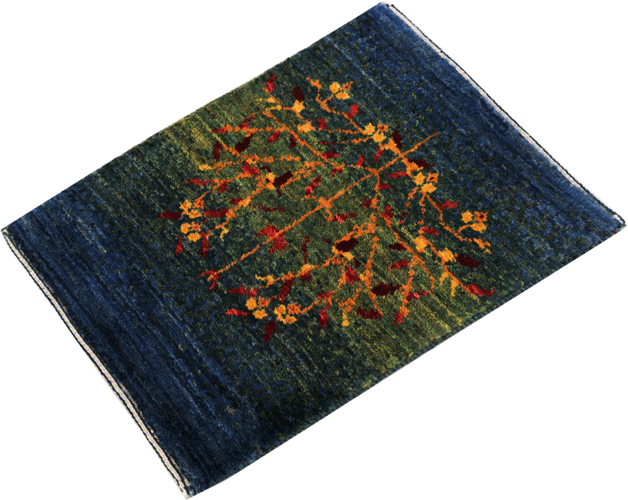 Dette smukke tæppe er en persisk Gabbeh og er en af ​​de højeste kvalitet Gabbeh tæpper. Tæpper er knyttet af nomader eller semi-nomader i Iran ved hjælp af traditionelt håndværk. De enkle motiver og mønstre er for det meste inspireret af nomadernes umiddelbare omgivelser. F.eks. Kan kameler, træer eller buske findes på traditionelle tæpper. Persiske Gabbeh-tæpper er lavet af uld fra lokale fårbesætninger. Ulden er derfor for det meste spundet for hånd. Hver af disse orientalske tæpper udgør en unik karakter af århundreder gammel kultur.