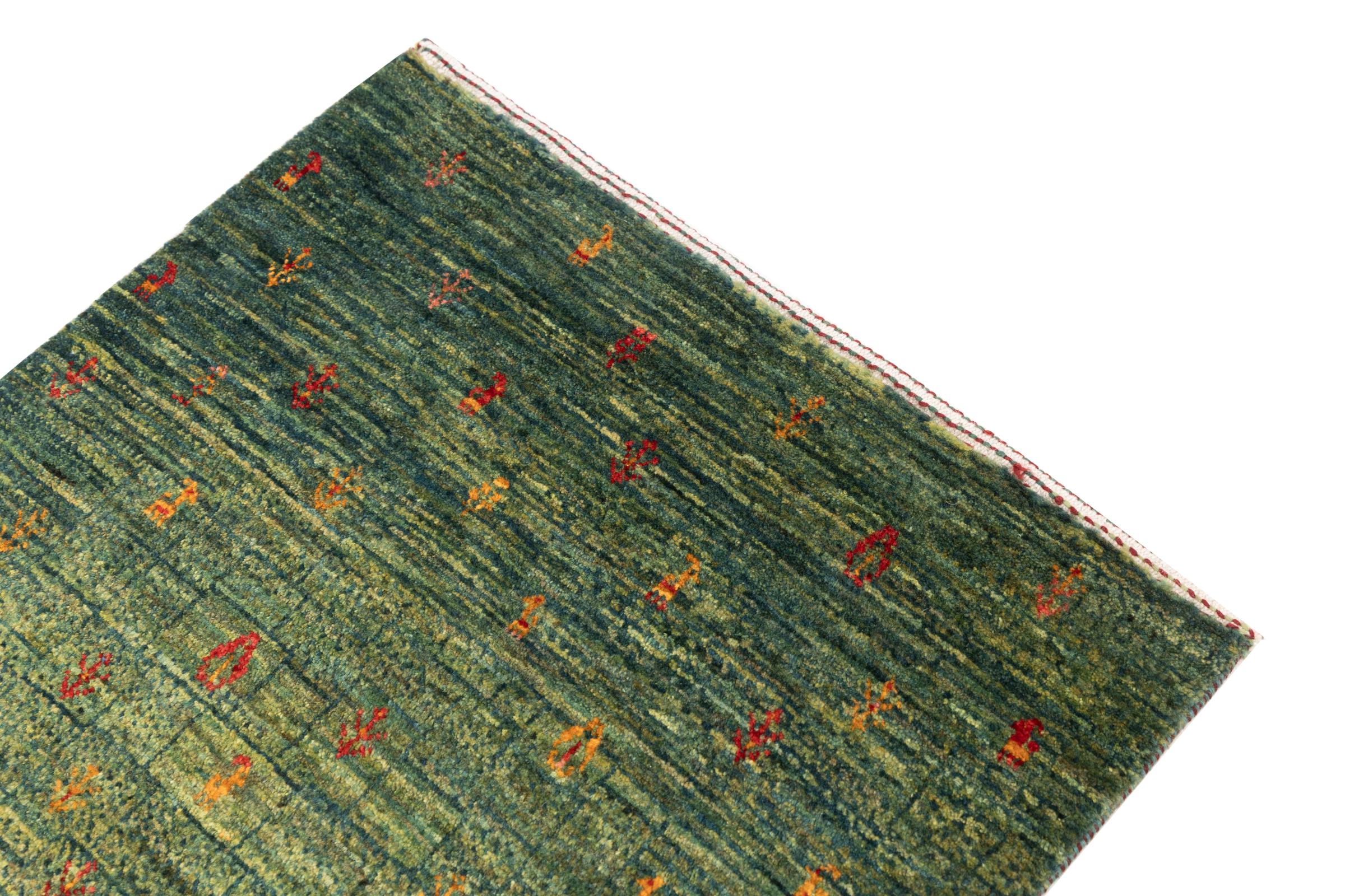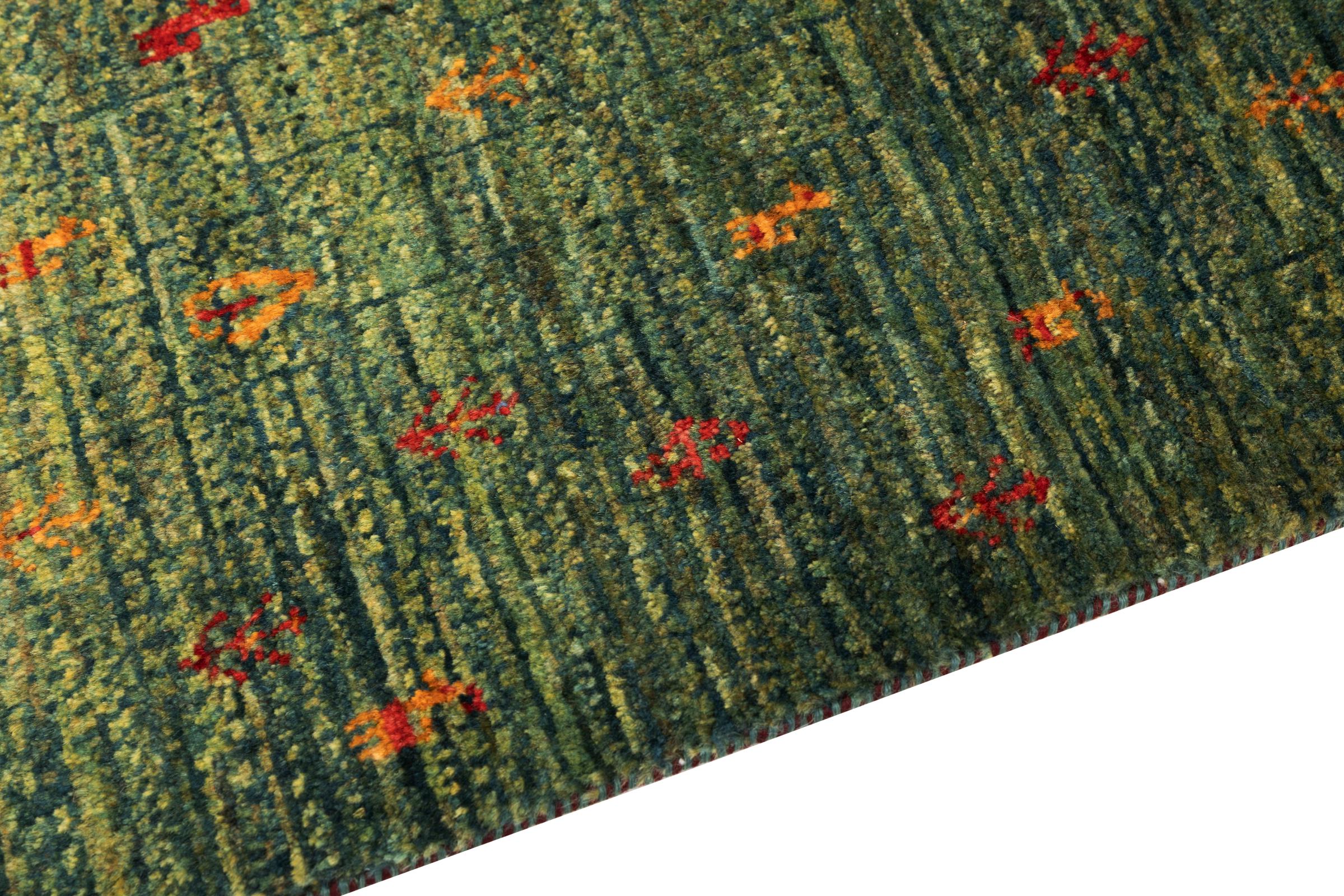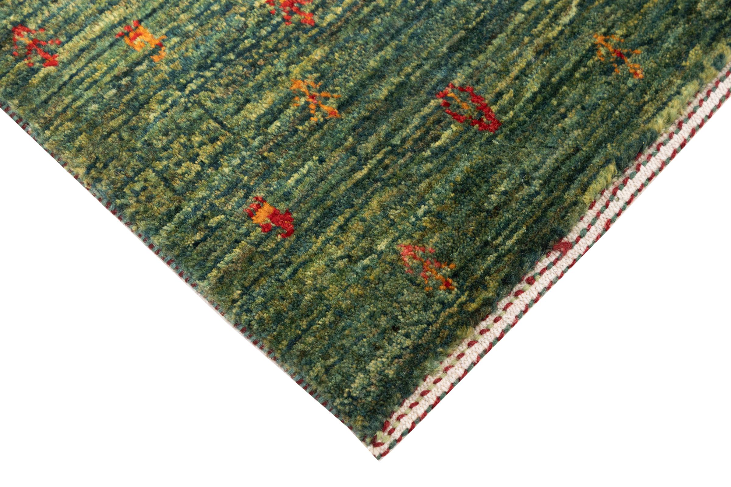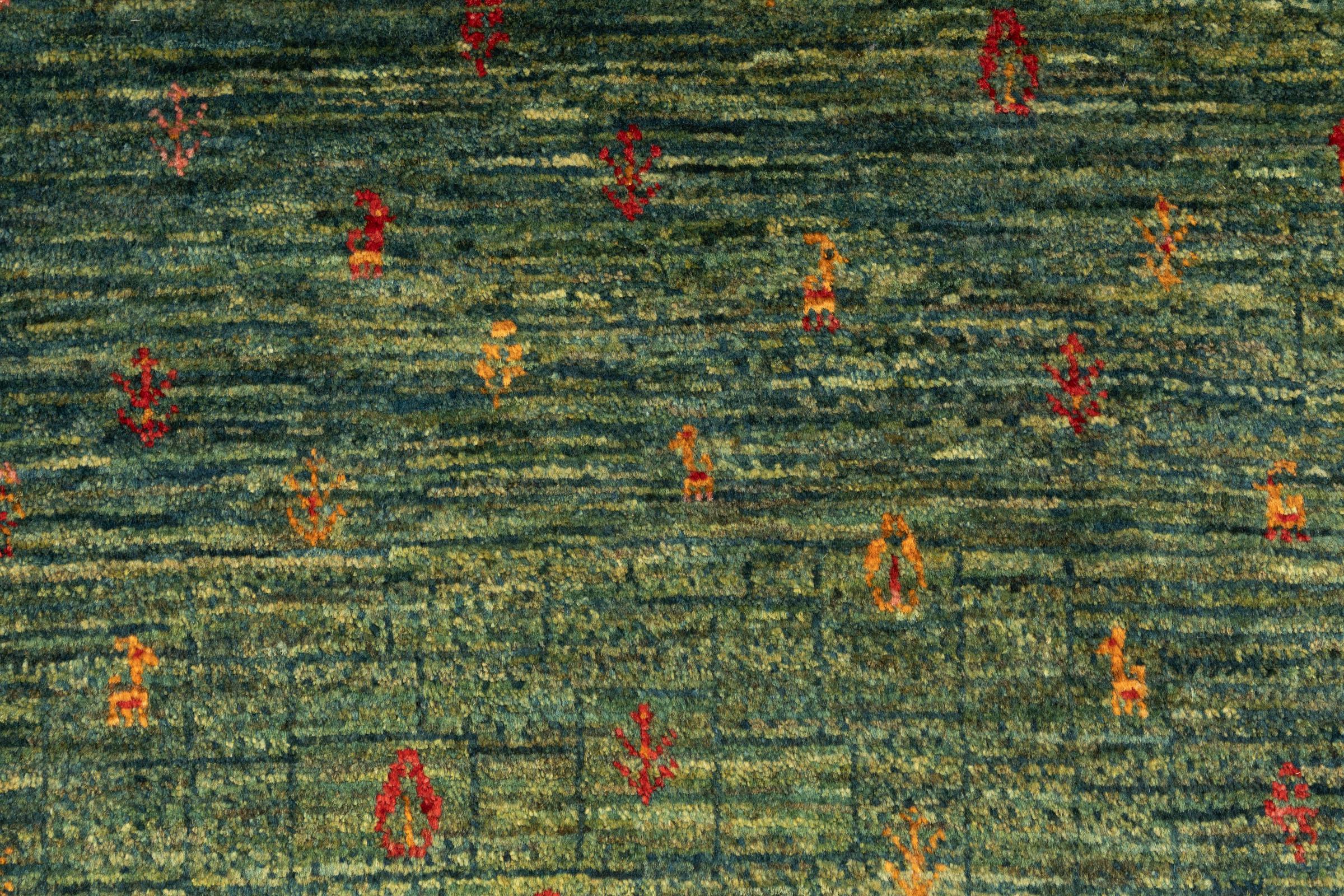 Dette smukke tæppe er en persisk Gabbeh og er en af ​​de højeste kvalitet Gabbeh tæpper. Tæpper er knyttet af nomader eller semi-nomader i Iran ved hjælp af traditionelt håndværk. De enkle motiver og mønstre er for det meste inspireret af nomadernes umiddelbare omgivelser. F.eks. Kan kameler, træer eller buske findes på traditionelle tæpper. Persiske Gabbeh-tæpper er lavet af uld fra lokale fårbesætninger. Ulden er derfor for det meste spundet for hånd. Hver af disse orientalske tæpper udgør en unik karakter af århundreder gammel kultur.