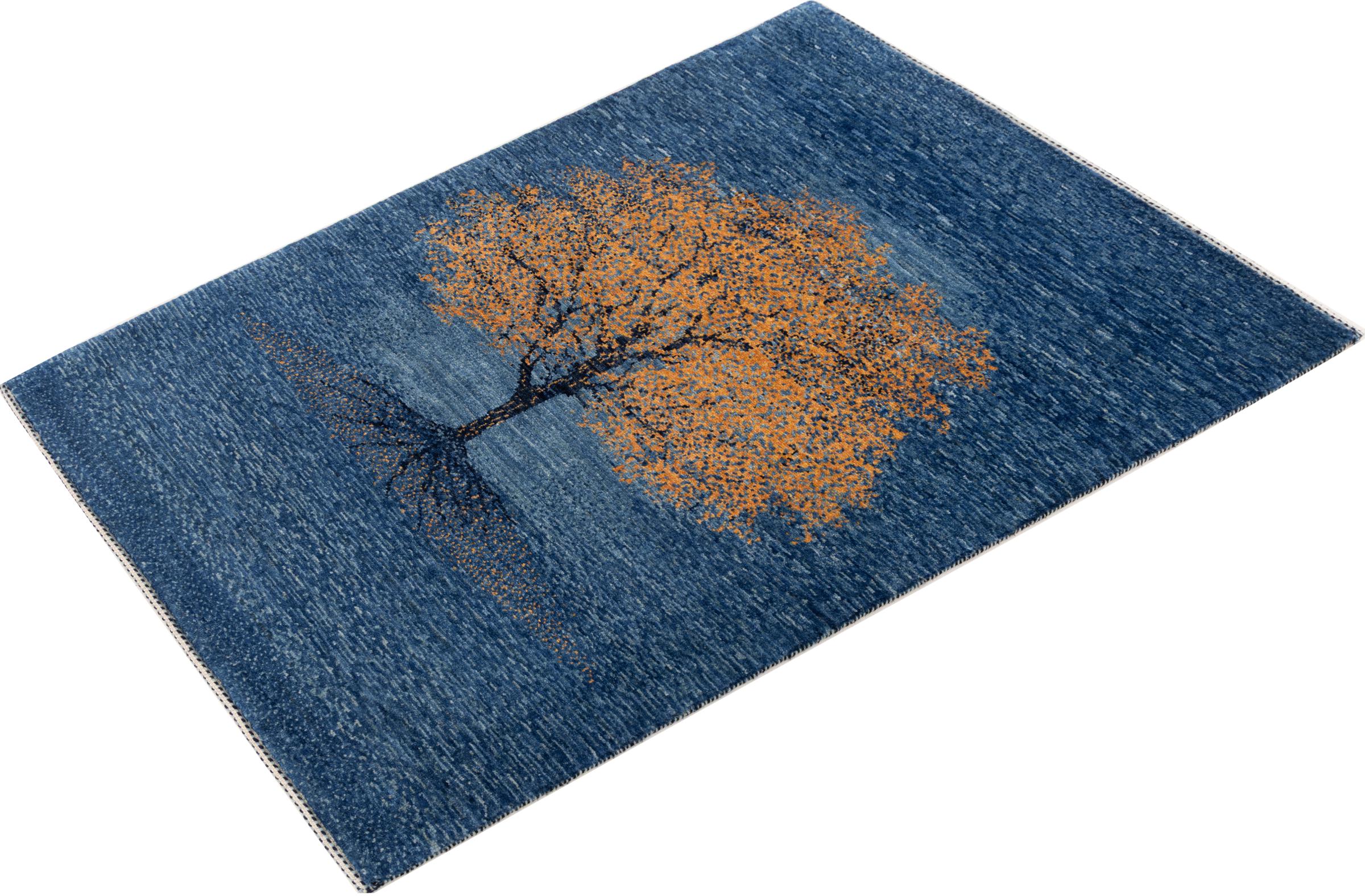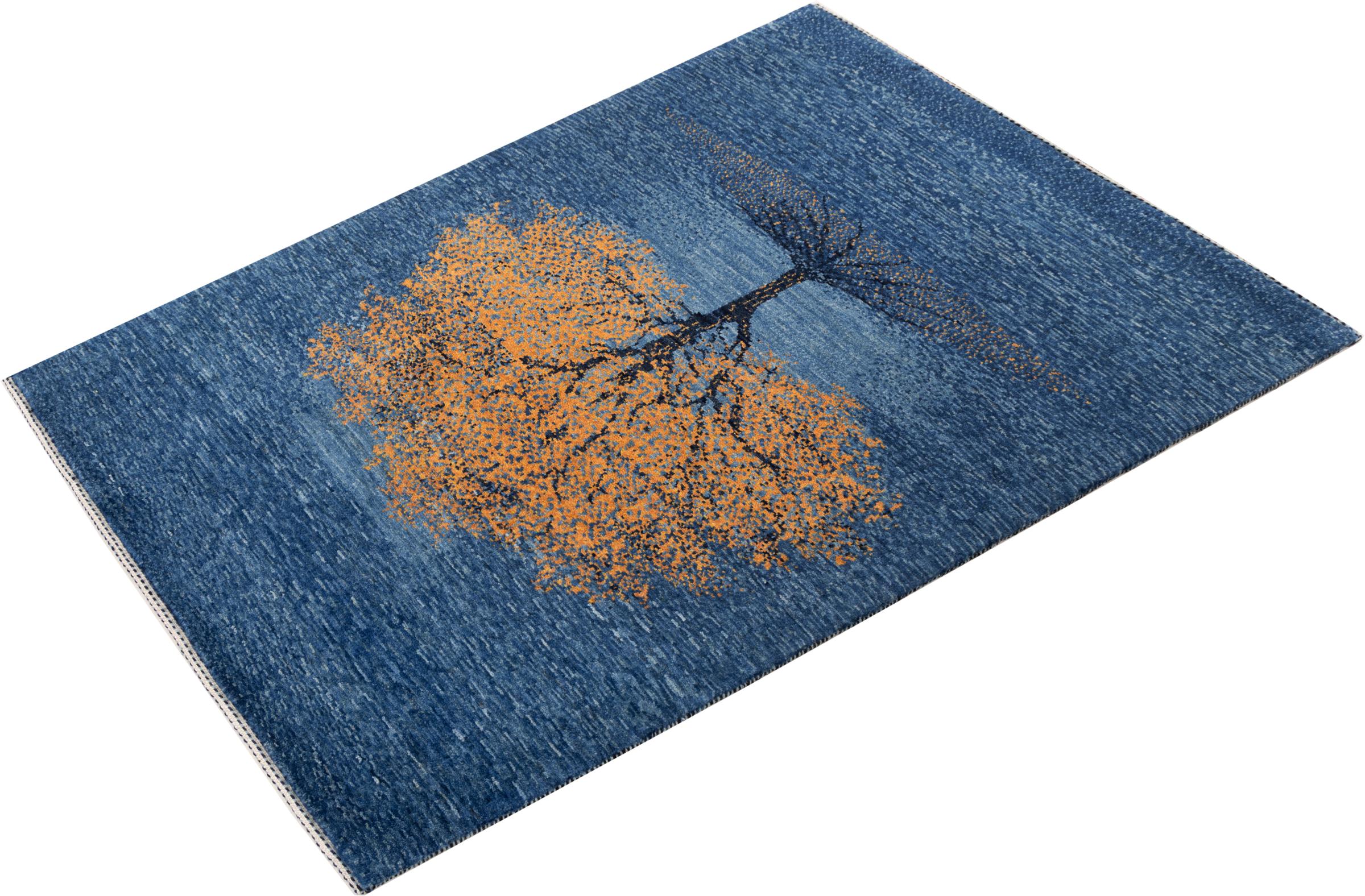 Dette smukke tæppe er en persisk Gabbeh og er en af ​​de højeste kvalitet Gabbeh tæpper. Tæpper er knyttet af nomader eller semi-nomader i Iran ved hjælp af traditionelt håndværk. De enkle motiver og mønstre er for det meste inspireret af nomadernes umiddelbare omgivelser. F.eks. Kan kameler, træer eller buske findes på traditionelle tæpper. Persiske Gabbeh-tæpper er lavet af uld fra lokale fårbesætninger. Ulden er derfor for det meste spundet for hånd. Hver af disse orientalske tæpper udgør en unik karakter af århundreder gammel kultur.
