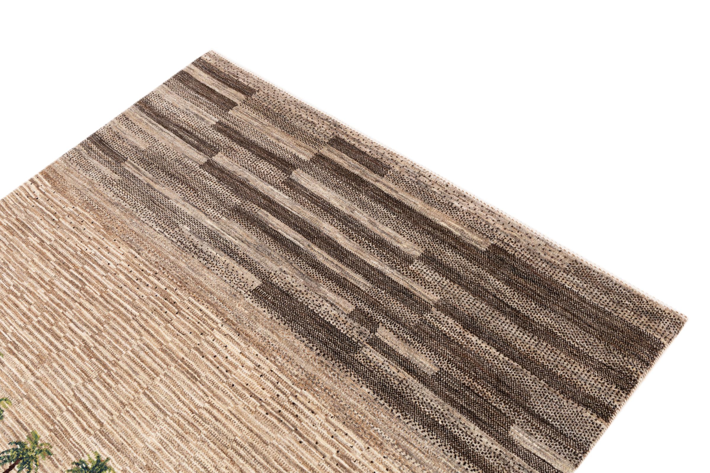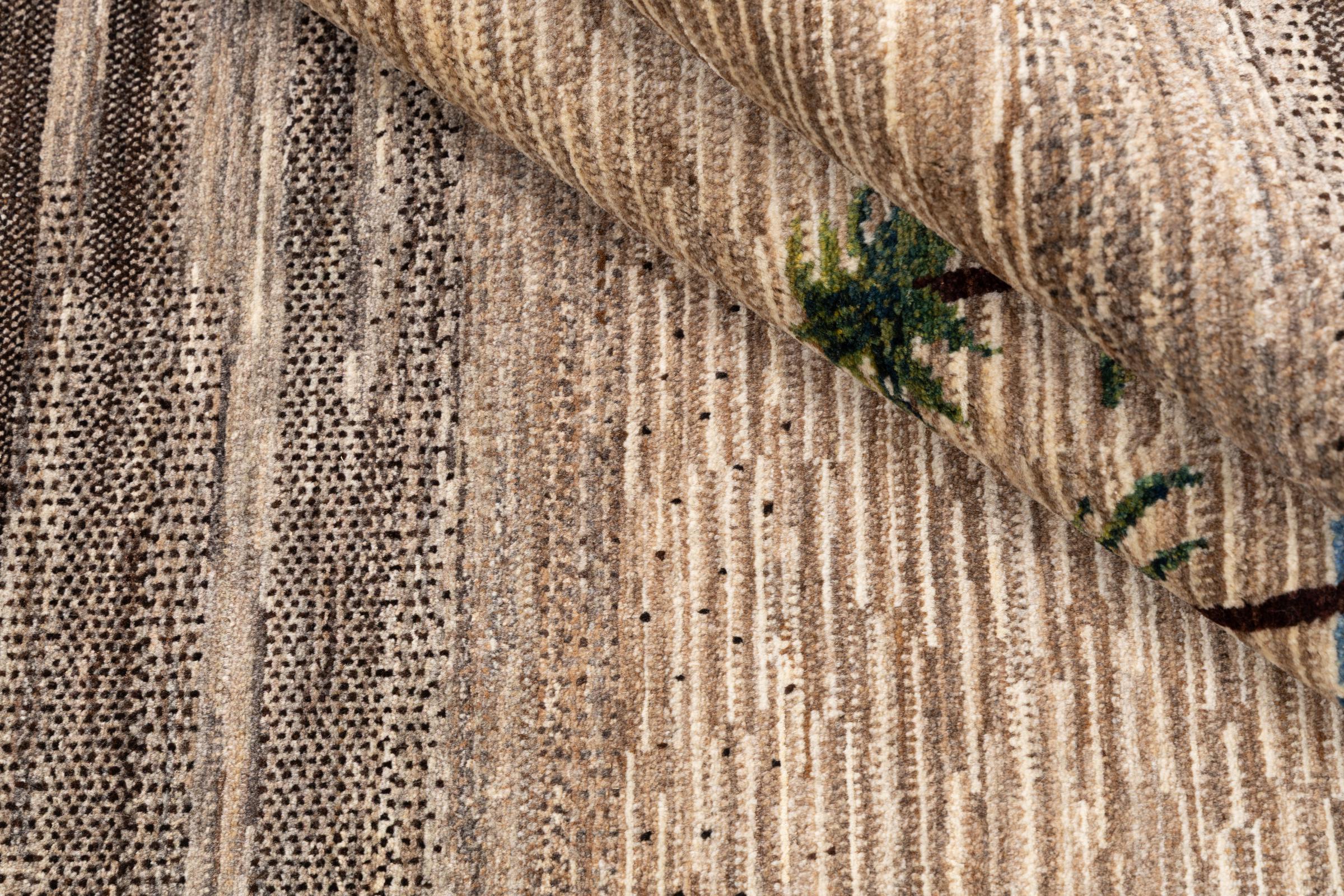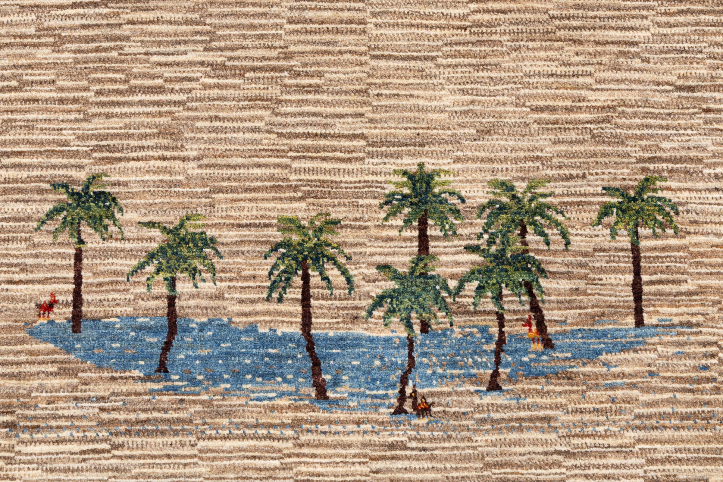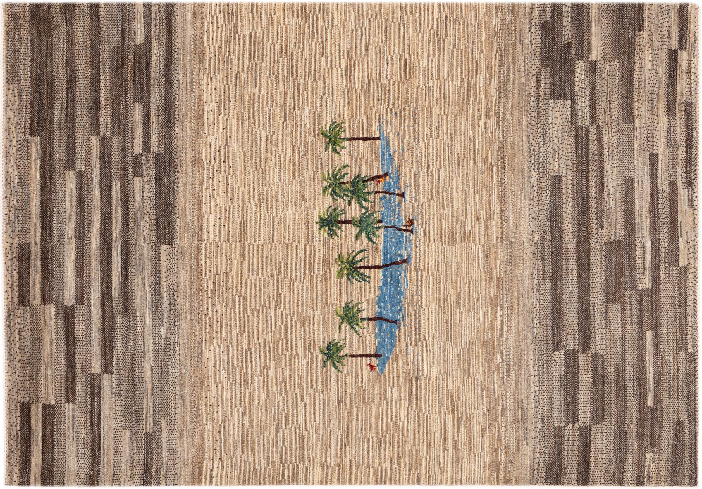 Dette smukke tæppe er en persisk Gabbeh og er en af ​​de højeste kvalitet Gabbeh tæpper. Tæpper er knyttet af nomader eller semi-nomader i Iran ved hjælp af traditionelt håndværk. De enkle motiver og mønstre er for det meste inspireret af nomadernes umiddelbare omgivelser. F.eks. Kan kameler, træer eller buske findes på traditionelle tæpper. Persiske Gabbeh-tæpper er lavet af uld fra lokale fårbesætninger. Ulden er derfor for det meste spundet for hånd. Hver af disse orientalske tæpper udgør en unik karakter af århundreder gammel kultur.