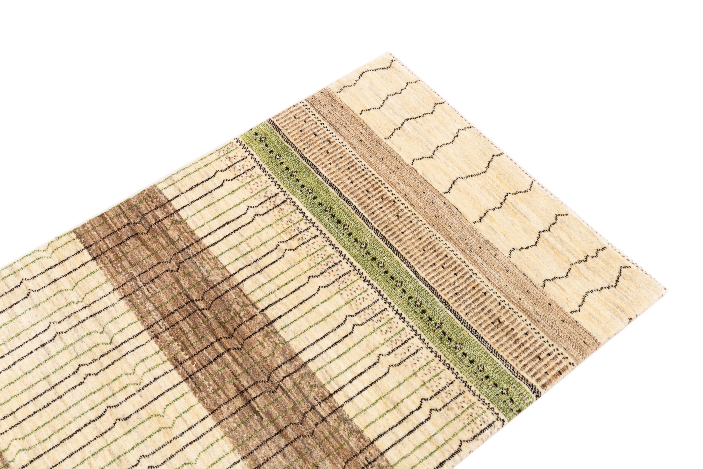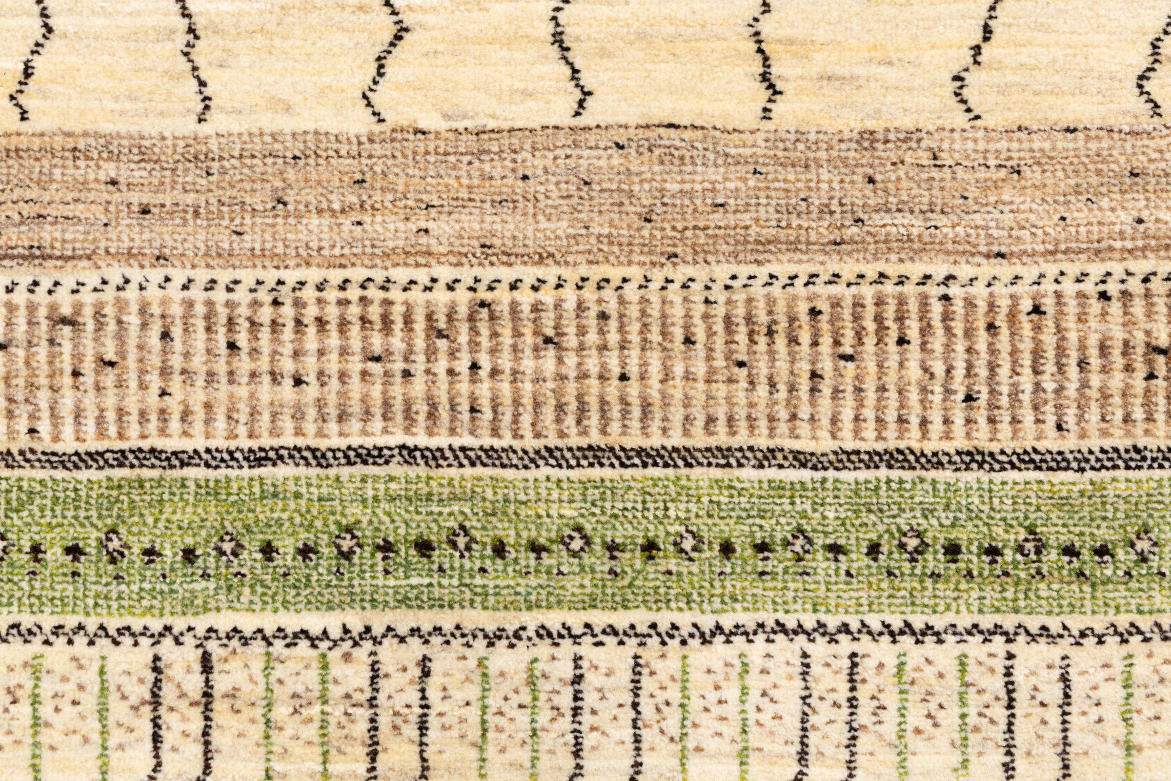 Dette smukke tæppe er en persisk Gabbeh og er en af ​​de højeste kvalitet Gabbeh tæpper. Tæpper er knyttet af nomader eller semi-nomader i Iran ved hjælp af traditionelt håndværk. De enkle motiver og mønstre er for det meste inspireret af nomadernes umiddelbare omgivelser. F.eks. Kan kameler, træer eller buske findes på traditionelle tæpper. Persiske Gabbeh-tæpper er lavet af uld fra lokale fårbesætninger. Ulden er derfor for det meste spundet for hånd. Hver af disse orientalske tæpper udgør en unik karakter af århundreder gammel kultur.