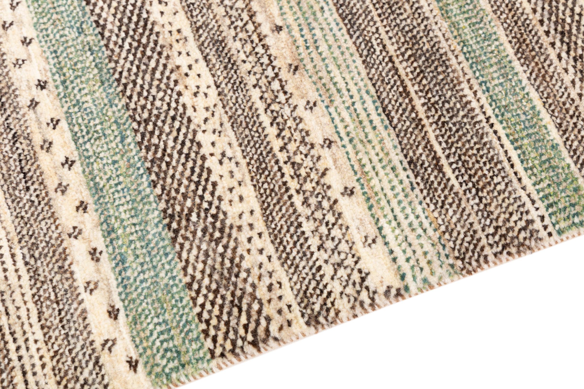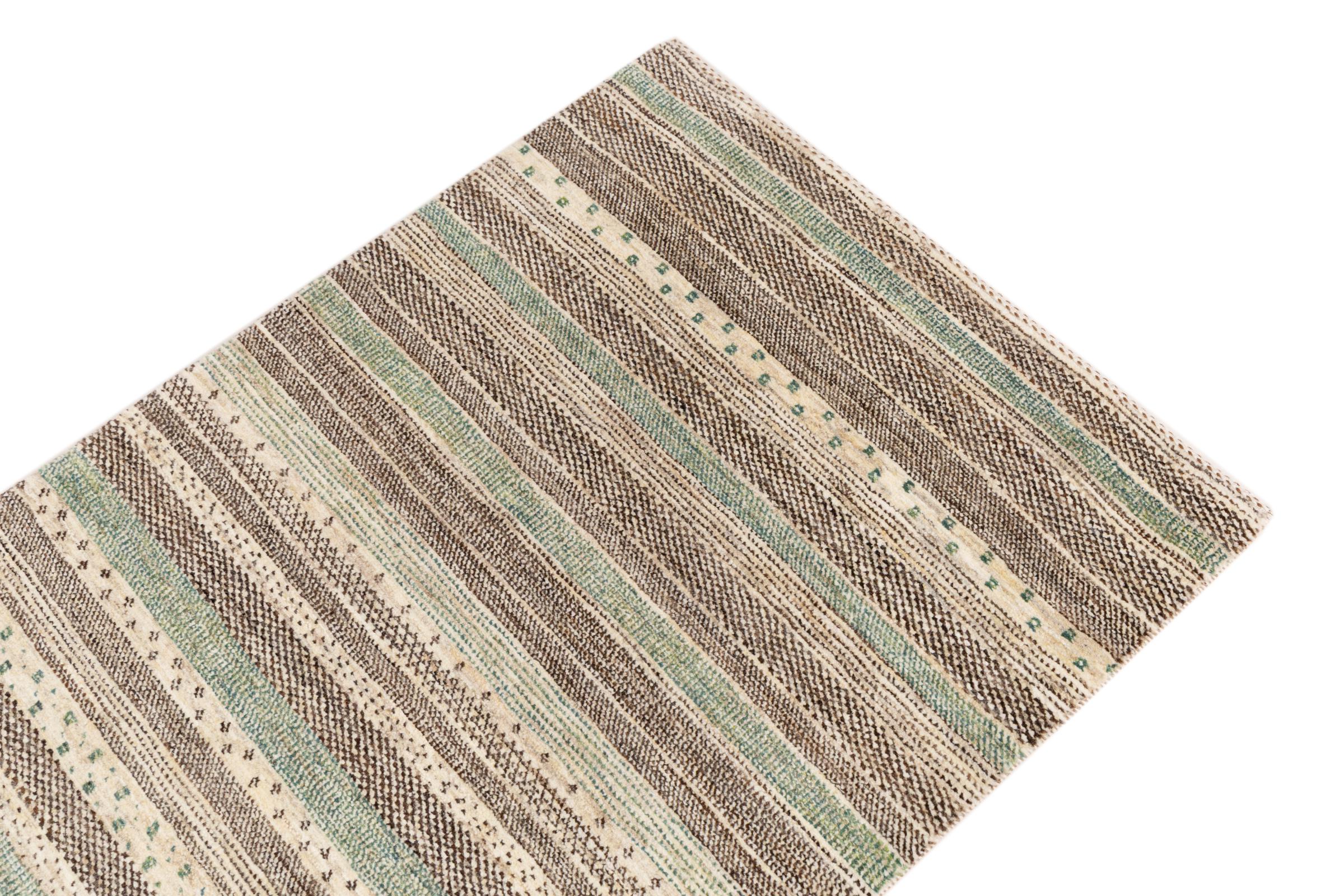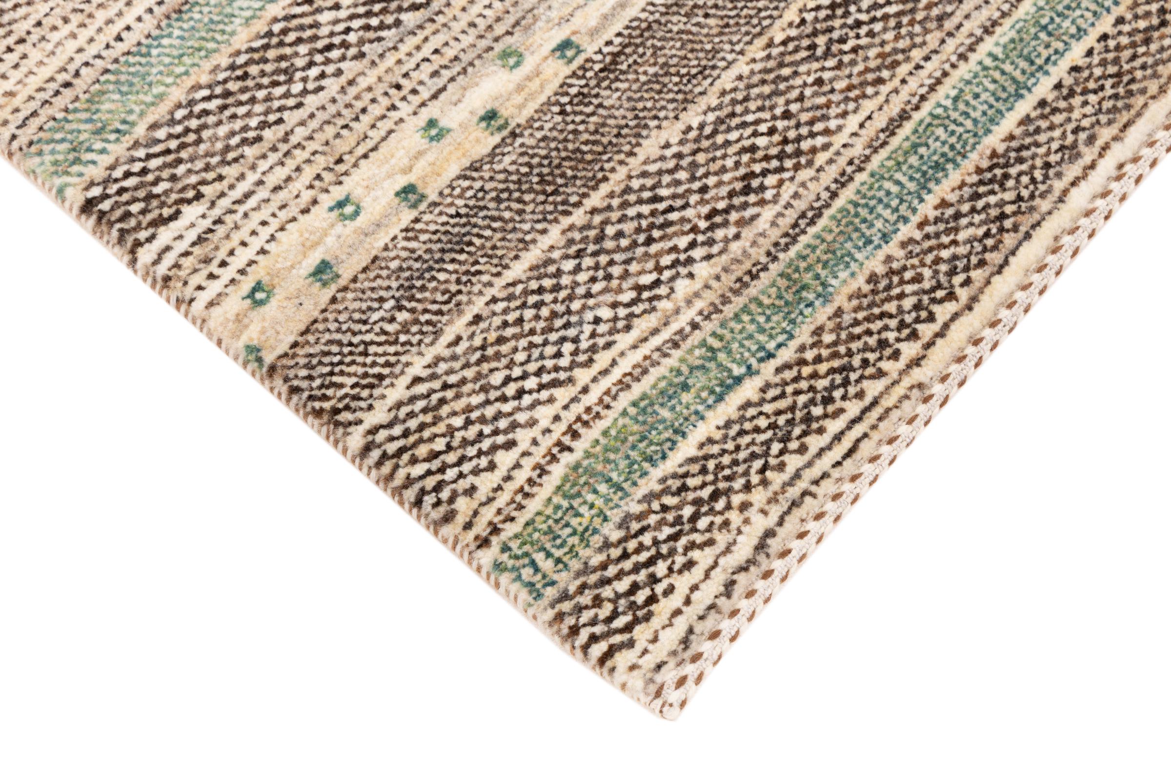 Dette smukke tæppe er en persisk Gabbeh og er en af ​​de højeste kvalitet Gabbeh tæpper. Tæpper er knyttet af nomader eller semi-nomader i Iran ved hjælp af traditionelt håndværk. De enkle motiver og mønstre er for det meste inspireret af nomadernes umiddelbare omgivelser. F.eks. Kan kameler, træer eller buske findes på traditionelle tæpper. Persiske Gabbeh-tæpper er lavet af uld fra lokale fårbesætninger. Ulden er derfor for det meste spundet for hånd. Hver af disse orientalske tæpper udgør en unik karakter af århundreder gammel kultur.