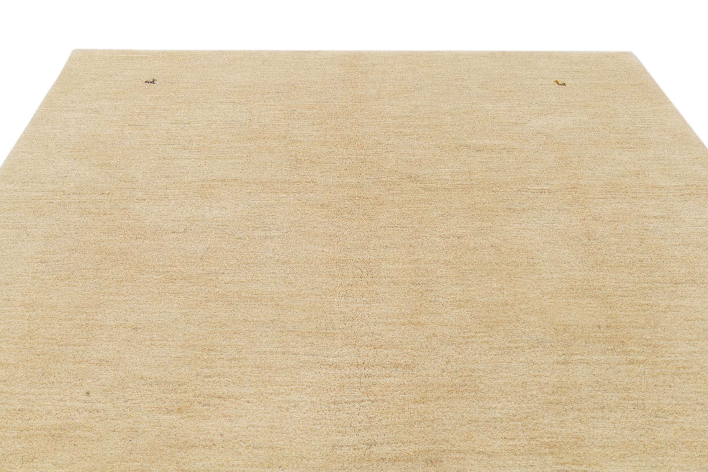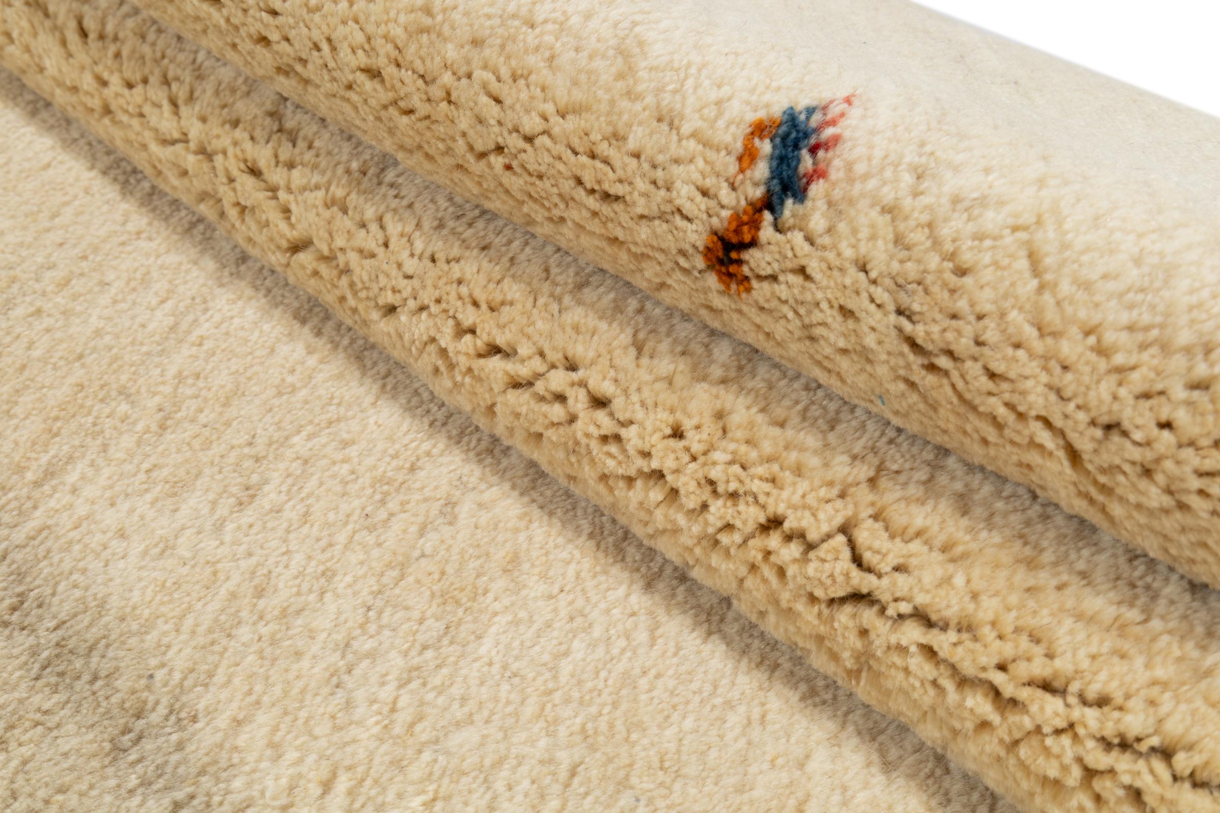Dette smukke tæppe er en persisk Gabbeh og er en af ​​de højeste kvalitet Gabbeh tæpper. Tæpper er knyttet af nomader eller semi-nomader i Iran ved hjælp af traditionelt håndværk. De enkle motiver og mønstre er for det meste inspireret af nomadernes umiddelbare omgivelser. F.eks. Kan kameler, træer eller buske findes på traditionelle tæpper. Persiske Gabbeh-tæpper er lavet af uld fra lokale fårbesætninger. Ulden er derfor for det meste spundet for hånd. Hver af disse orientalske tæpper udgør en unik karakter af århundreder gammel kultur.
