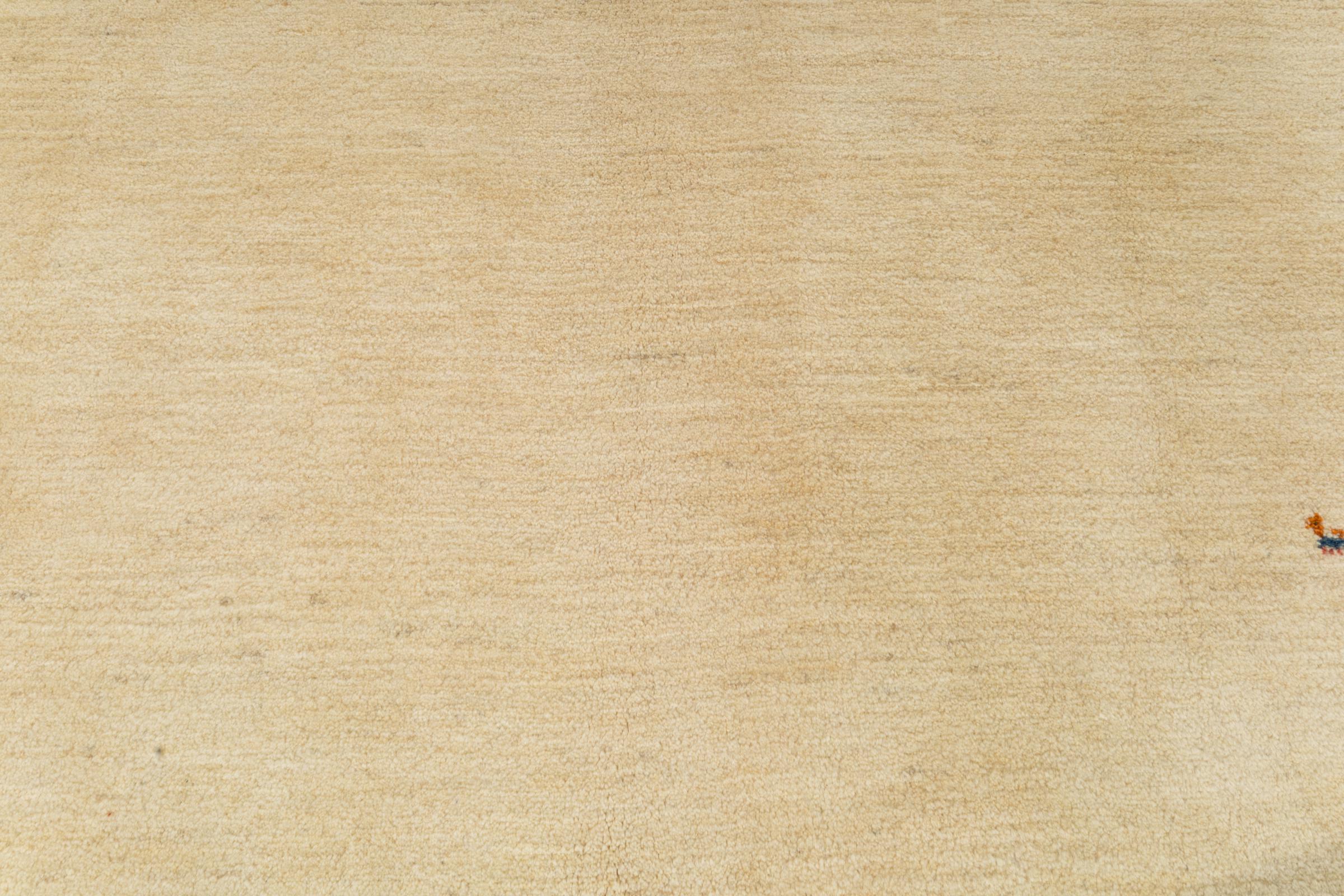 Denne håndknyttede persiske Gabbeh imponerer straks med sin høje kvalitet og meget robuste luv. Den blev håndknyttet af Ghashghai-nomader i Fars-provinsen i det sydlige Persien af ​​den bedste lokale fåreuld. Naturlige plantefarver bruges til at farve ulden. Dette gør den til en meget værdifuld tilføjelse til børneværelset. Denne persiske Gabbeh repræsenterer den højeste klasse af Gabbeh-tæpper.