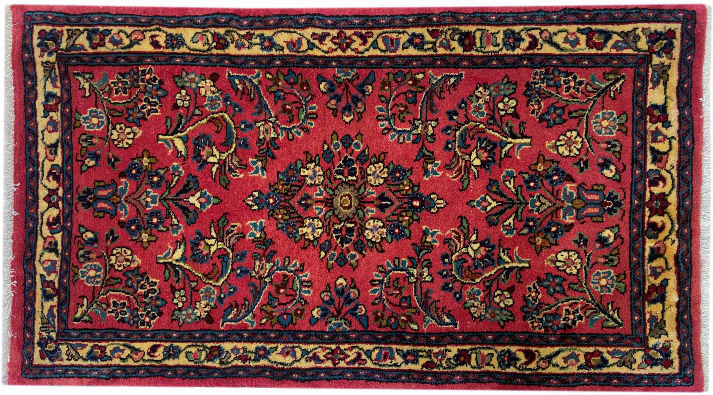 Tæppe-nr.: 318398002422932 Størrelse: 118x66 cm Tykkelse: ca. 12 mm Knuder: 200 000 - 250 000 / m² Forarbejdelse: Knyttet i hånden Luv: Håndspunden uld Kæde: Bomuld Oprindelse: Persien / Iran Alder: Ny Vægt: ca. 3 kg Også kendt som Arak , Sarough, Sarouk, Saruk, Saroq, Sultanabad Antal på lager: Unik - Kun 1 tilbage på lager