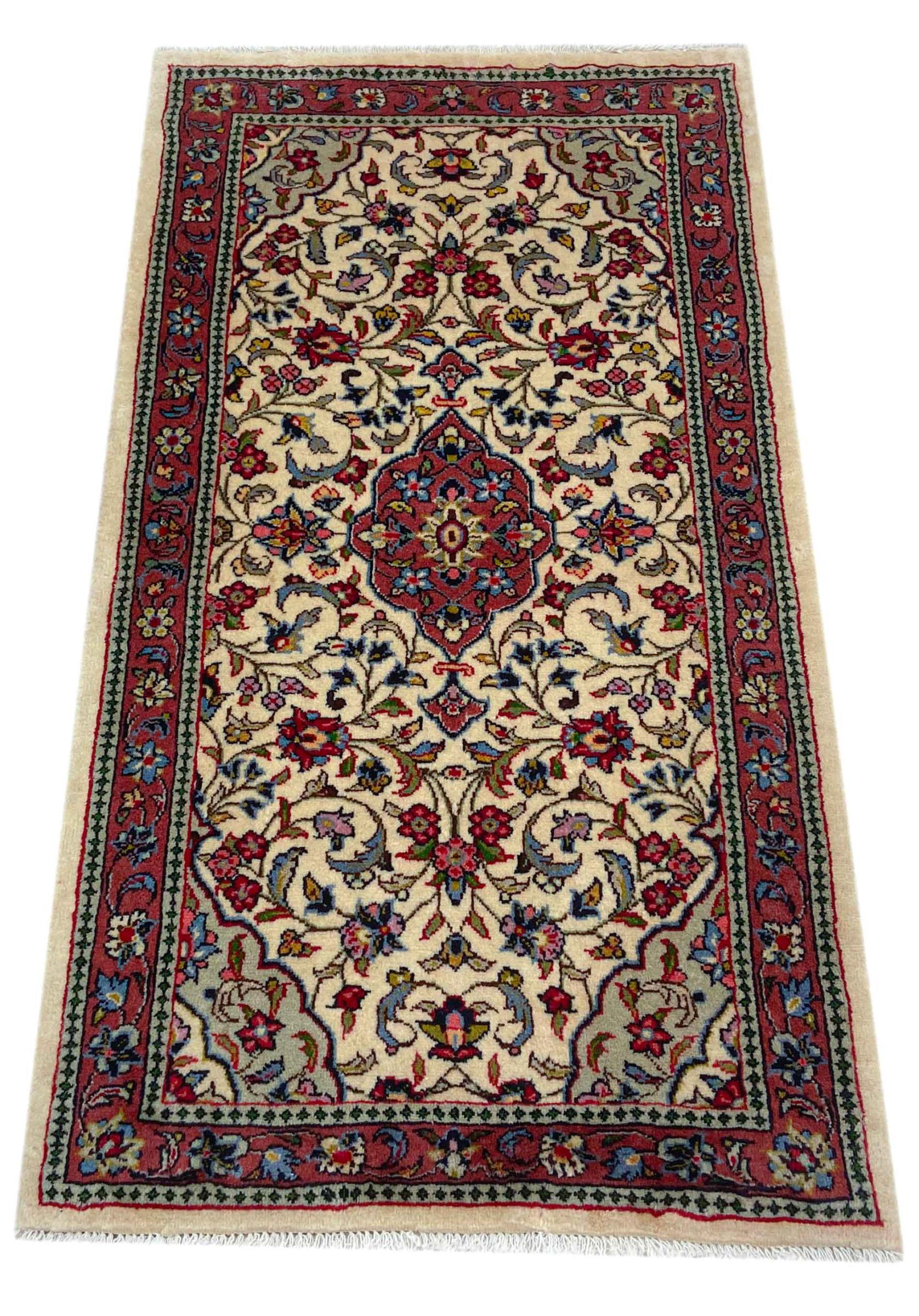 Tæppe-nr.: 318425005299978 Størrelse: 125x71 cm Tykkelse: ca. 12 mm Knuder: 200 000 - 250 000 / m² Forarbejdelse: Knyttet i hånden Luv: Håndspunden uld Kæde: Bomuld Oprindelse: Persien / Iran Alder: Ny Vægt: ca. 4 kg Også kendt som Arak , Sarough, Sarouk, Saruk, Saroq, Sultanabad Antal på lager: Unik - Kun 1 tilbage på lager