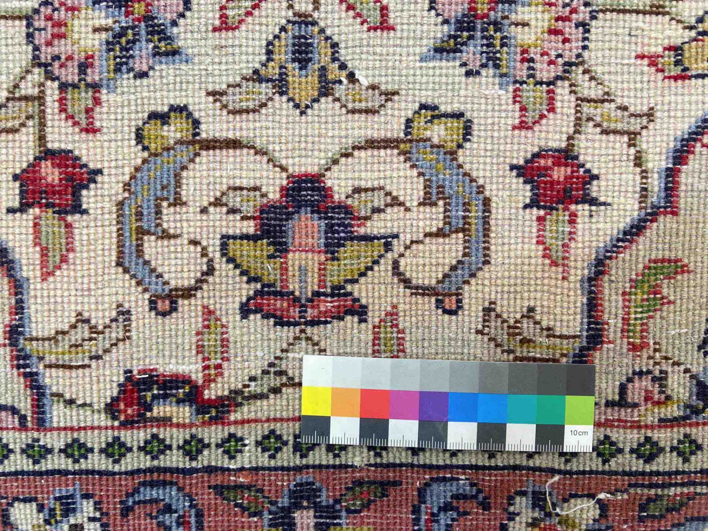 Dette tæppe består af håndspundet fåruld af højeste kvalitet. Især i Iran (tidligere Persien), Afghanistan og Pakistan spindes uld med hånden, før tæppet faktisk knuses. Uld har bevist sig som et naturligt og ekstremt slidstærkt materiale gennem århundreder. Det har blandt andet snavsafvisende og varmeisolerende egenskaber. Samtidig er uld uforlignelig blød og bringer en naturlig glans.