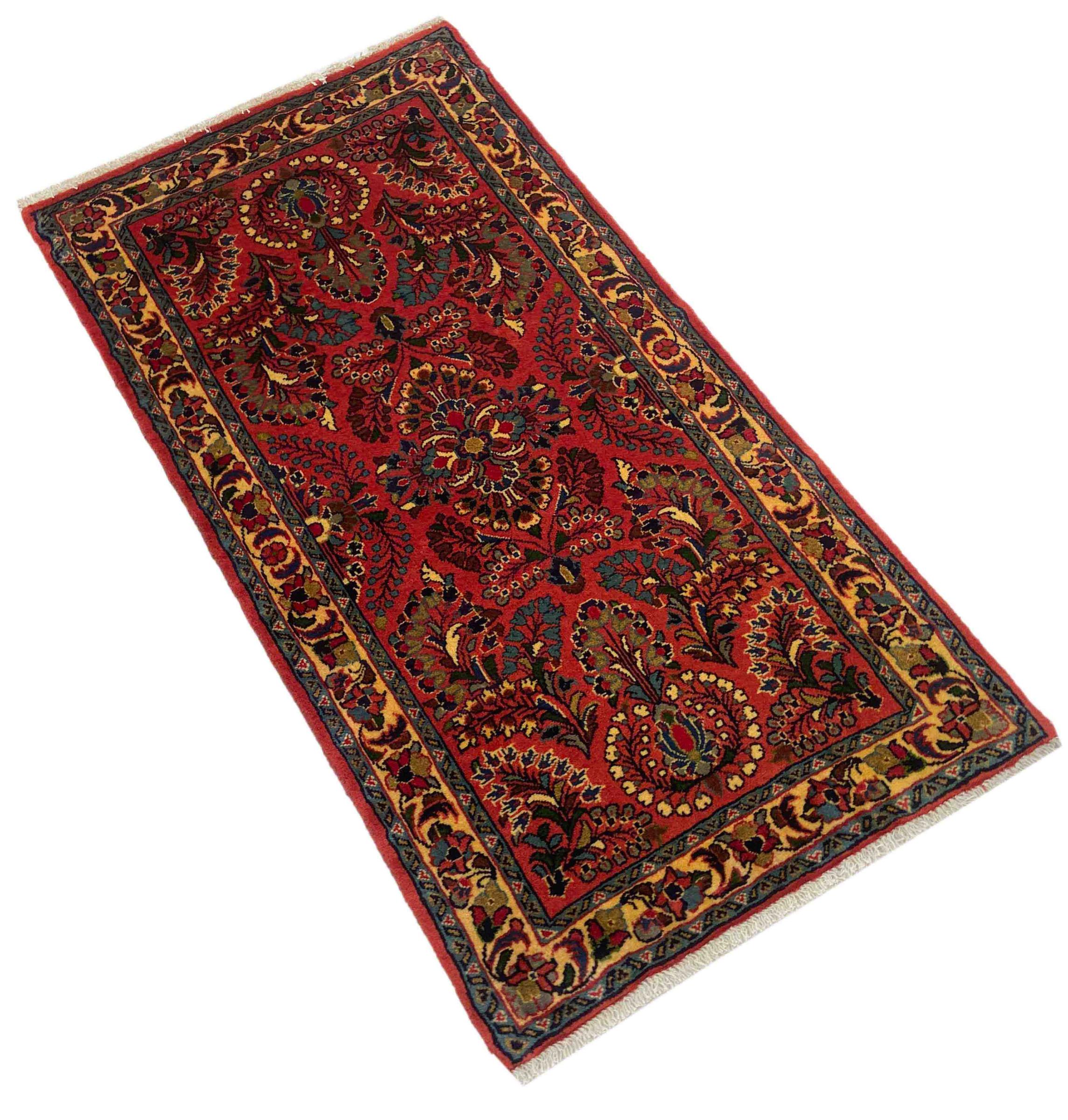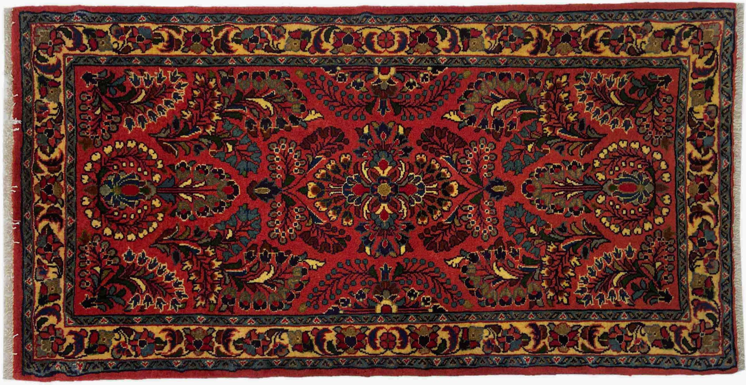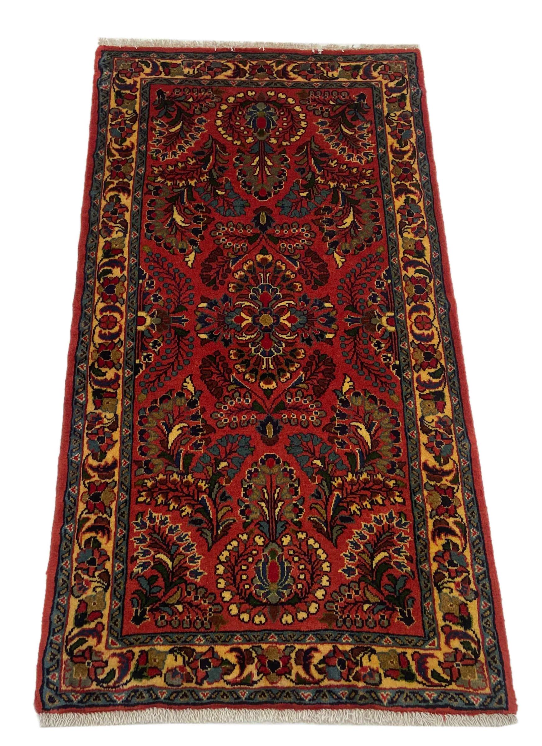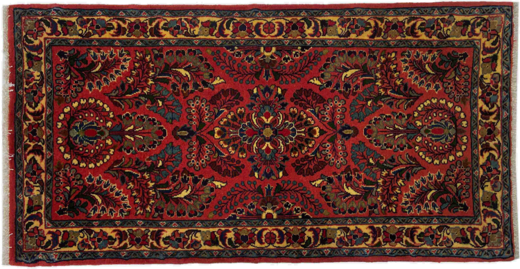 Tæppe-nr.: 318433003747523 Størrelse: 126x65 cm Tykkelse: ca. 12 mm Knuder: 200 000 - 250 000 / m² Forarbejdelse: Knyttet i hånden Luv: Håndspunden uld Kæde: Bomuld Oprindelse: Persien / Iran Alder: Ny Vægt: ca. 3 kg Også kendt som Arak , Sarough, Sarouk, Saruk, Saroq, Sultanabad Antal på lager: Unik - Kun 1 tilbage på lager