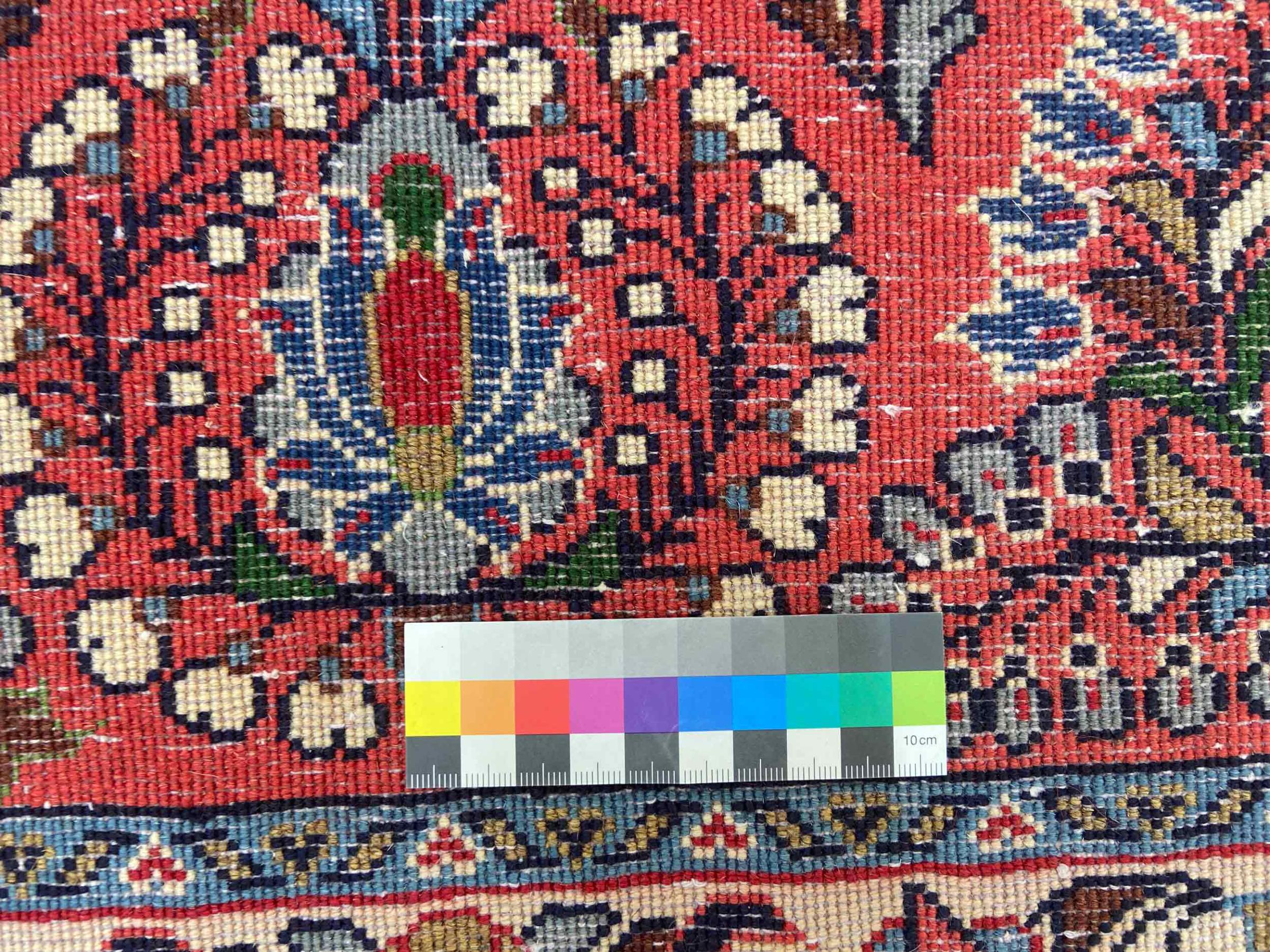 Dette tæppe består af håndspundet fåruld af højeste kvalitet. Især i Iran (tidligere Persien), Afghanistan og Pakistan spindes uld med hånden, før tæppet faktisk knuses. Uld har bevist sig som et naturligt og ekstremt slidstærkt materiale gennem århundreder. Det har blandt andet snavsafvisende og varmeisolerende egenskaber. Samtidig er uld uforlignelig blød og bringer en naturlig glans.
