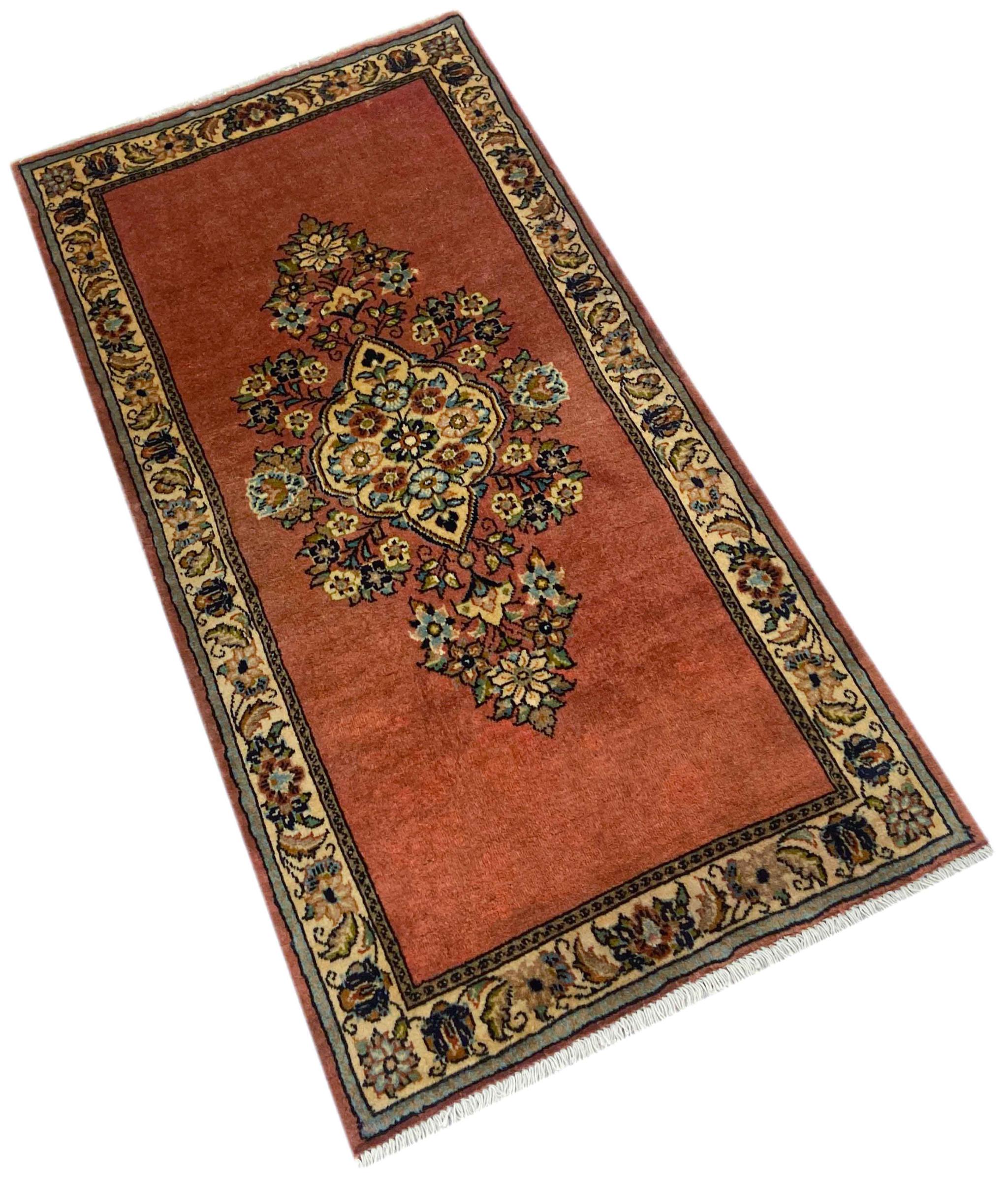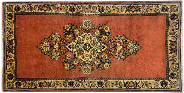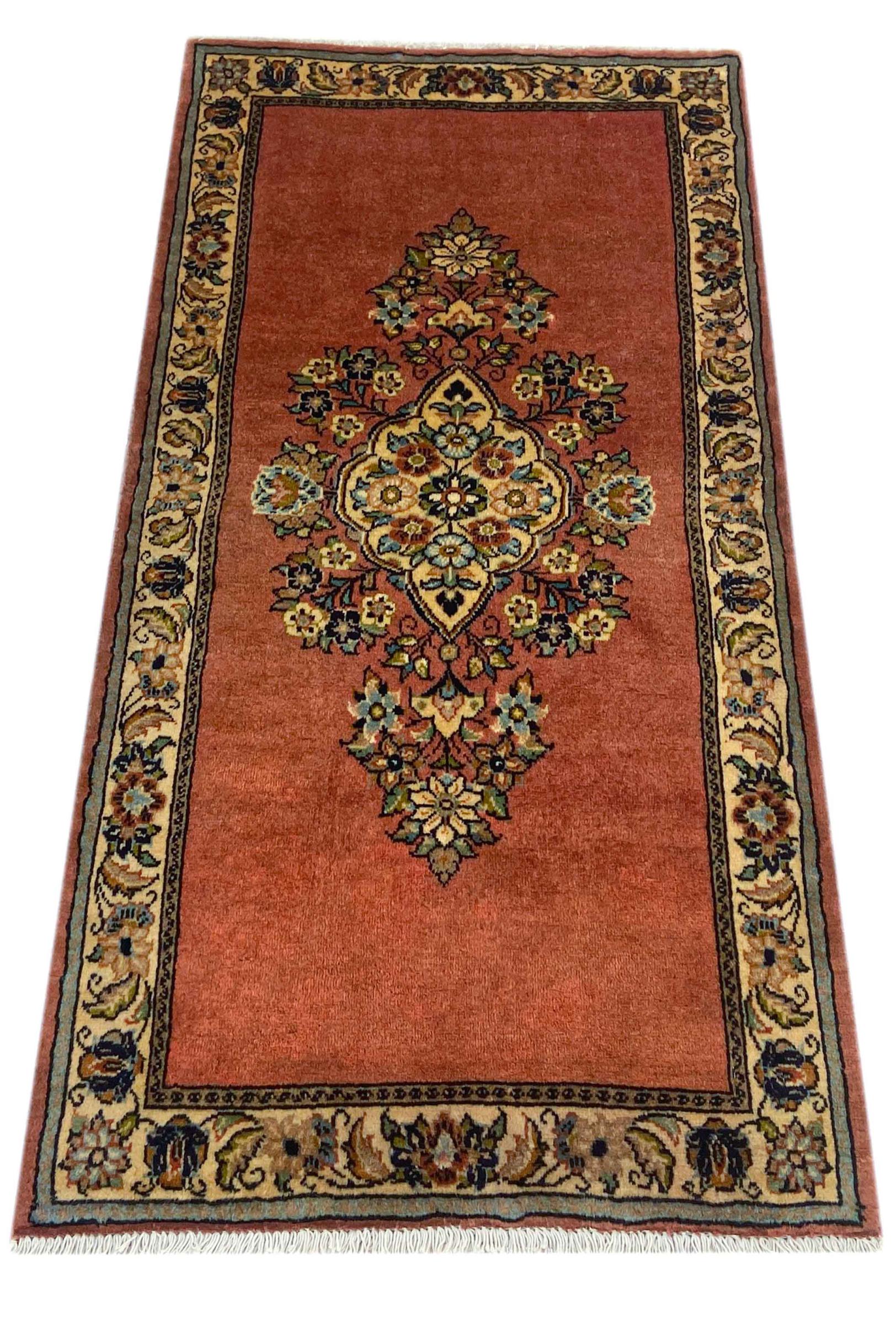 Tæppe-nr.: 318430008939259 Størrelse: 127x65 cm Tykkelse: ca. 12 mm Knuder: 200 000 - 250 000 / m² Forarbejdelse: Knyttet i hånden Luv: Håndspunden uld Kæde: Bomuld Oprindelse: Persien / Iran Alder: Ny Vægt: ca. 3 kg Også kendt som Arak , Sarough, Sarouk, Saruk, Saroq, Sultanabad Antal på lager: Unik - Kun 1 tilbage på lager