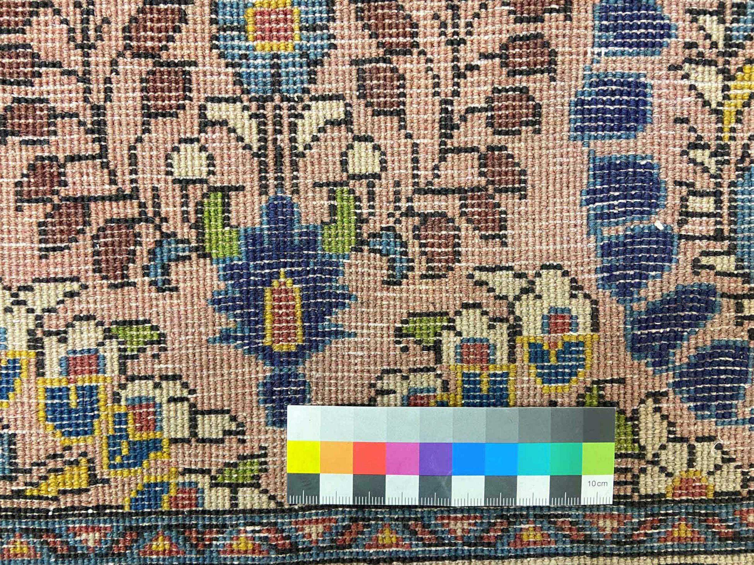 Dette tæppe består af håndspundet fåruld af højeste kvalitet. Især i Iran (tidligere Persien), Afghanistan og Pakistan spindes uld med hånden, før tæppet faktisk knuses. Uld har bevist sig som et naturligt og ekstremt slidstærkt materiale gennem århundreder. Det har blandt andet snavsafvisende og varmeisolerende egenskaber. Samtidig er uld uforlignelig blød og bringer en naturlig glans.