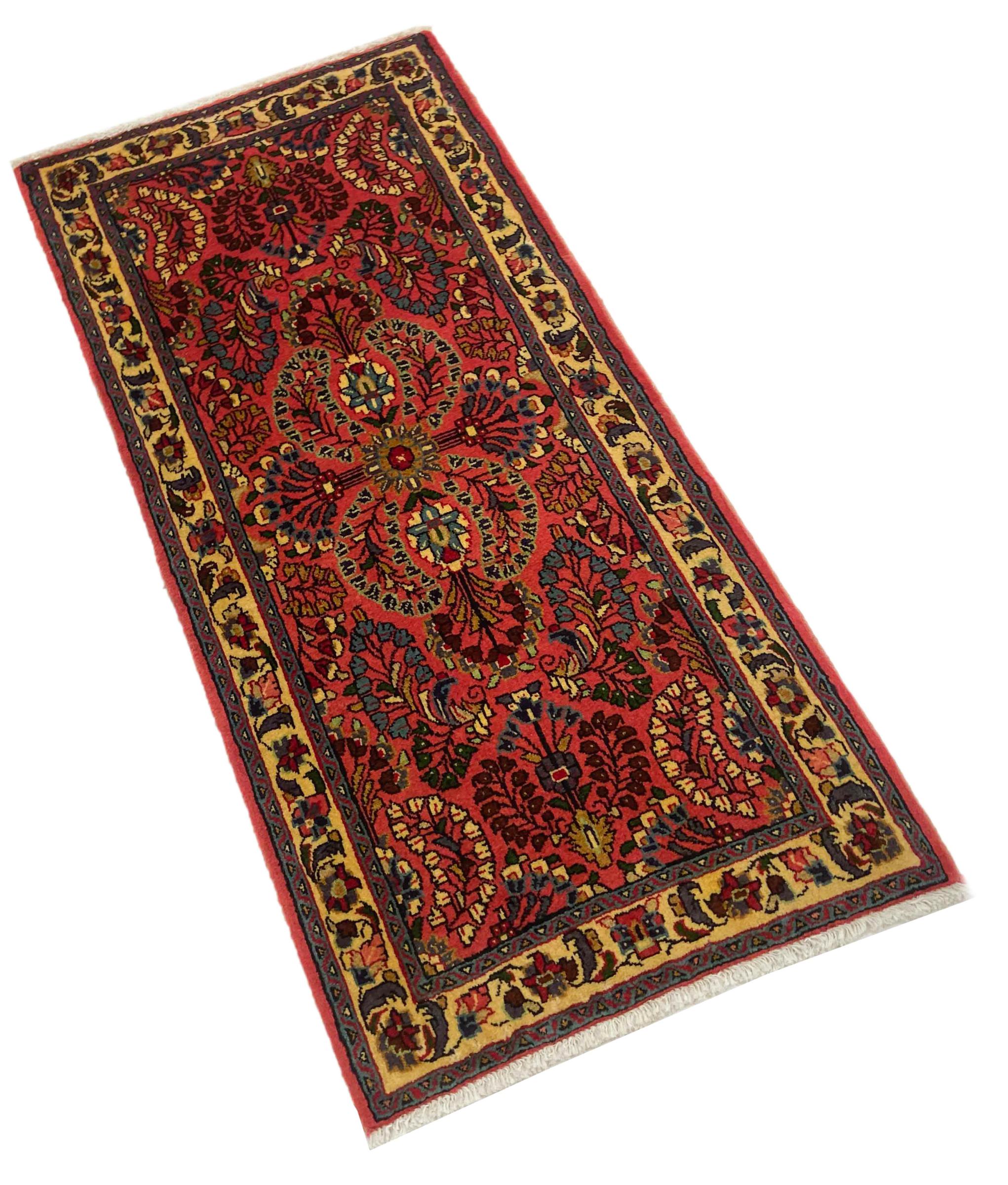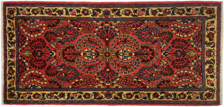 Tæppe-nr.: 318429005019741 Størrelse: 134x64 cm Tykkelse: ca. 12 mm Knuder: 200 000 - 250 000 / m² Forarbejdelse: Knyttet i hånden Luv: Håndspunden uld Kæde: Bomuld Oprindelse: Persien / Iran Alder: Ny Vægt: ca. 3 kg Også kendt som Arak , Sarough, Sarouk, Saruk, Saroq, Sultanabad Antal på lager: Unik - Kun 1 tilbage på lager