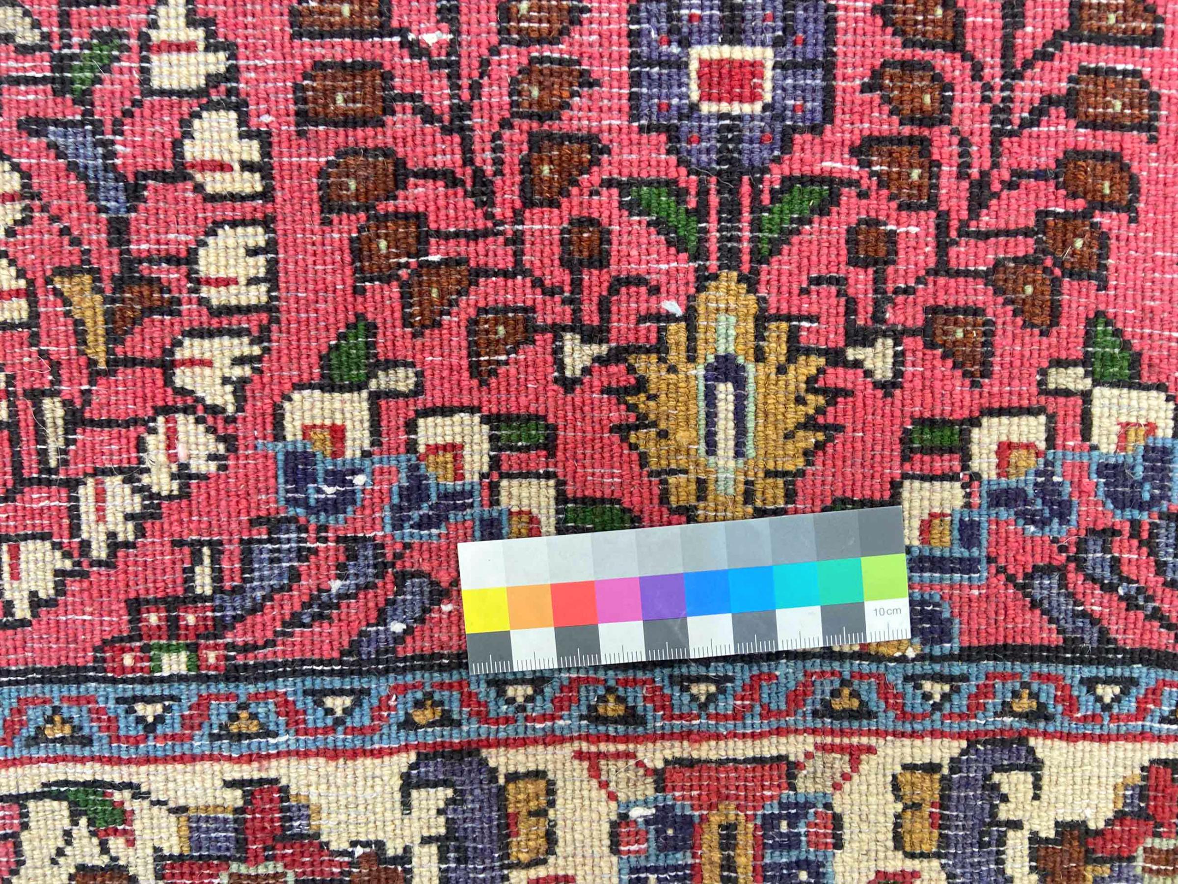 Dette persisk tæppe blev knyttet i hånden i Sarouk. Regionen står for tunge tæpper, som er af meget høj kvalitet. Takket være den smukke mønster passer det med sikkerhed i mange af dine værelser.