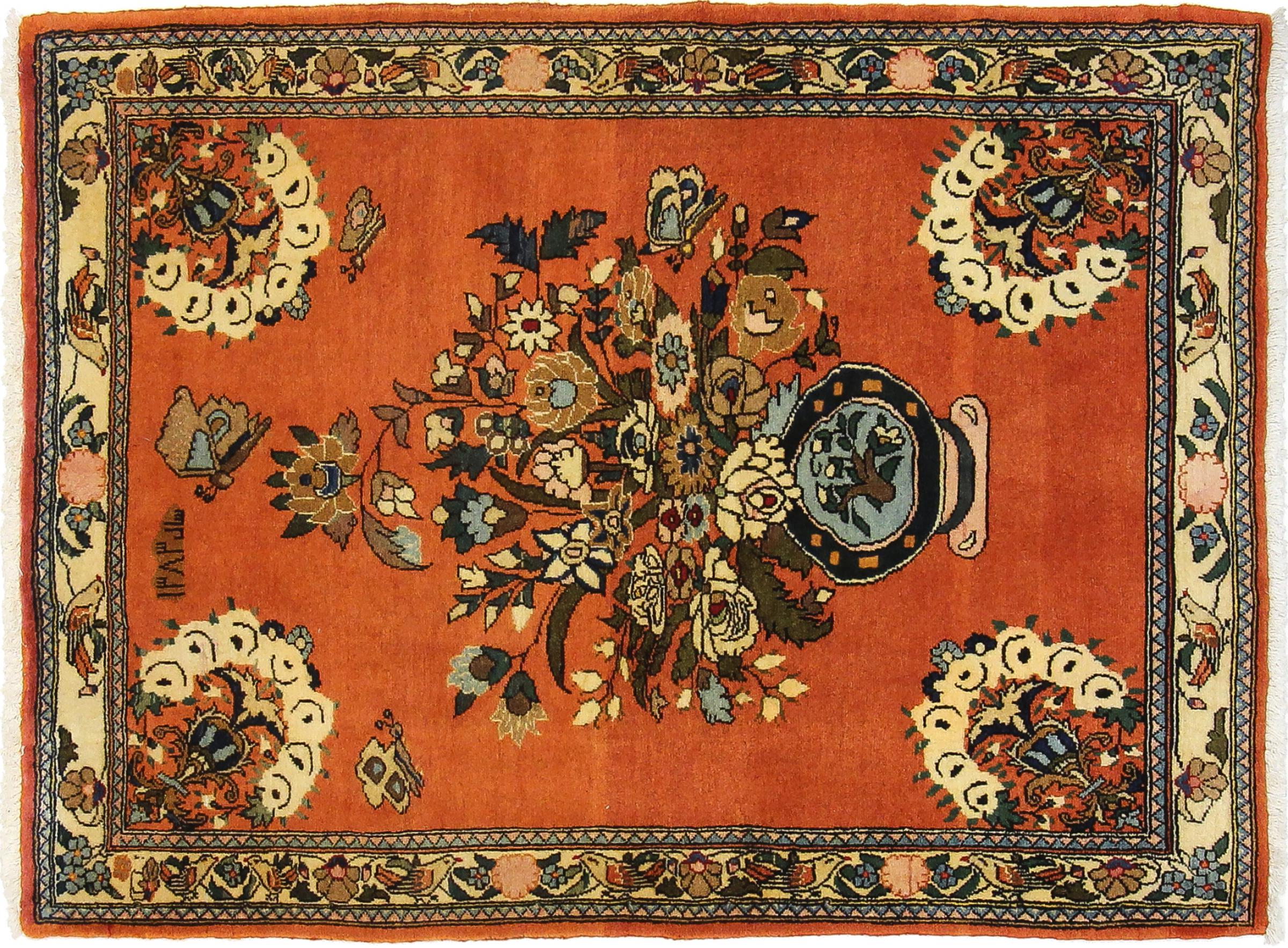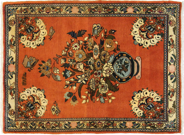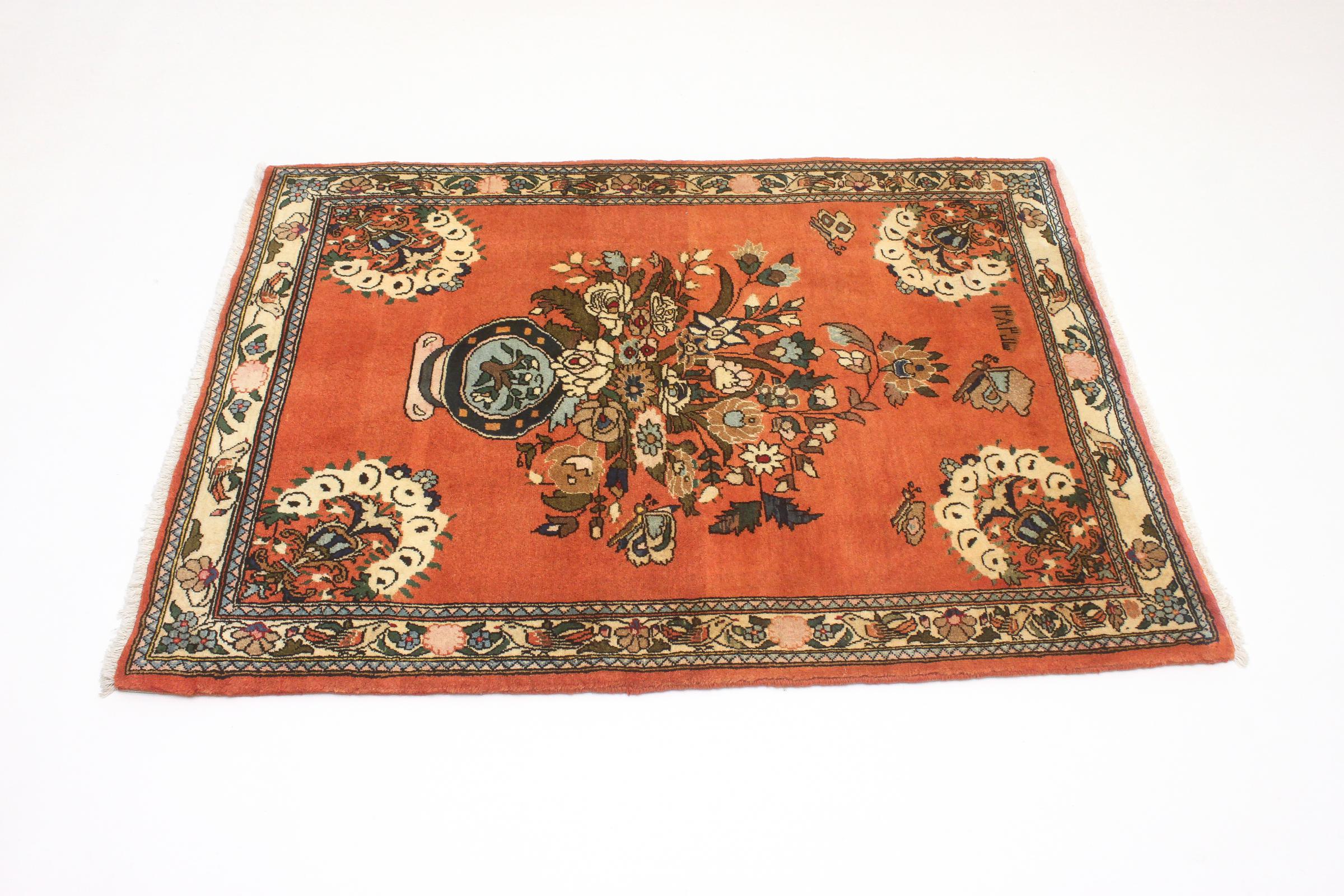 Tæppe-nr.: 79586004662620 Størrelse: 139x101 cm Tykkelse: ca. 12 mm Knuder: 160 000 - 200 000 / m² Forarbejdelse: Knyttet i hånden Luv: Håndspunden uld Kæde: Bomuld Oprindelse: Persien / Iran Alder: Ny Vægt: ca. 5 kg Også kendt som Arak , Sarough, Sarouk, Saruk, Saroq, Sultanabad Antal på lager: Unik - Kun 1 tilbage på lager