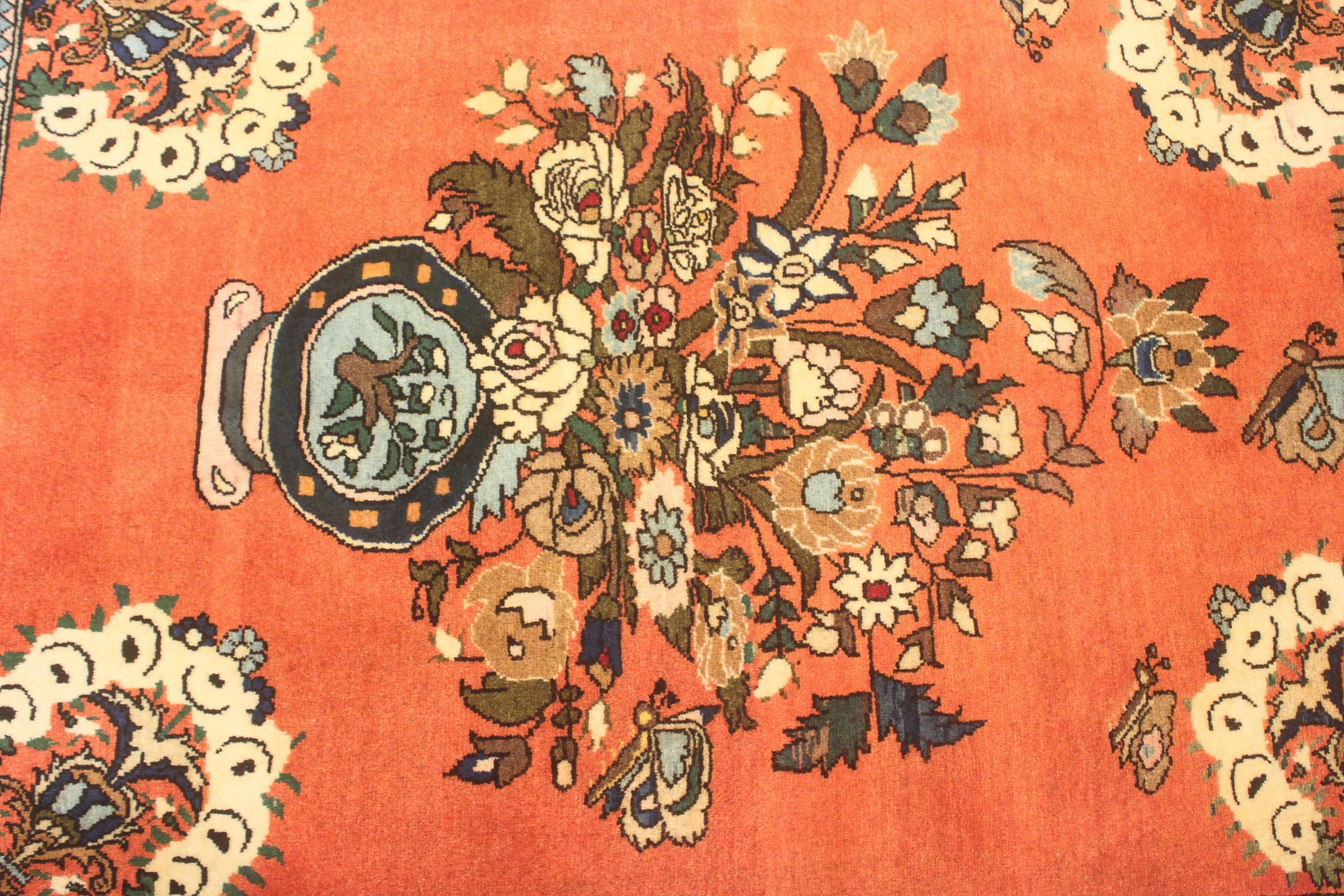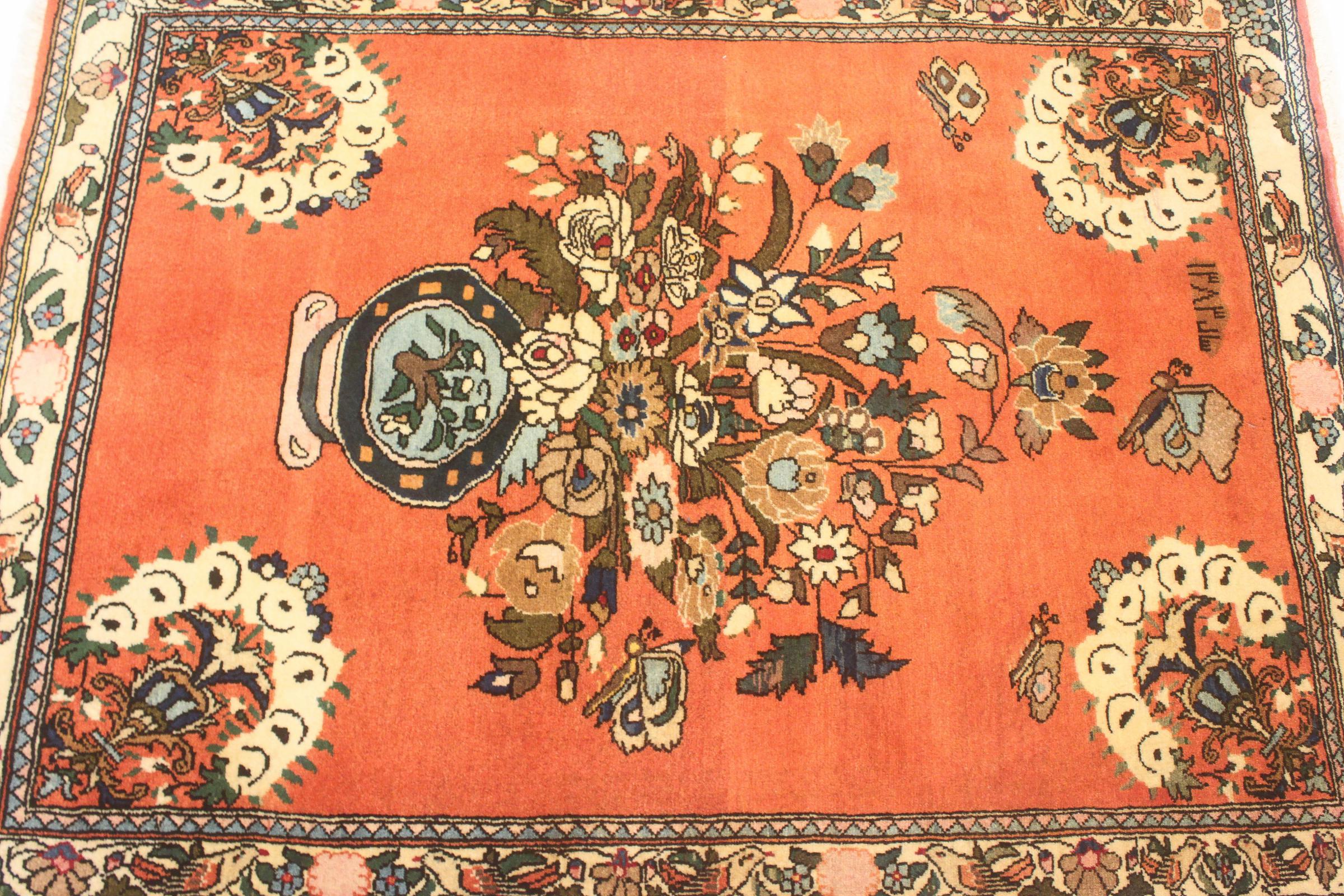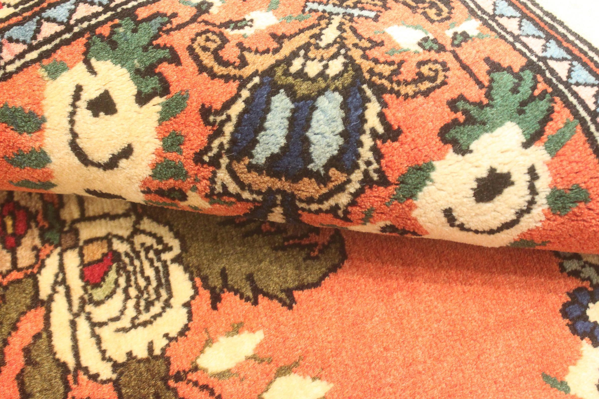 Dette persisk tæppe blev knyttet i hånden i Sarouk. Regionen står for tunge tæpper, som er af meget høj kvalitet. Takket være den smukke mønster passer det med sikkerhed i mange af dine værelser.