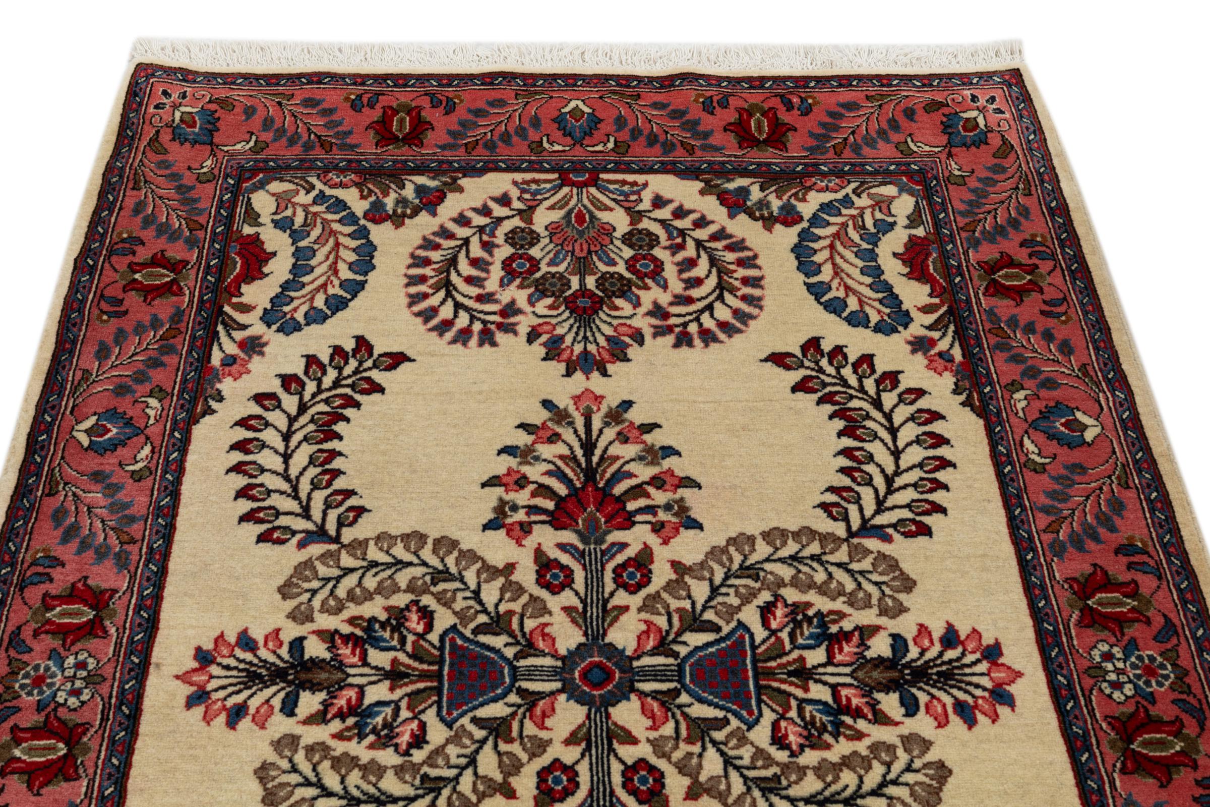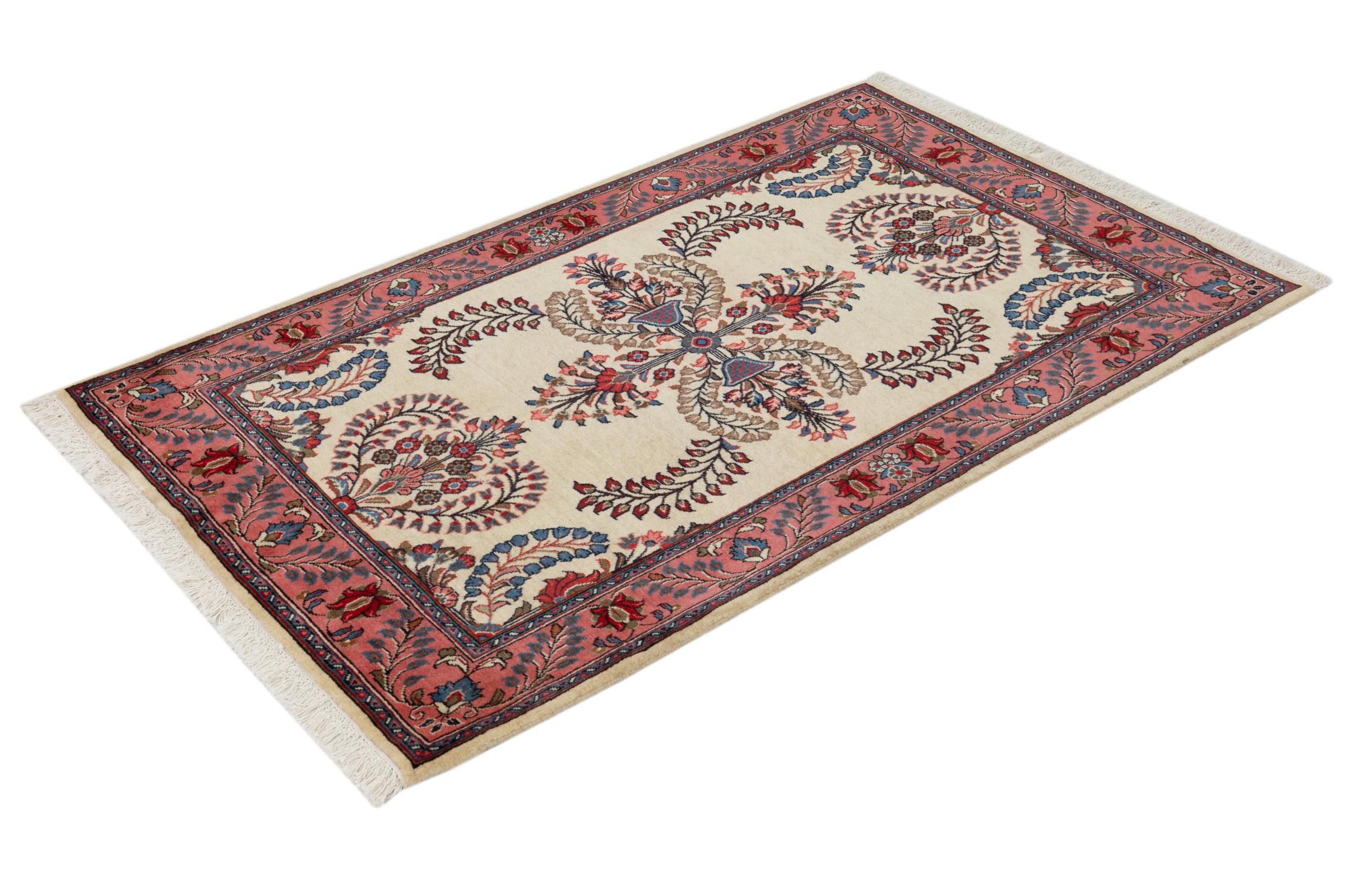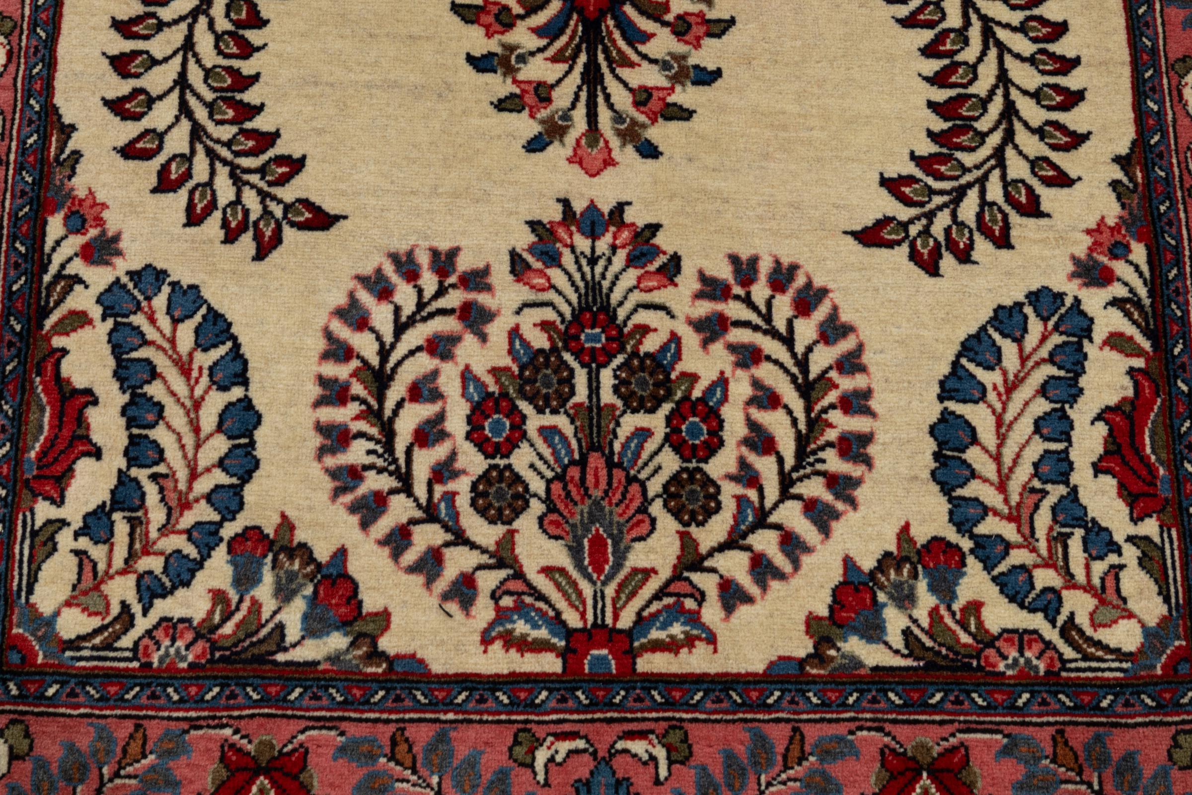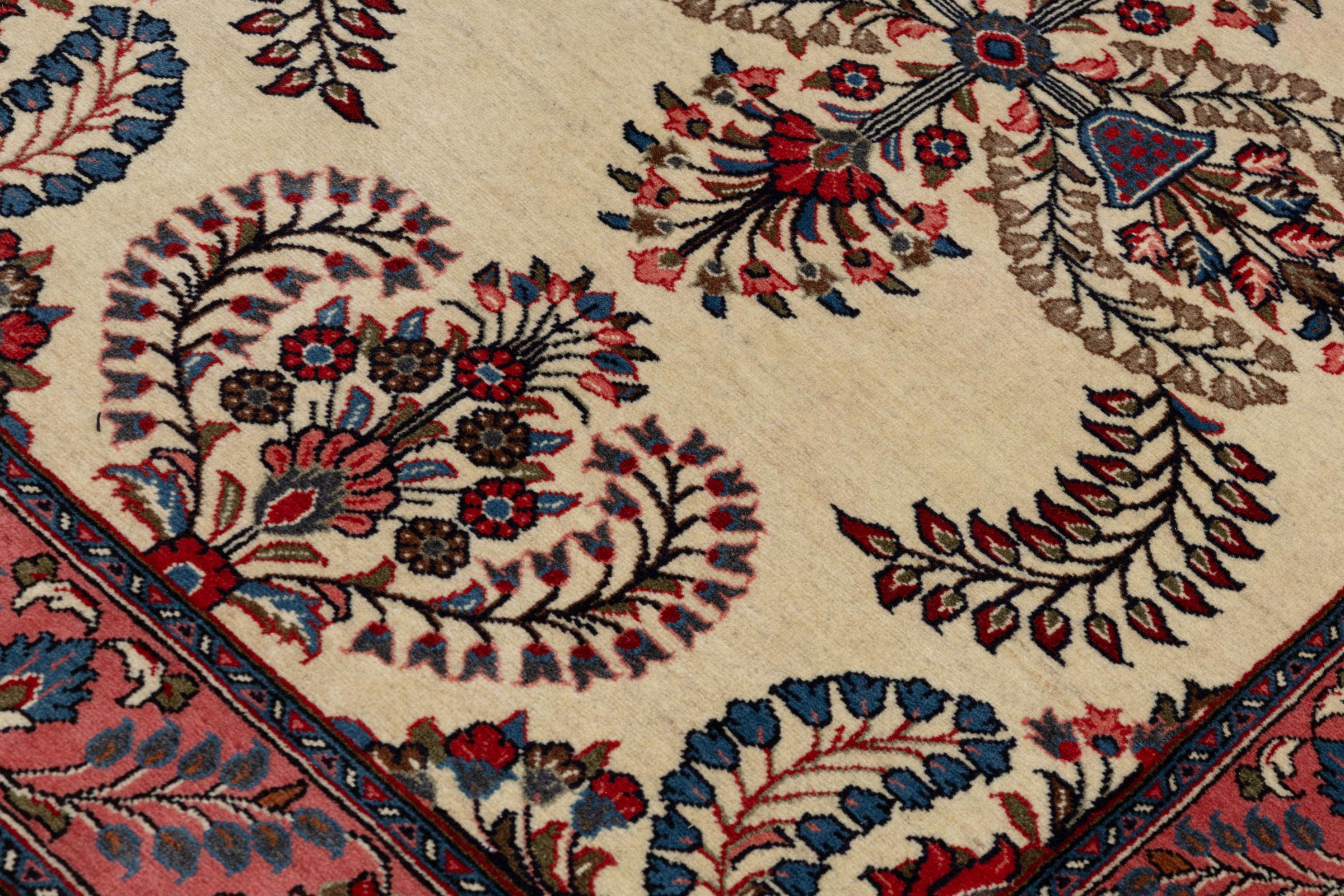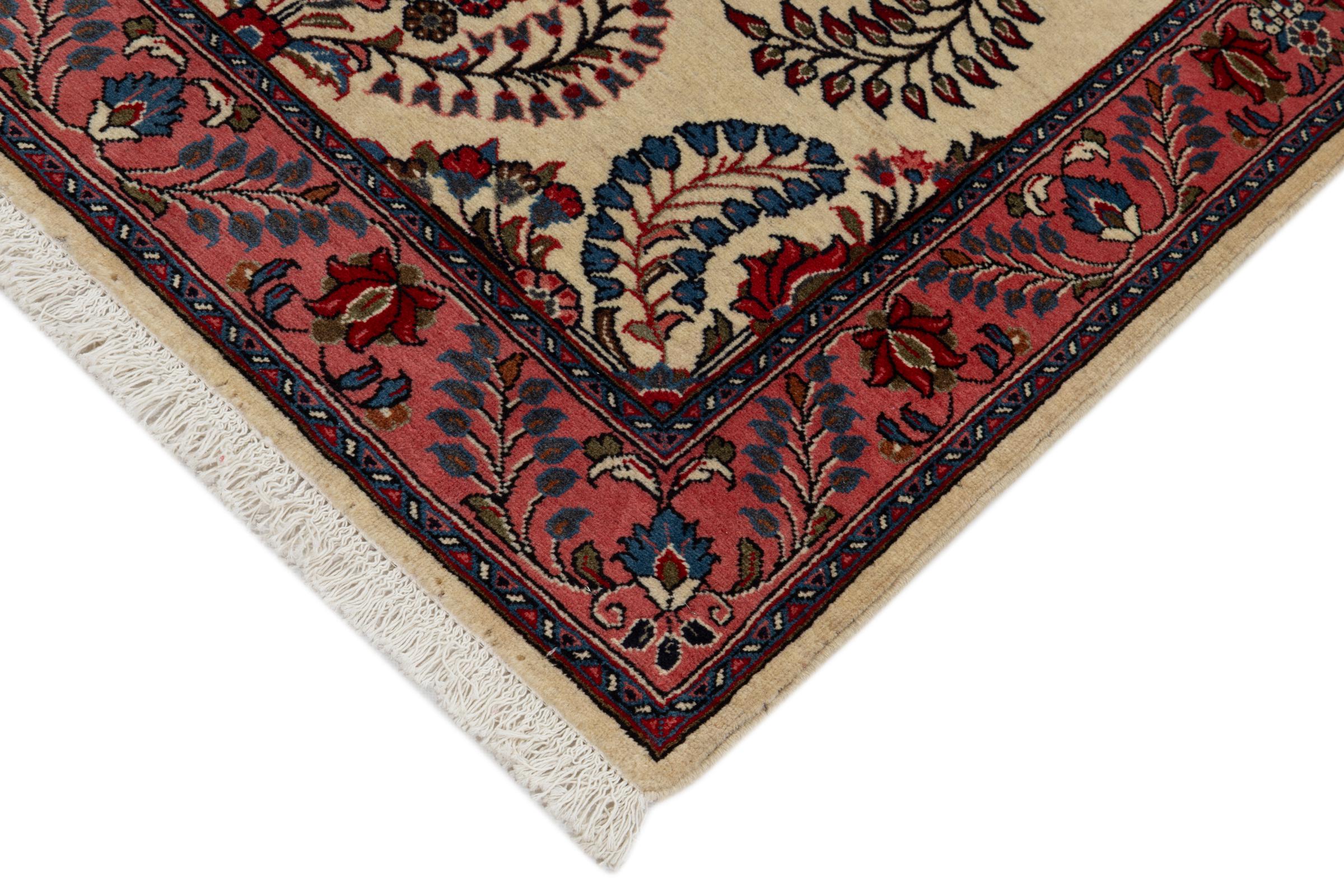 Dette persisk tæppe blev knyttet i hånden i Sarouk. Regionen står for tunge tæpper, som er af meget høj kvalitet. Takket være den smukke mønster passer det med sikkerhed i mange af dine værelser.