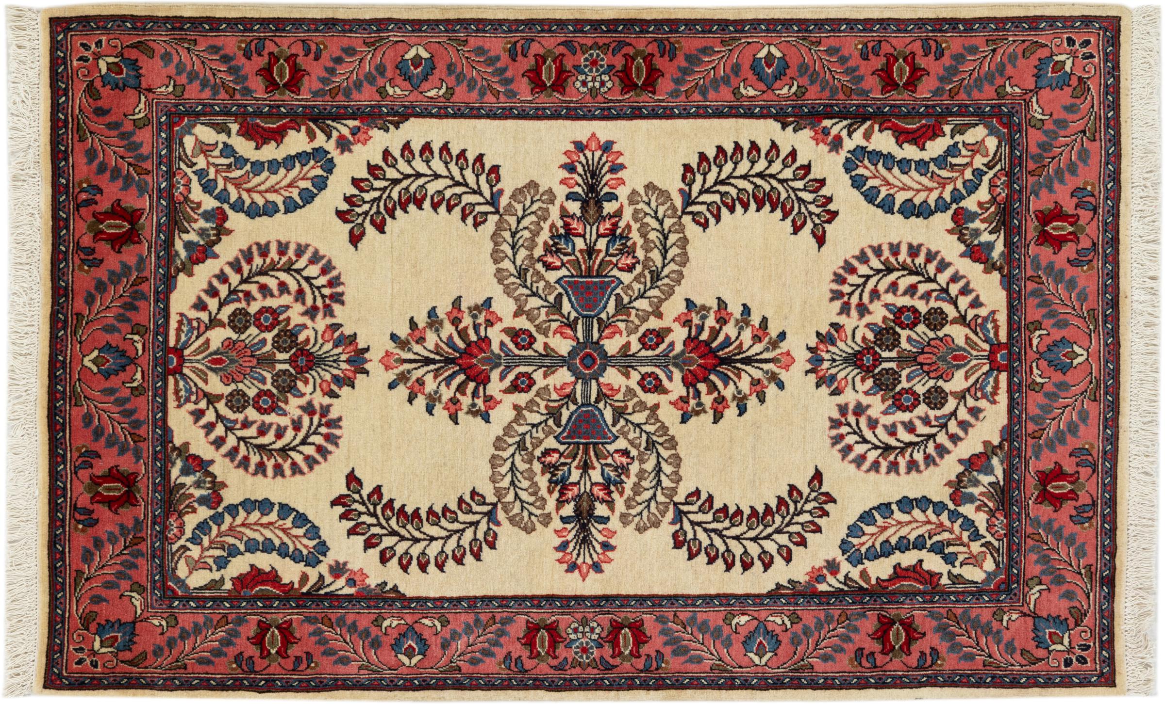 Tæppe-nr.: 29697700853515 Størrelse: 156x98 cm Tykkelse: ca. 12 mm Knuder: 200 000 - 250 000 / m² Forarbejdelse: Knyttet i hånden Luv: Uld Kæde: Bomuld Oprindelse: Persien / Iran Alder: ca. 30-50 år (ny) Vægt: ca. 5 kg Også kendt som Arak , Sarough, Sarouk, Saruk, Saroq, Sultanabad Antal på lager: Unik - Kun 1 tilbage på lager