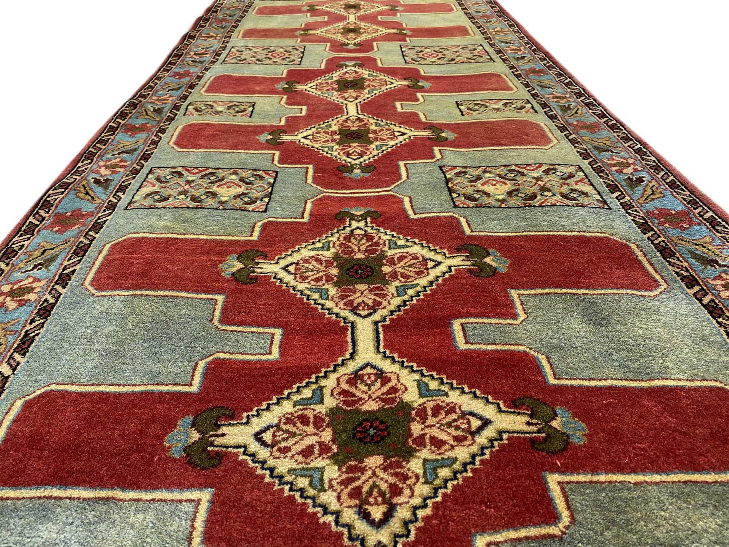 Denne Senneh tæppe blev fremstillet i provinsen Kurdistan i det vestlige Iran, efter gammel tradition. Dens robuste grundlæggende struktur er velegnet til stærkt trafikerede områder og muliggør langt nydelse.