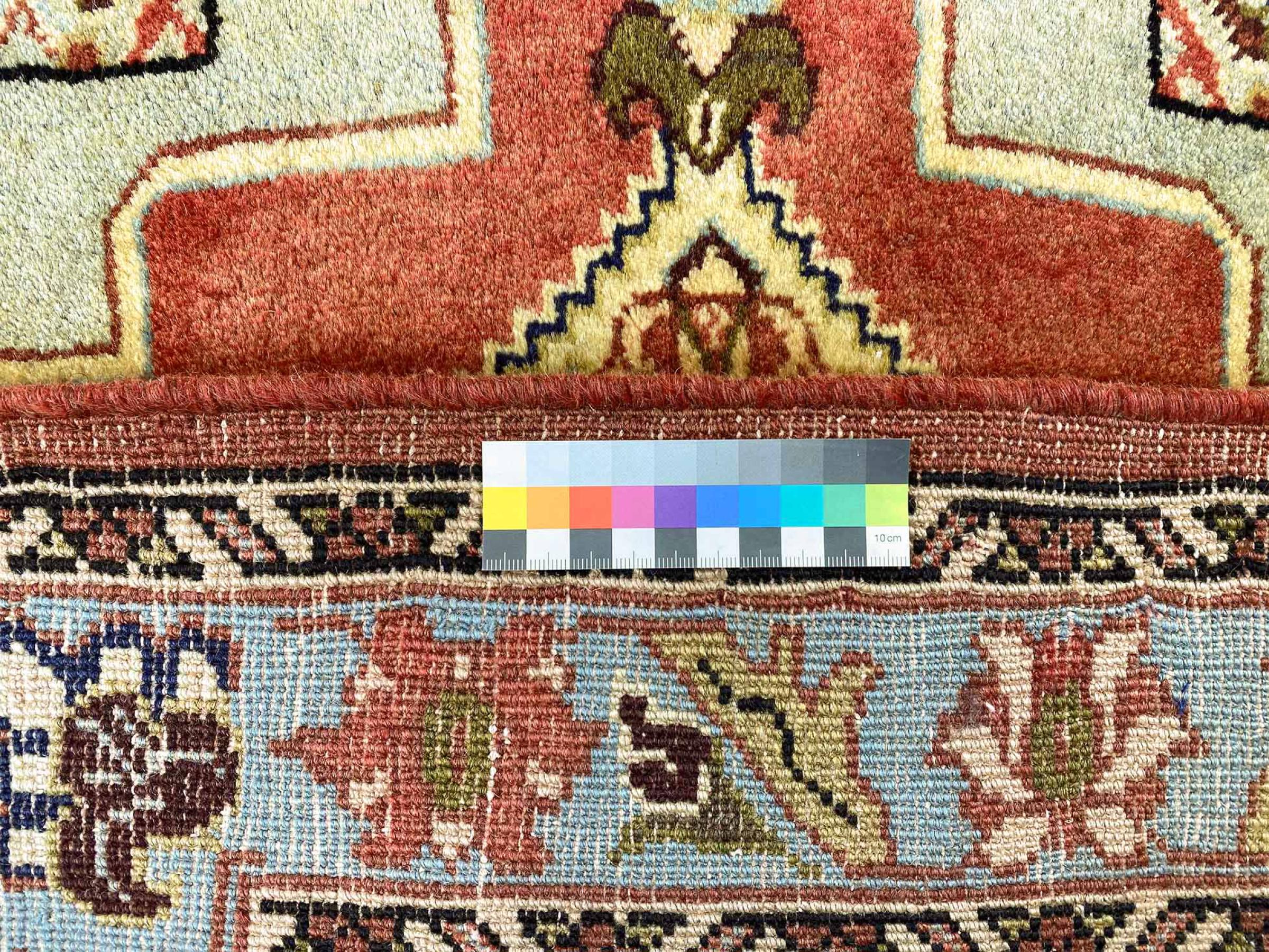 Dette tæppe består af håndspundet fåruld af højeste kvalitet. Især i Iran (tidligere Persien), Afghanistan og Pakistan spindes uld med hånden, før tæppet faktisk knuses. Uld har bevist sig som et naturligt og ekstremt slidstærkt materiale gennem århundreder. Det har blandt andet snavsafvisende og varmeisolerende egenskaber. Samtidig er uld uforlignelig blød og bringer en naturlig glans.