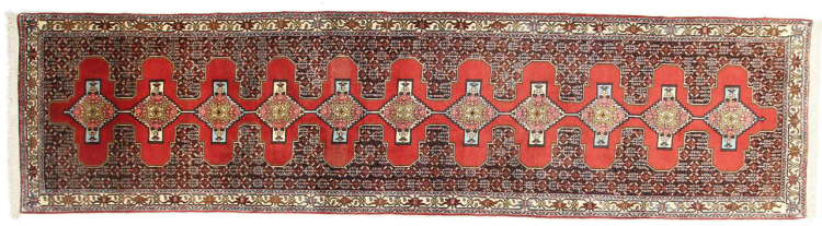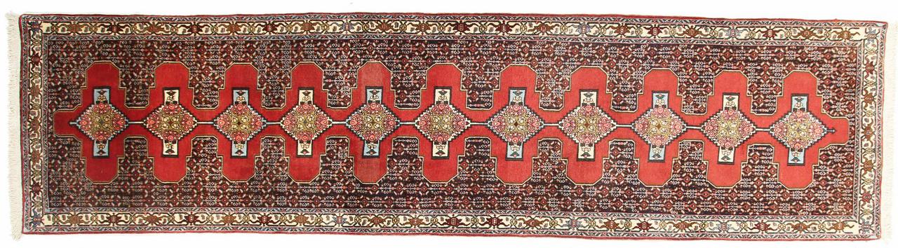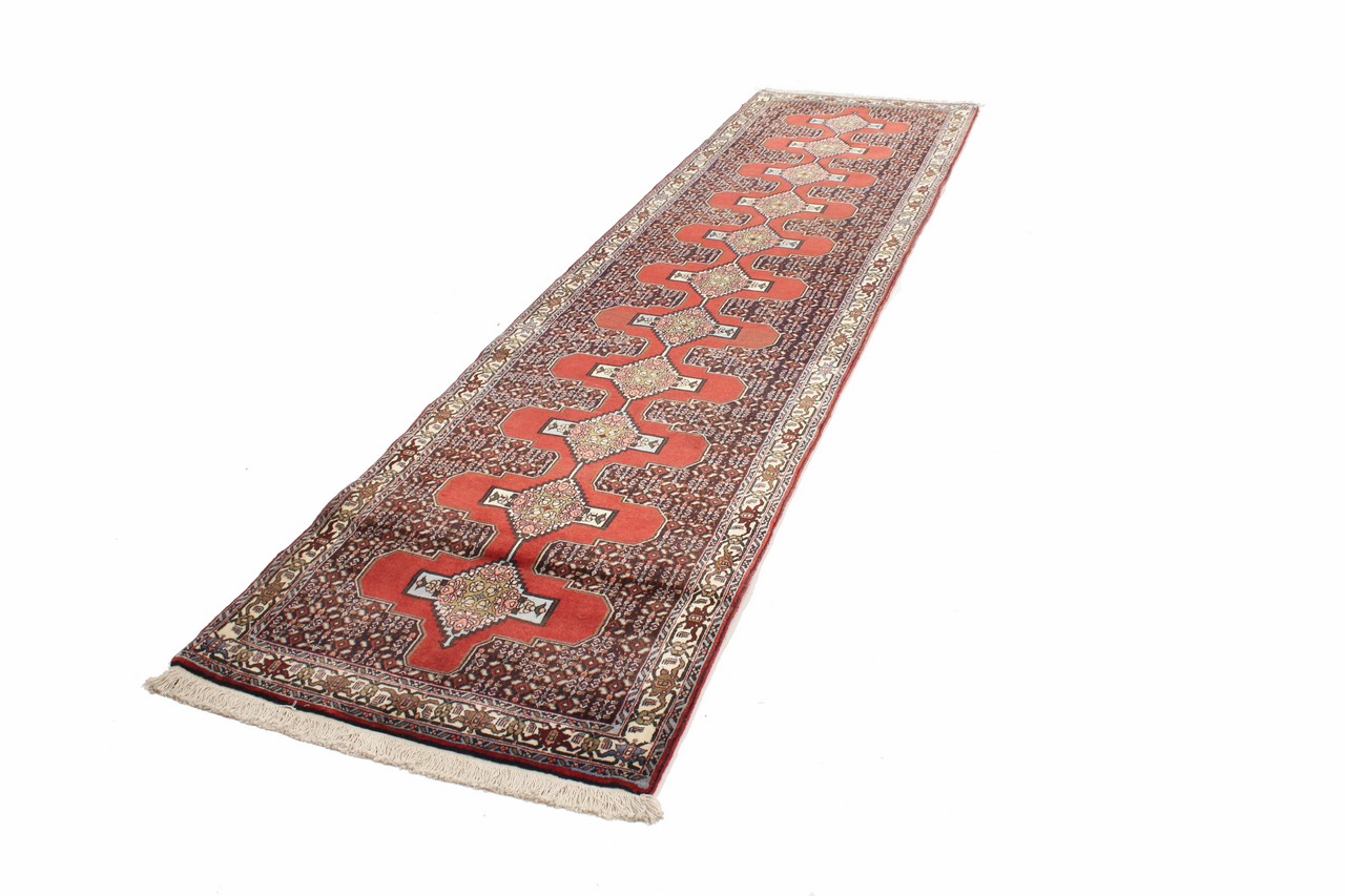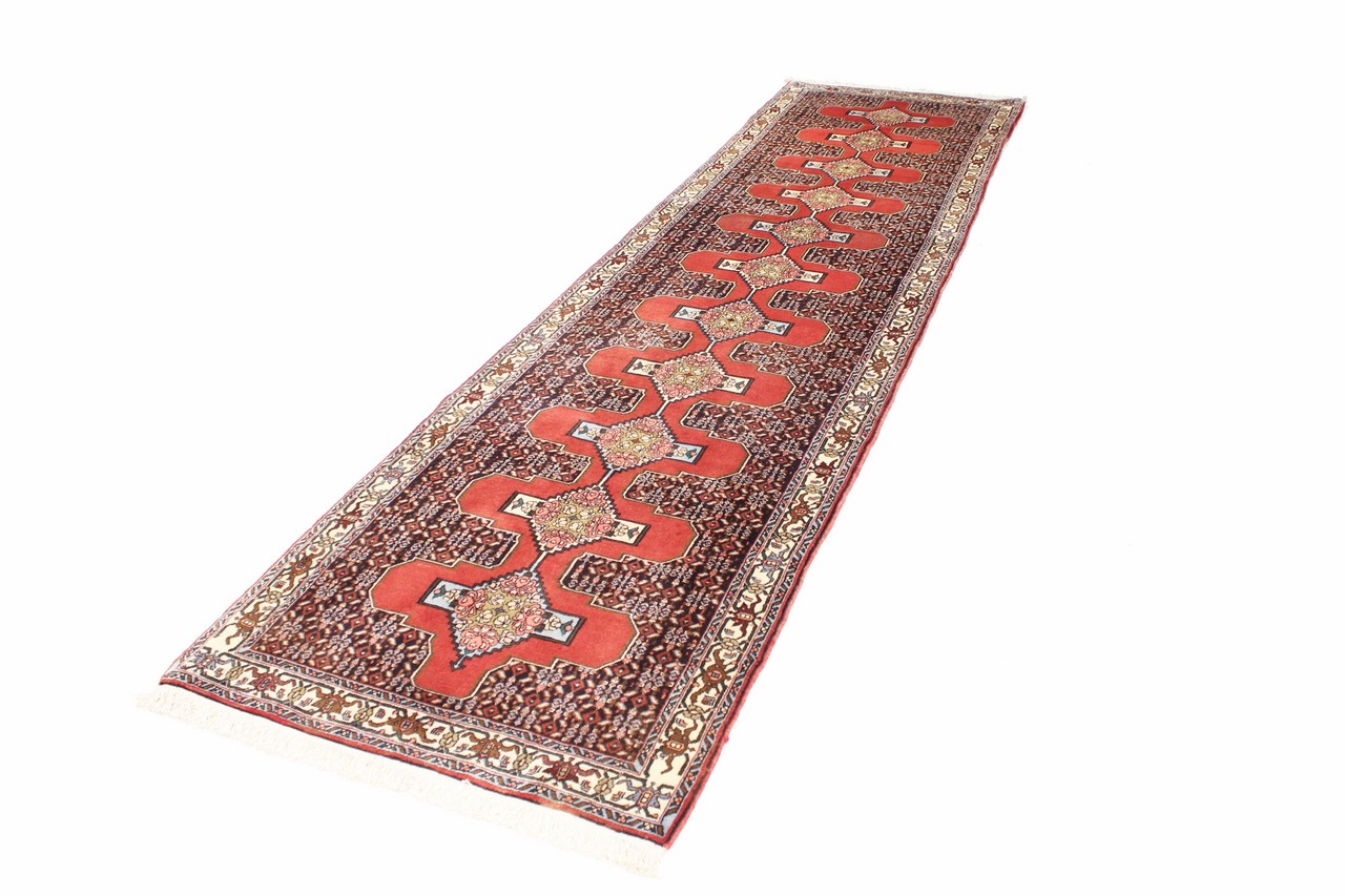 Tæppe-nr.: 79440016317 Størrelse: 370x94 cm Tykkelse: ca. 12 mm Knuder: 160 000 - 200 000 / m² Forarbejdelse: Knyttet i hånden Luv: Håndspunden uld Kæde: Bomuld Oprindelse: Persien / Iran Alder: ca. 0-20 år Vægt: ca. 10 kg Antal på lager: Unik - Kun 1 tilbage på lager