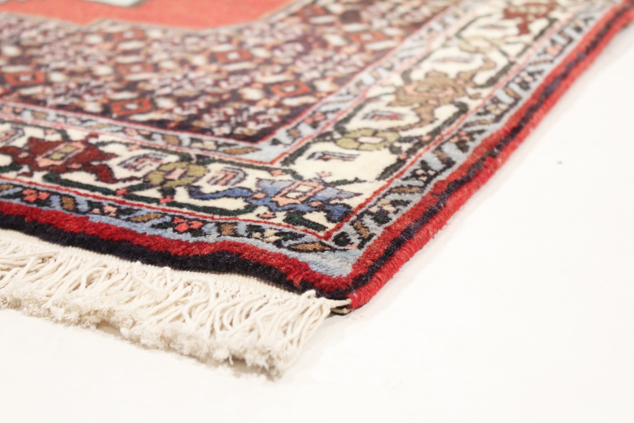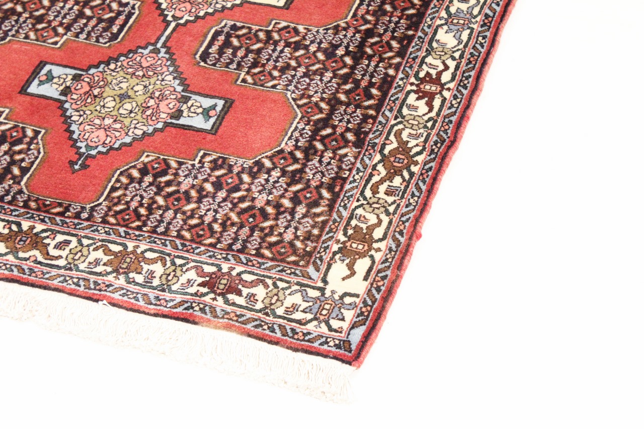Denne Senneh tæppe blev fremstillet i provinsen Kurdistan i det vestlige Iran, efter gammel tradition. Dens robuste grundlæggende struktur er velegnet til stærkt trafikerede områder og muliggør langt nydelse.