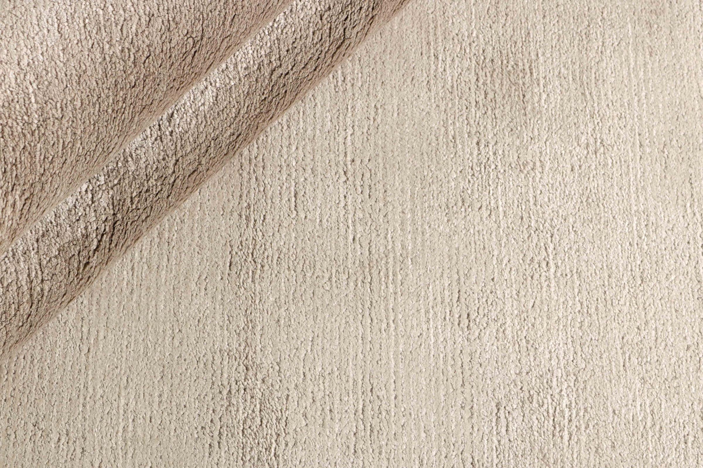 Dette originale håndknyttede orientalske tæppe i skandinavisk design lavet af ren uld / 100 % højkvalitets viskose repræsenterer på vidunderlig vis funktionalitet i en enkel, meget elegant form. Dens overflade skinner ikke kun delvist som silke, men dens farve blander sig altid glat ind i rummet.