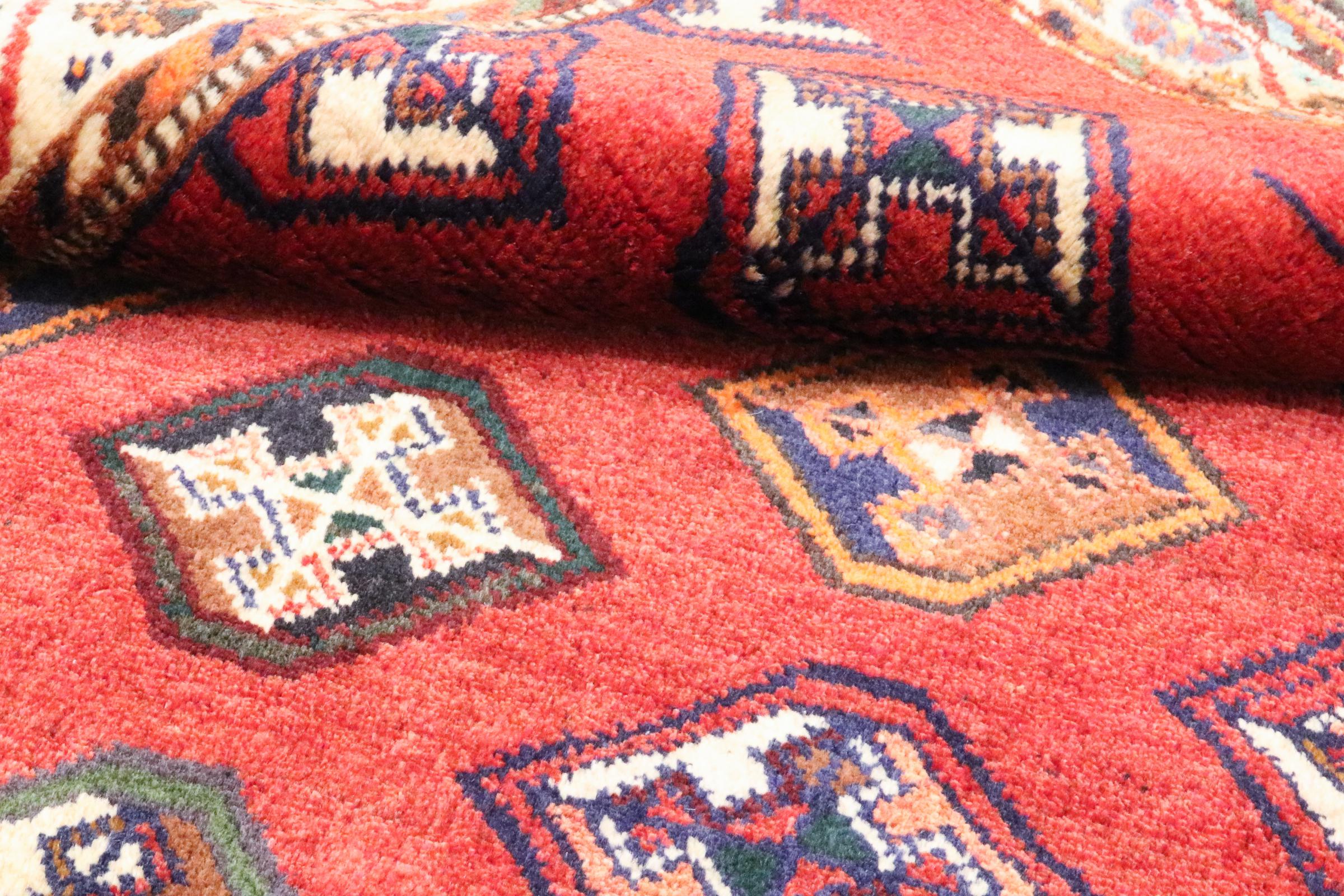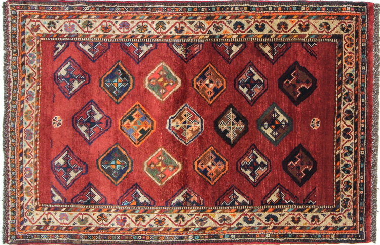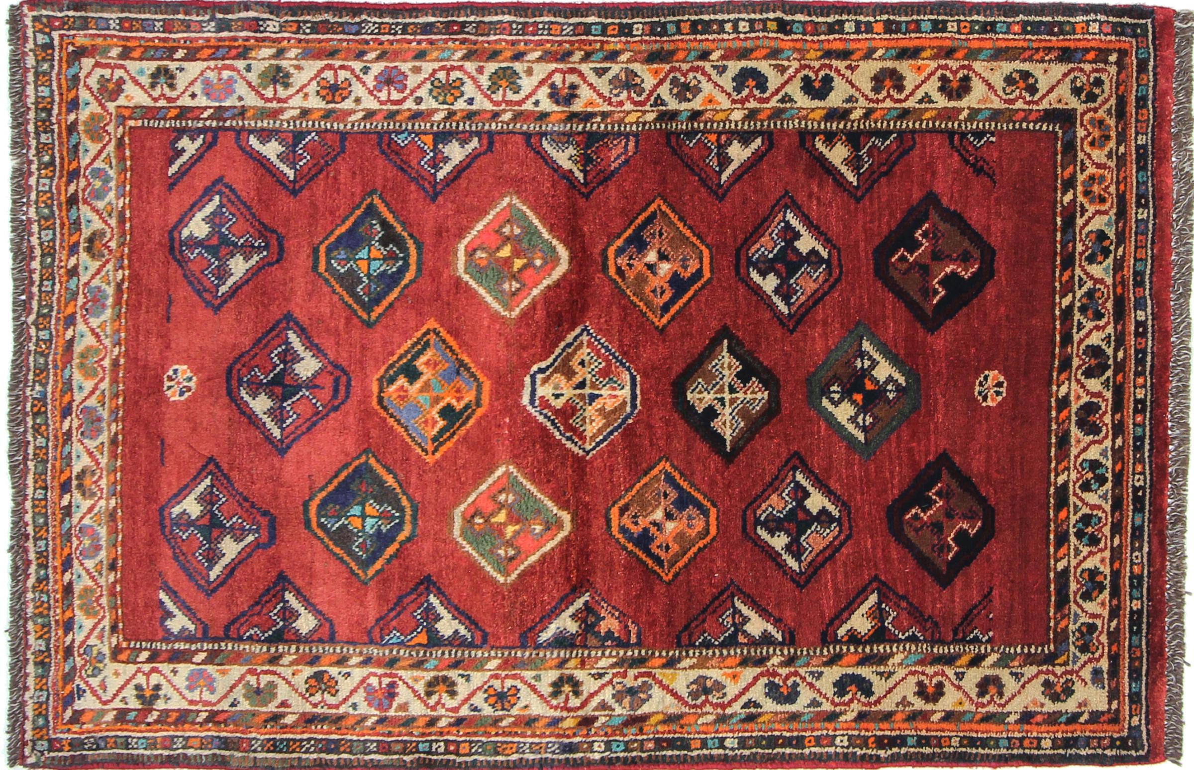 Dette Shiraz tæppe afspejler håndværk af nomader i Fars-provinsen. Bare dens enkle design, de smukke farver og den god kvalitet taler for ham, lige som dens lange liv. Dem som værdsætter persiske tæpper, vil elske en Shiraz.