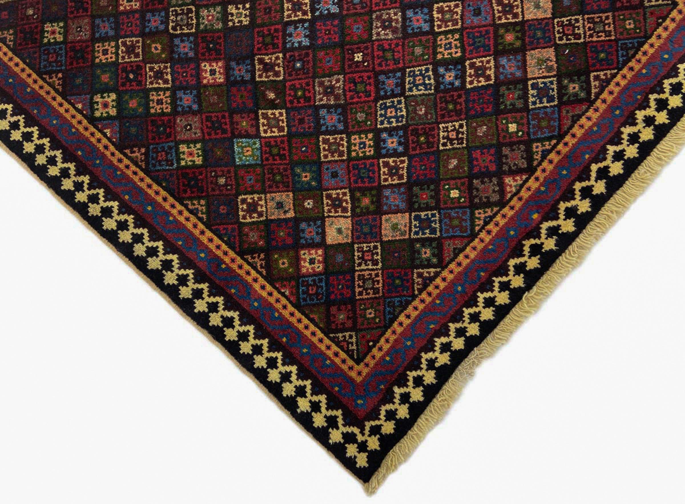 Dette tæppe hører til landsby- og nomadetæpper fra Iran, tidligere Persien. Denne type tæppe er håndknyttet i små byer og landsbyer i den gamle tradition. Nomader fremstiller også persiske tæpper under den åbne himmel. Tæpperne er knudt helt fra hovedet uden en skabelon. De er kendetegnet ved klassiske ornamenter, der er opstillet i lineære og geometriske mønstre. Takket være deres kulturelle og traditionelle oprindelse har disse tæpper en unik karakter, der udgør det gamle Persien.