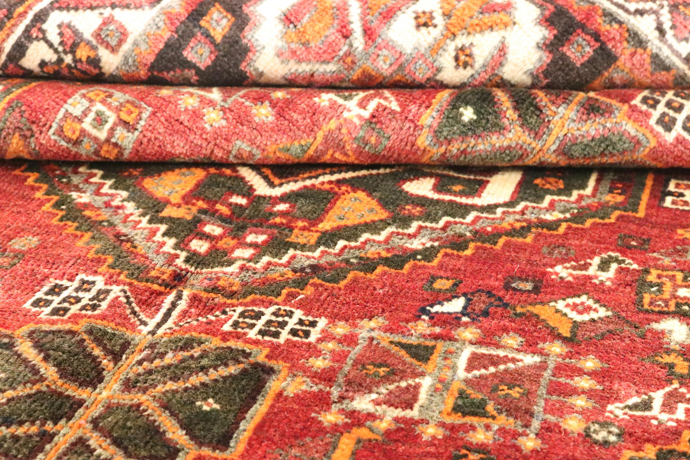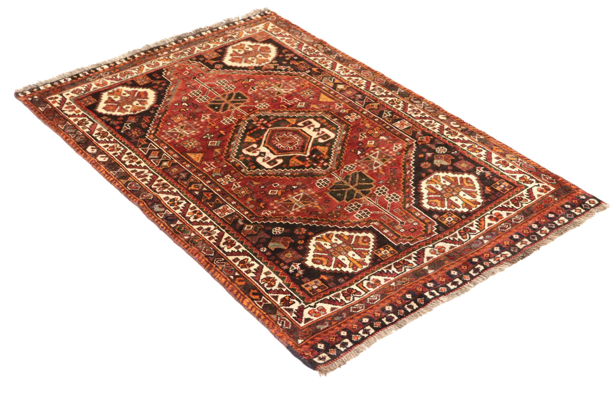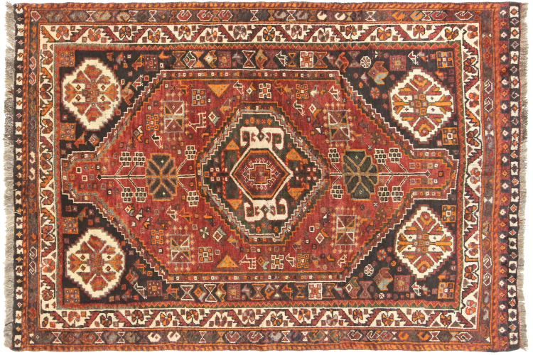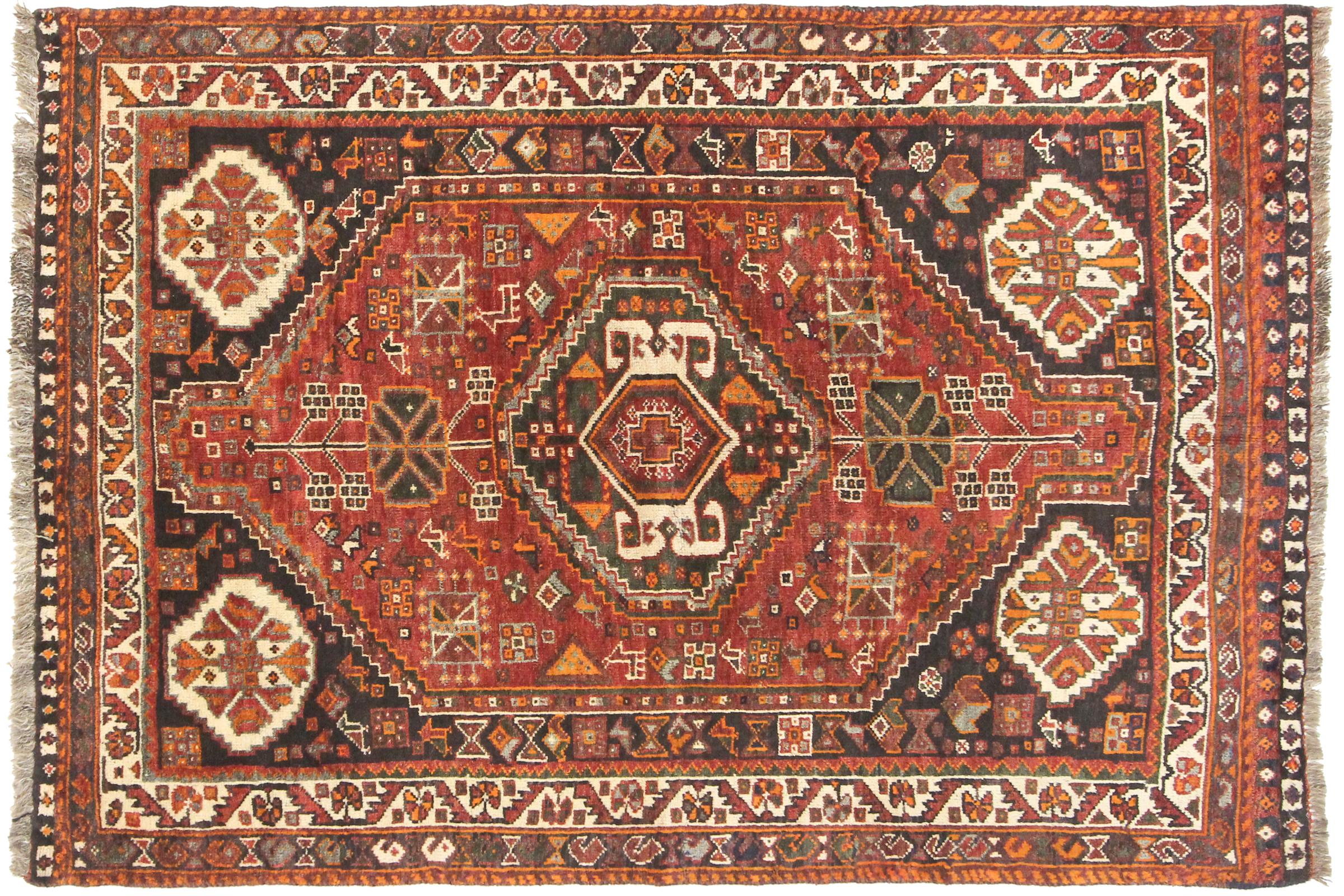 Dette Shiraz tæppe afspejler håndværk af nomader i Fars-provinsen. Bare dens enkle design, de smukke farver og den god kvalitet taler for ham, lige som dens lange liv. Dem som værdsætter persiske tæpper, vil elske en Shiraz.