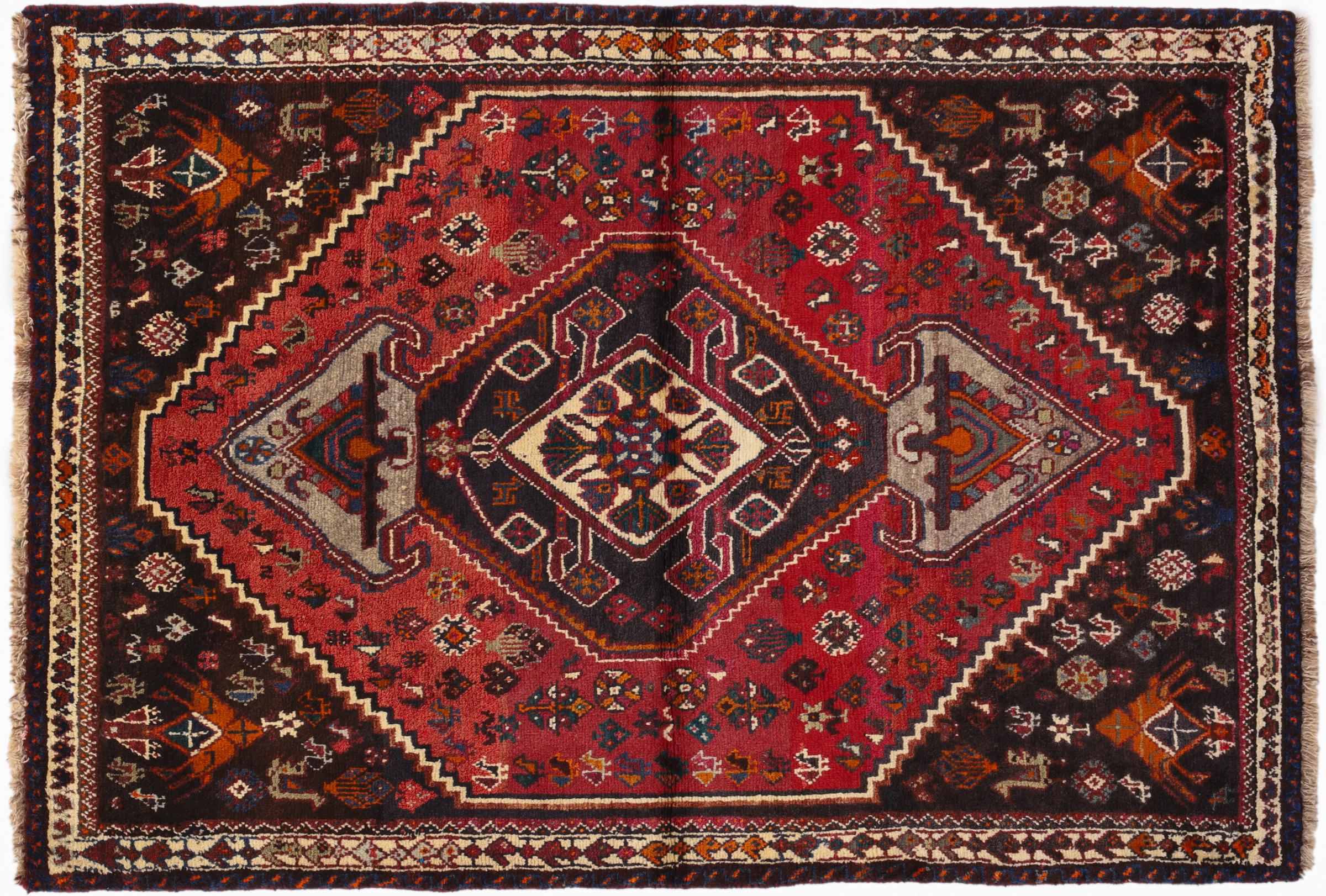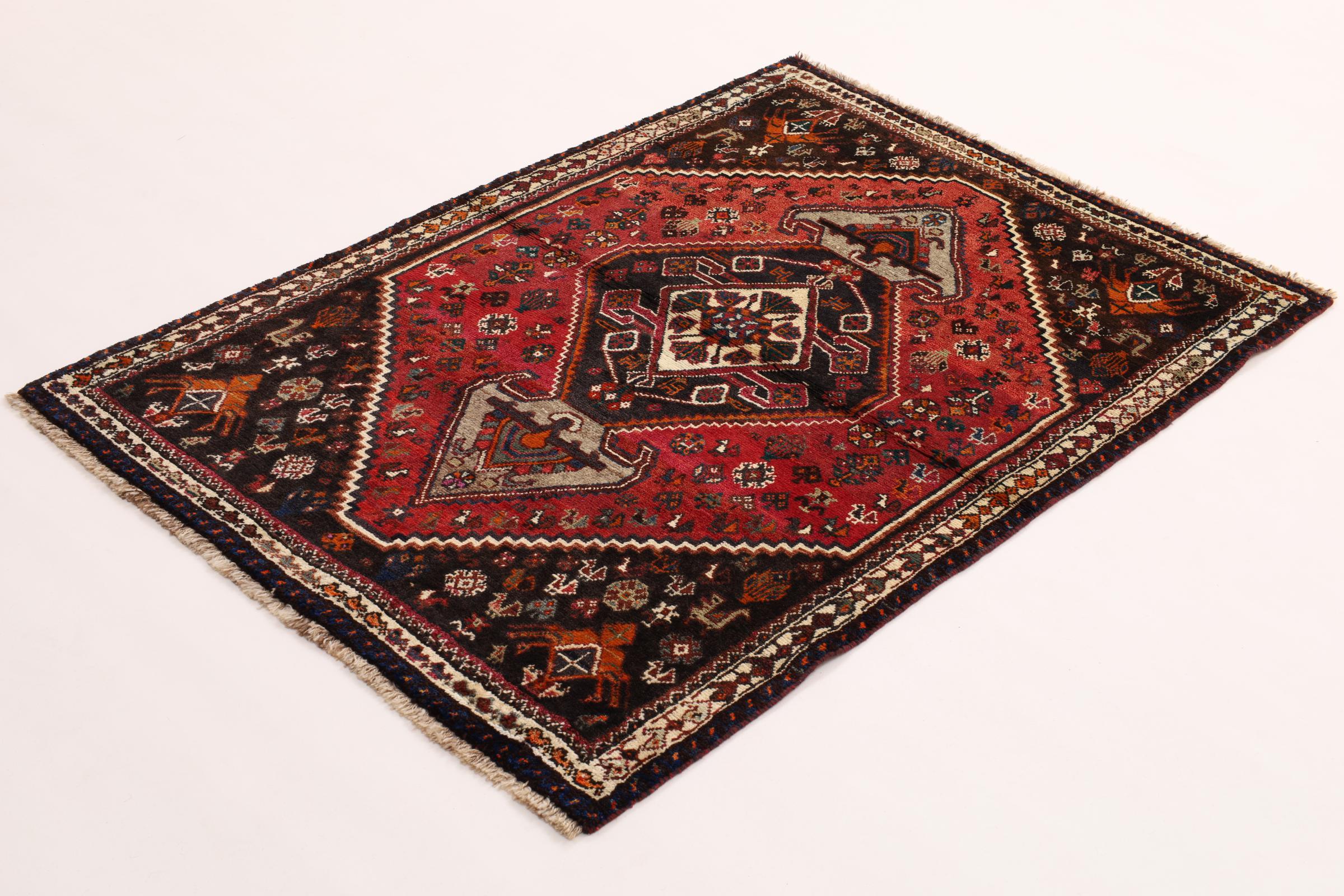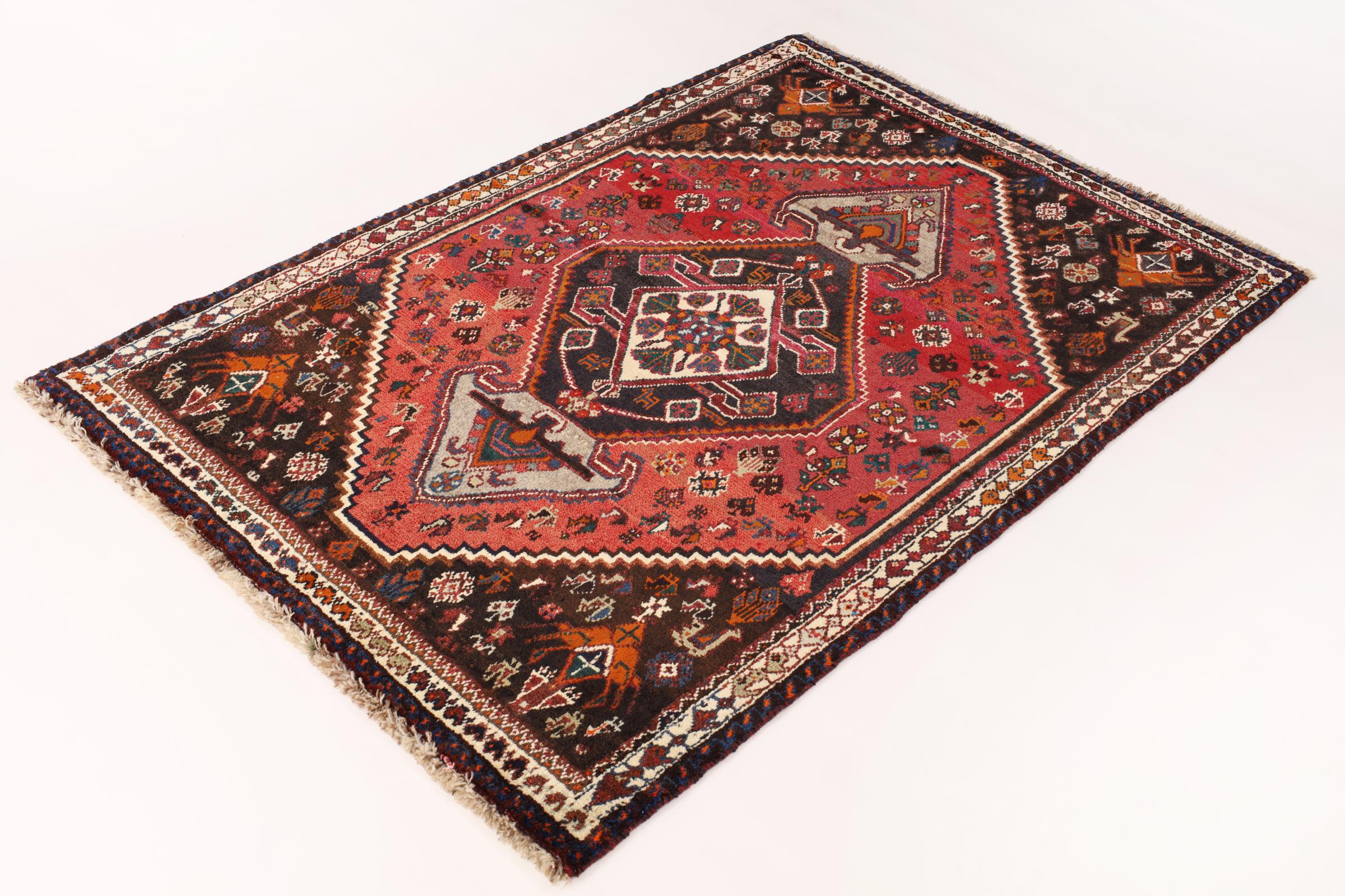 Dette Shiraz tæppe afspejler håndværk af nomader i Fars-provinsen. Bare dens enkle design, de smukke farver og den god kvalitet taler for ham, lige som dens lange liv. Dem som værdsætter persiske tæpper, vil elske en Shiraz.