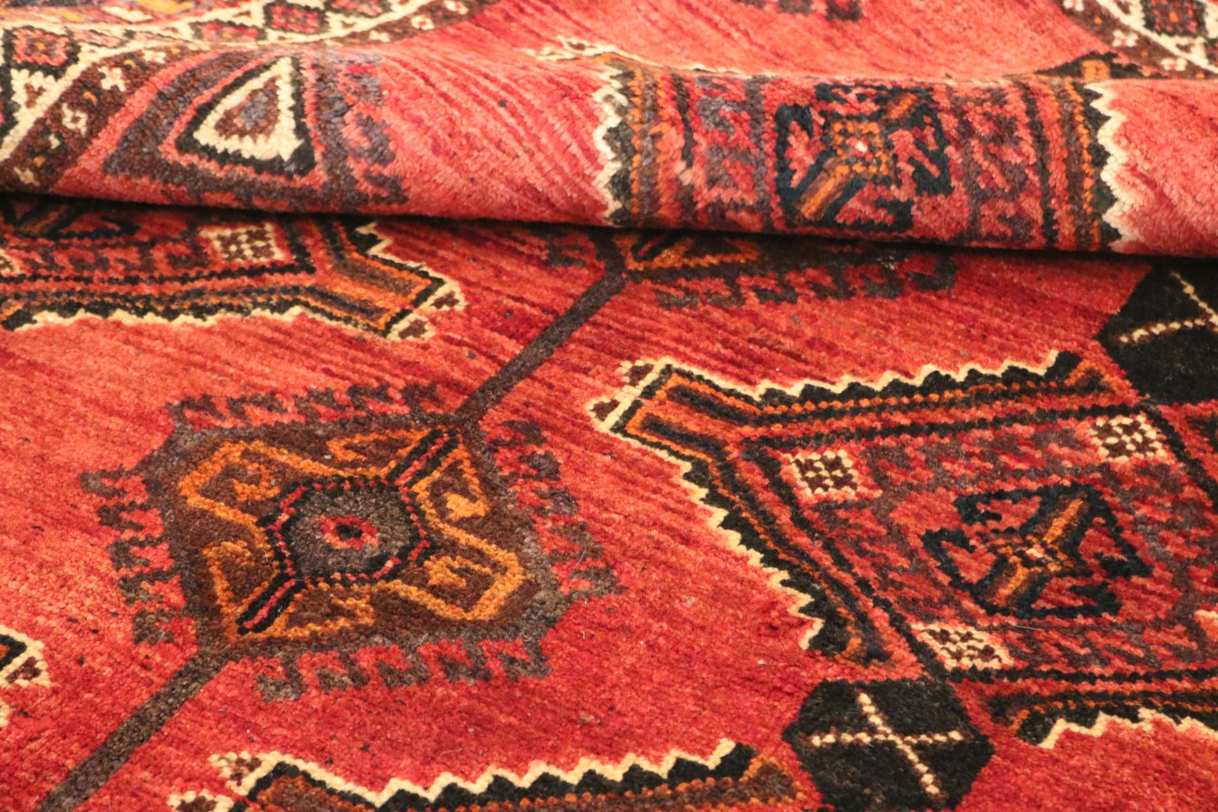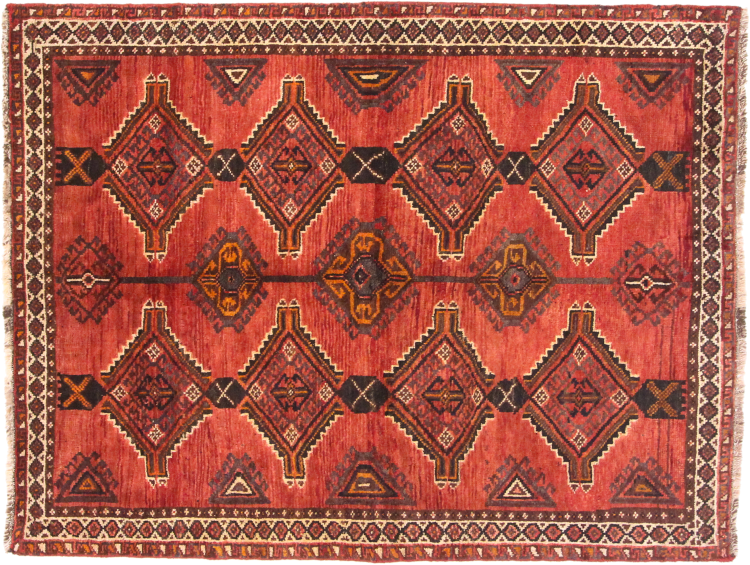 Dette Shiraz tæppe afspejler håndværk af nomader i Fars-provinsen. Bare dens enkle design, de smukke farver og den god kvalitet taler for ham, lige som dens lange liv. Dem som værdsætter persiske tæpper, vil elske en Shiraz.
