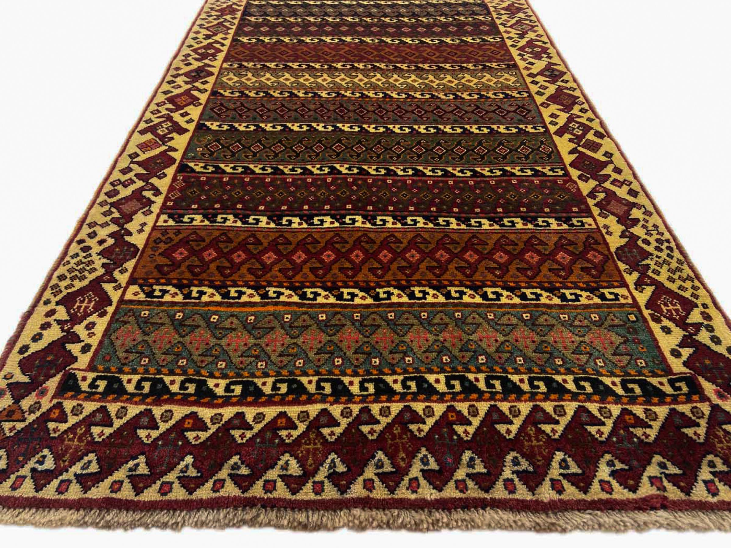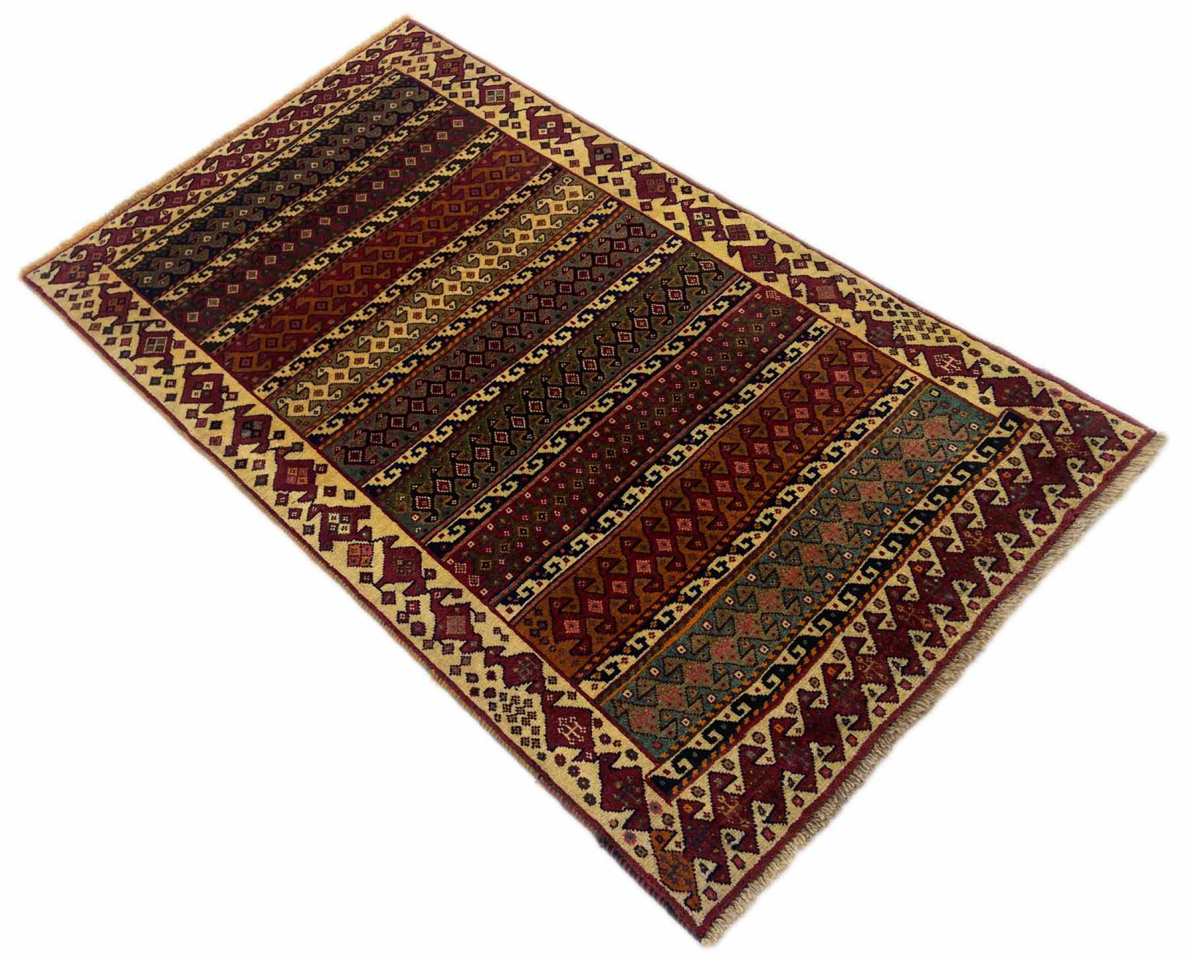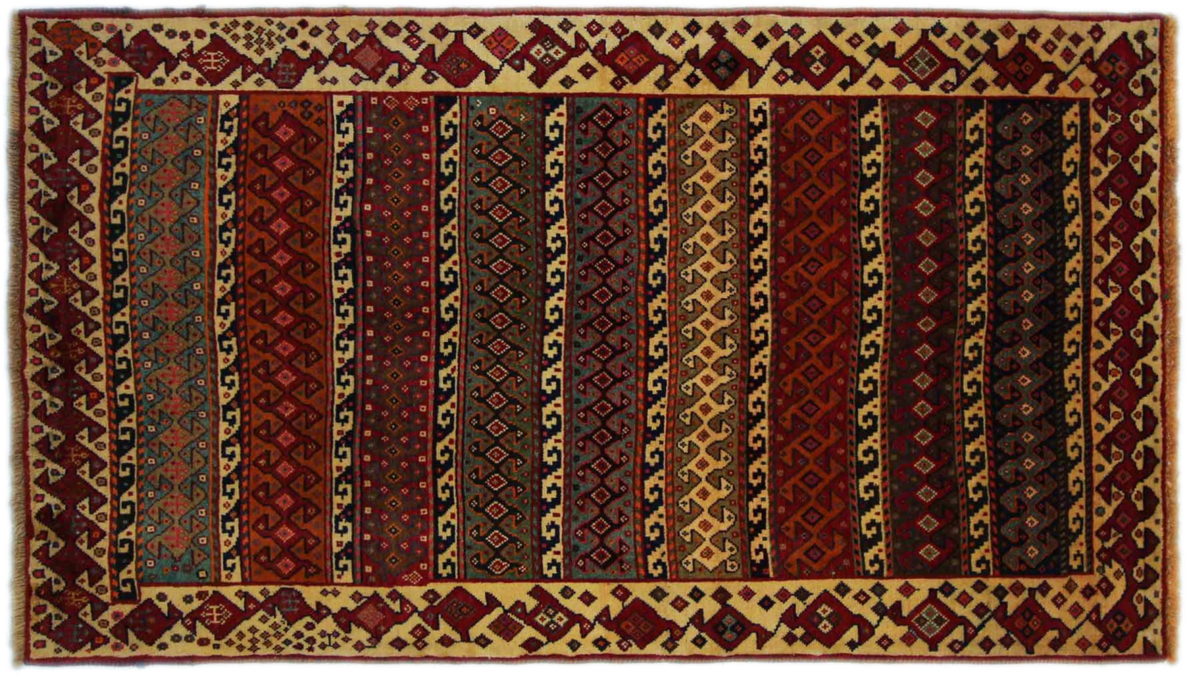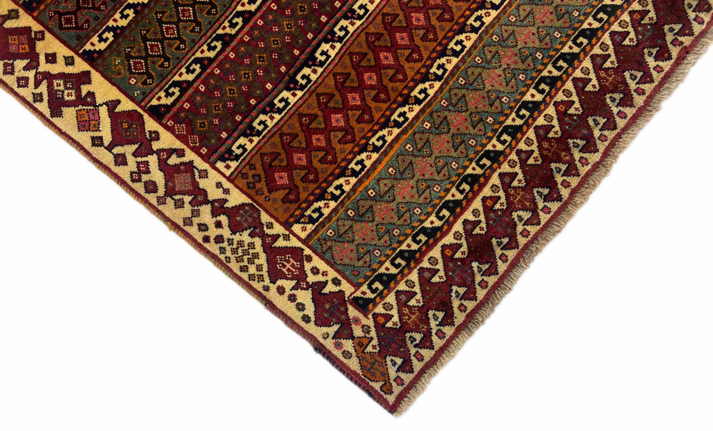 Dette tæppe hører til landsby- og nomadetæpper fra Iran, tidligere Persien. Denne type tæppe er håndknyttet i små byer og landsbyer i den gamle tradition. Nomader fremstiller også persiske tæpper under den åbne himmel. Tæpperne er knudt helt fra hovedet uden en skabelon. De er kendetegnet ved klassiske ornamenter, der er opstillet i lineære og geometriske mønstre. Takket være deres kulturelle og traditionelle oprindelse har disse tæpper en unik karakter, der udgør det gamle Persien.
