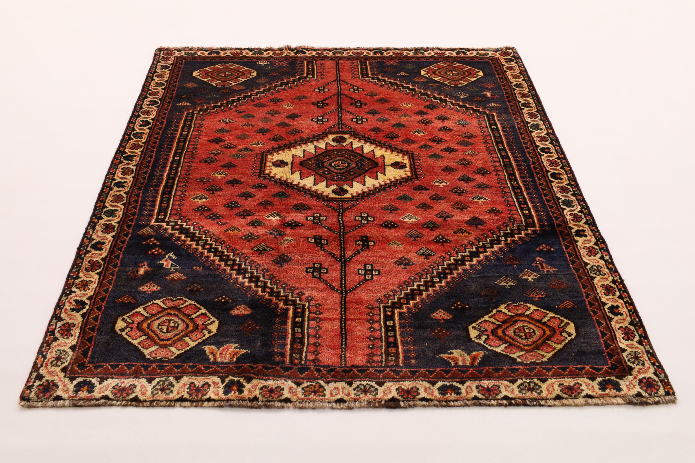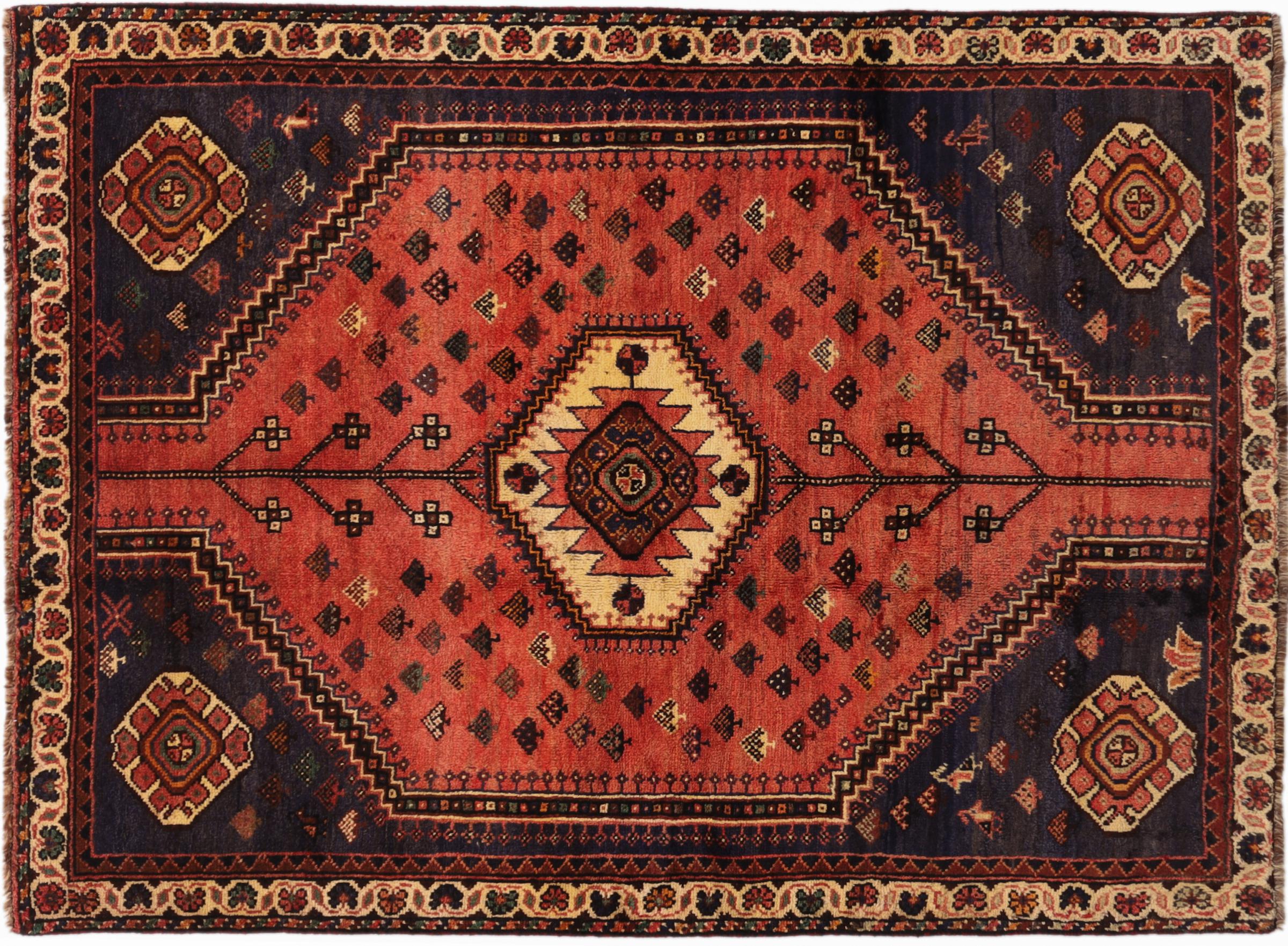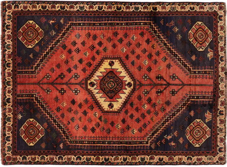 Dette Shiraz tæppe afspejler håndværk af nomader i Fars-provinsen. Bare dens enkle design, de smukke farver og den god kvalitet taler for ham, lige som dens lange liv. Dem som værdsætter persiske tæpper, vil elske en Shiraz.