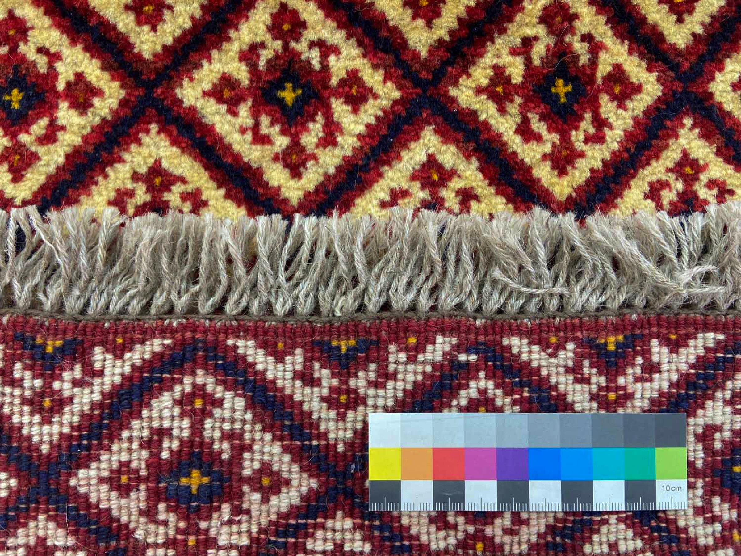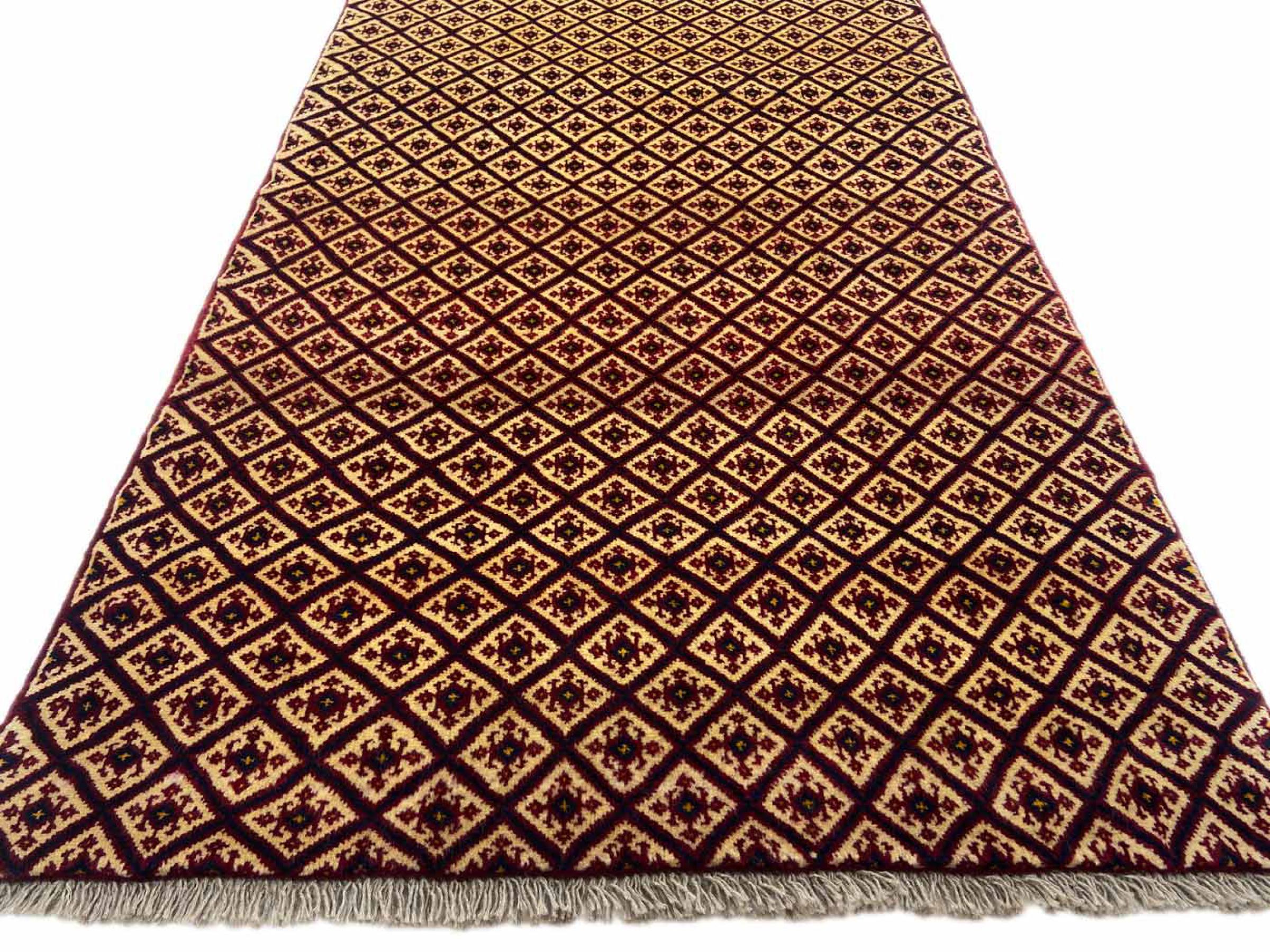 Dette tæppe består af håndspundet fåruld af højeste kvalitet. Især i Iran (tidligere Persien), Afghanistan og Pakistan spindes uld med hånden, før tæppet faktisk knuses. Uld har bevist sig som et naturligt og ekstremt slidstærkt materiale gennem århundreder. Det har blandt andet snavsafvisende og varmeisolerende egenskaber. Samtidig er uld uforlignelig blød og bringer en naturlig glans.