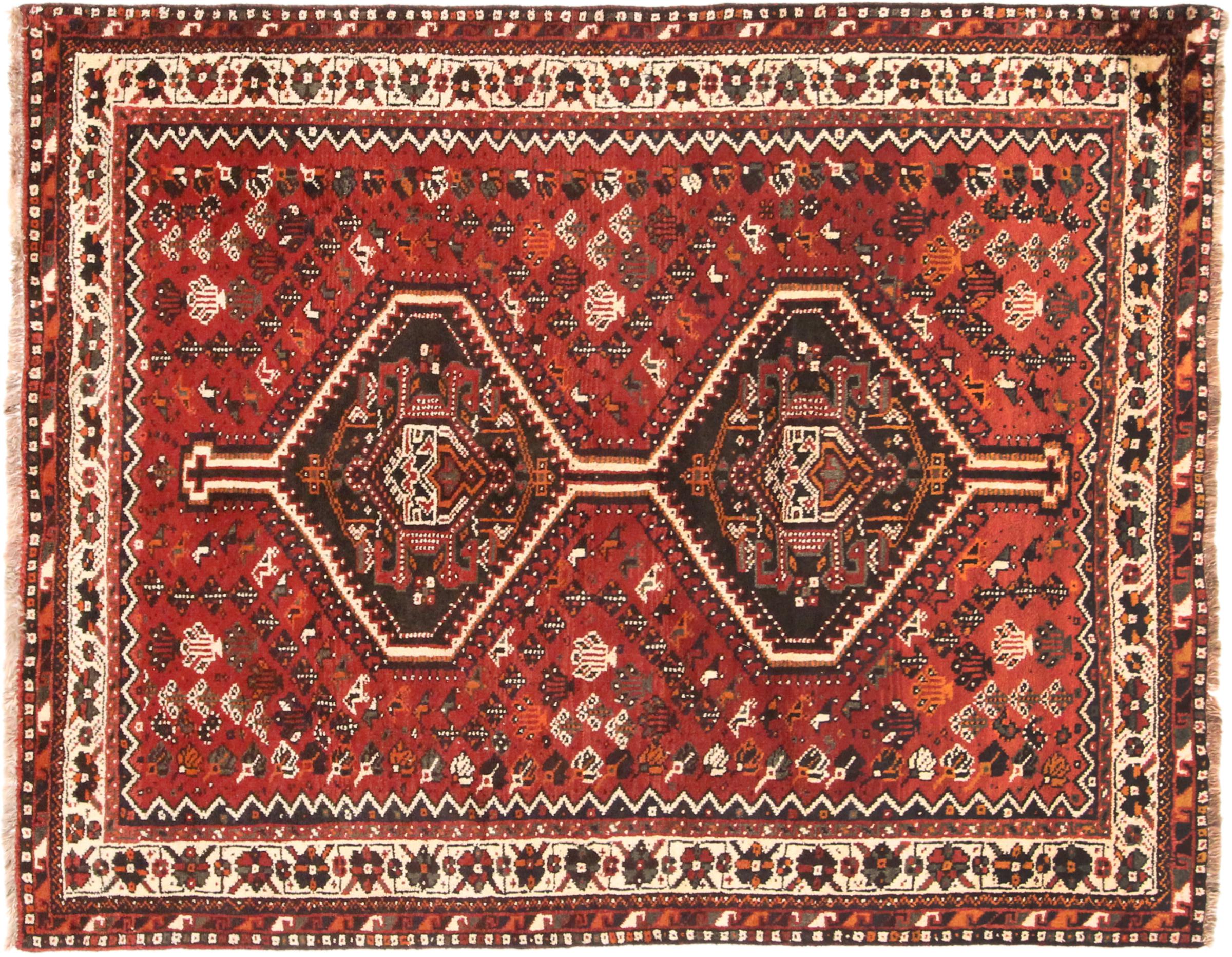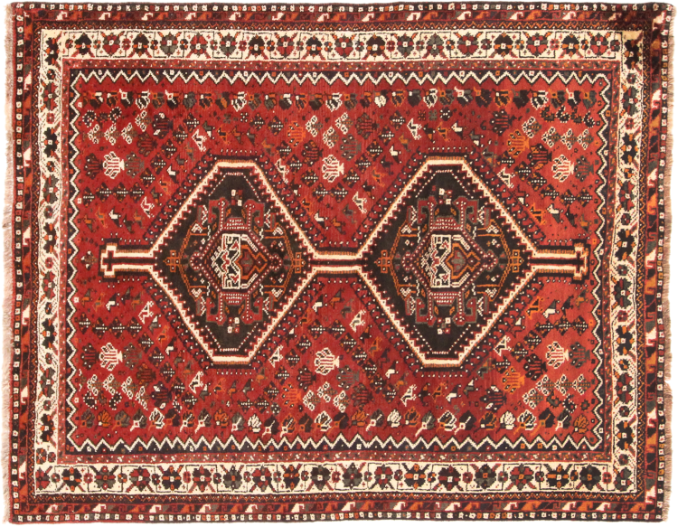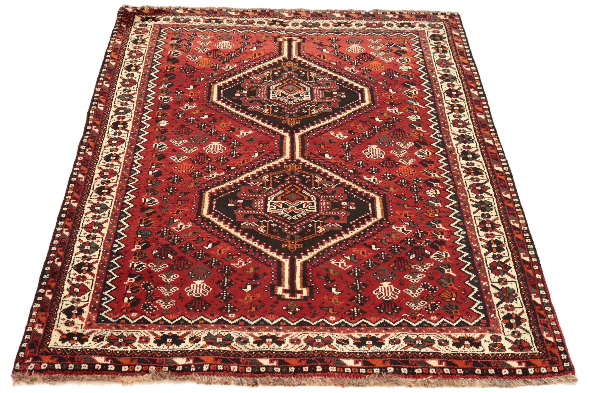 Dette Shiraz tæppe afspejler håndværk af nomader i Fars-provinsen. Bare dens enkle design, de smukke farver og den god kvalitet taler for ham, lige som dens lange liv. Dem som værdsætter persiske tæpper, vil elske en Shiraz.