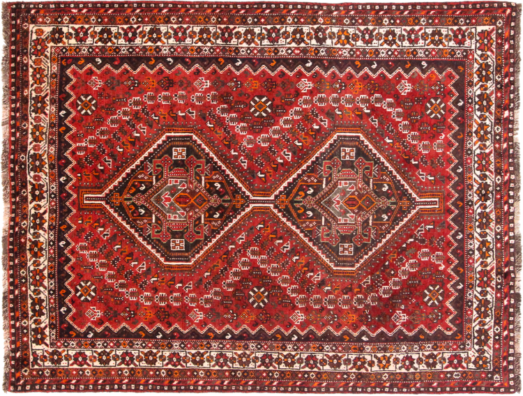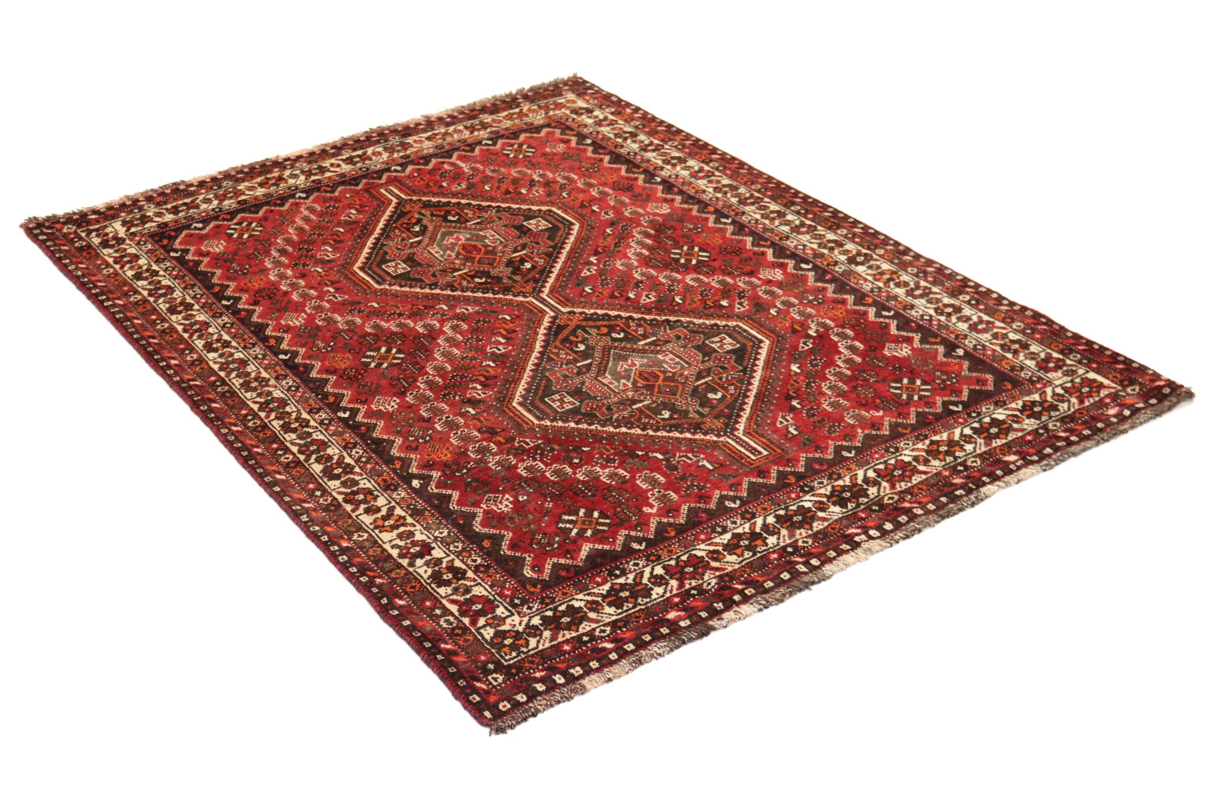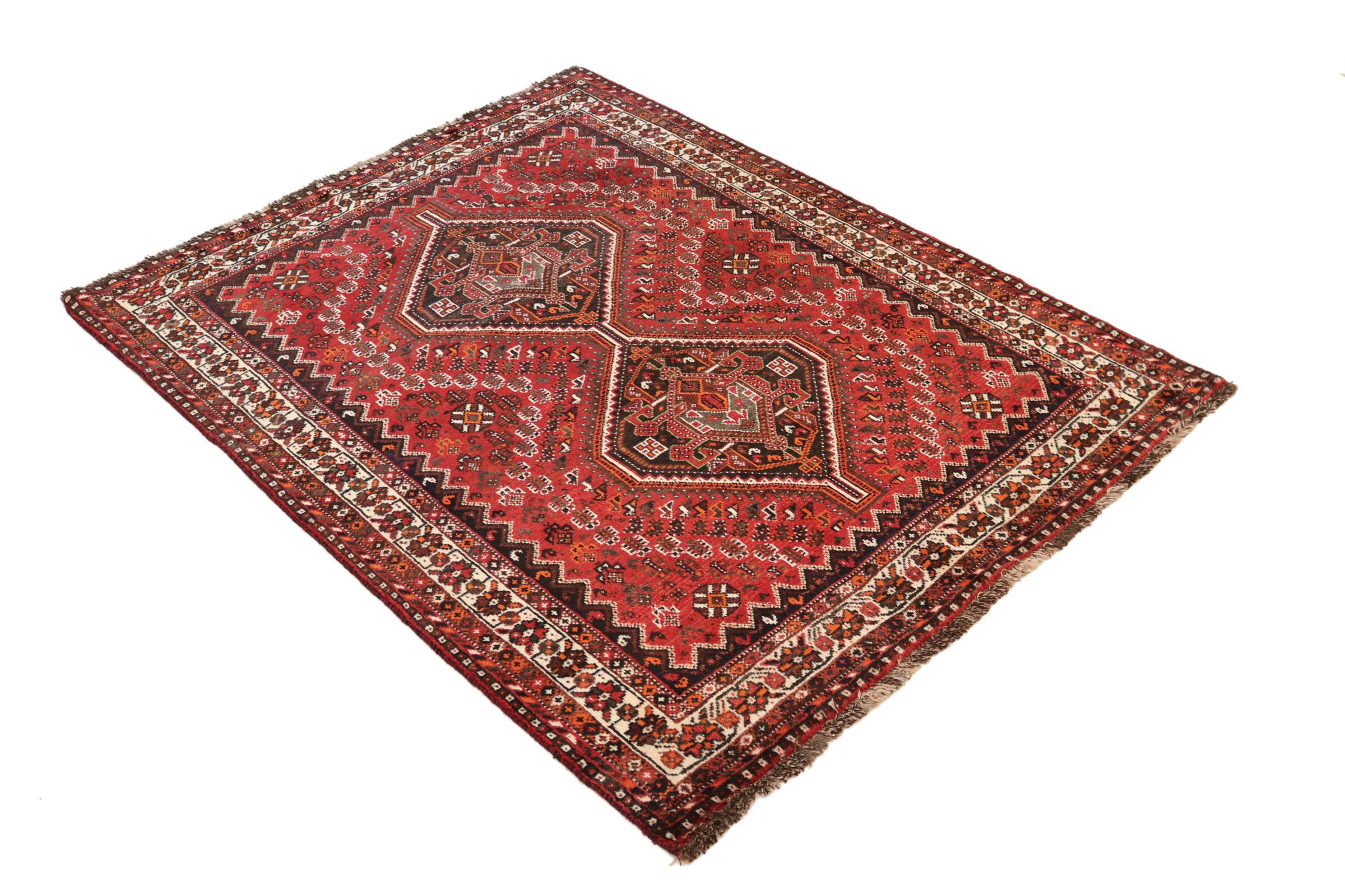 Dette Shiraz tæppe afspejler håndværk af nomader i Fars-provinsen. Bare dens enkle design, de smukke farver og den god kvalitet taler for ham, lige som dens lange liv. Dem som værdsætter persiske tæpper, vil elske en Shiraz.