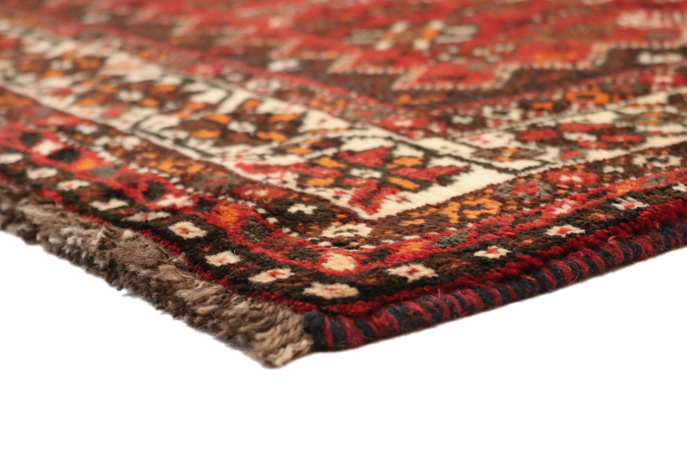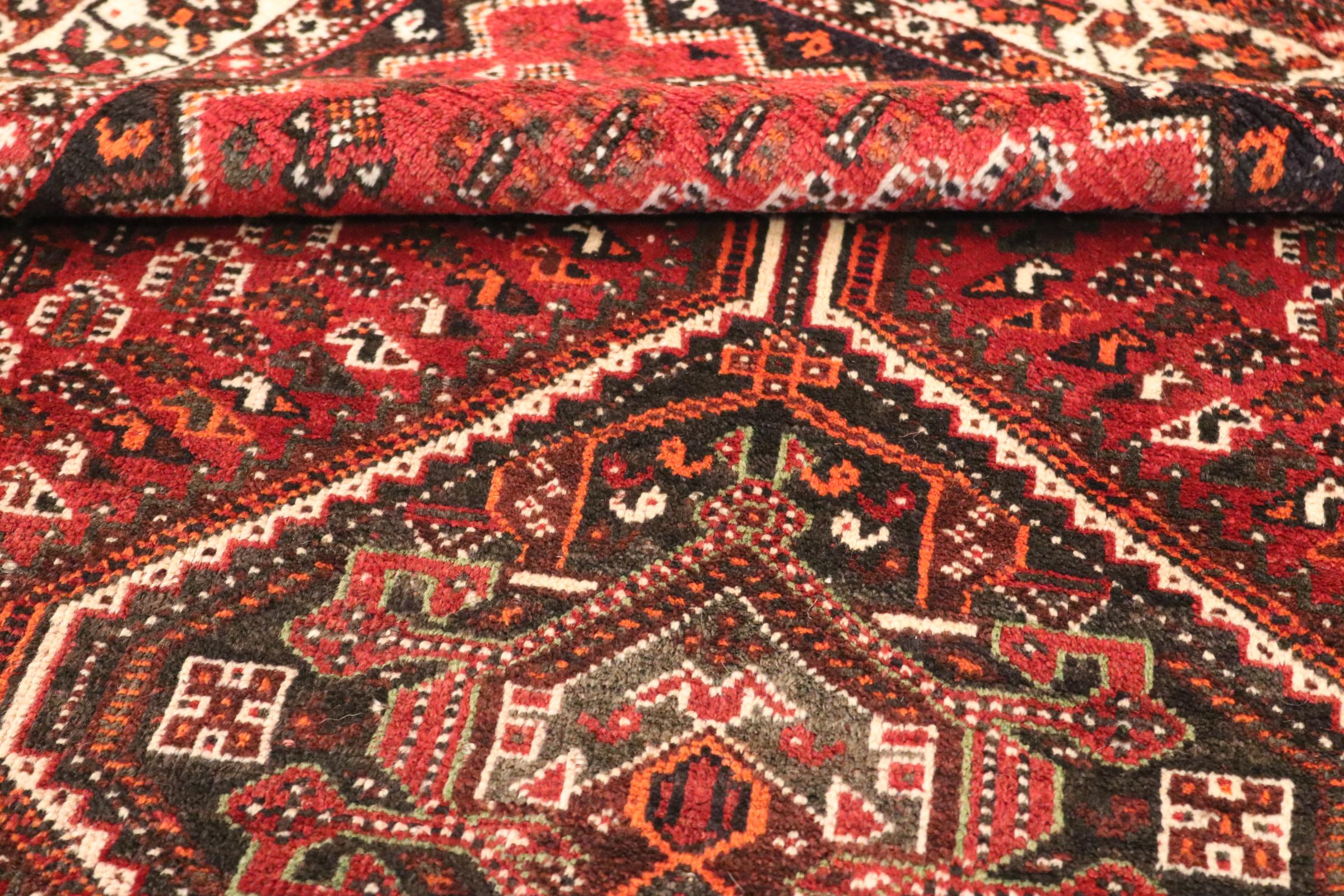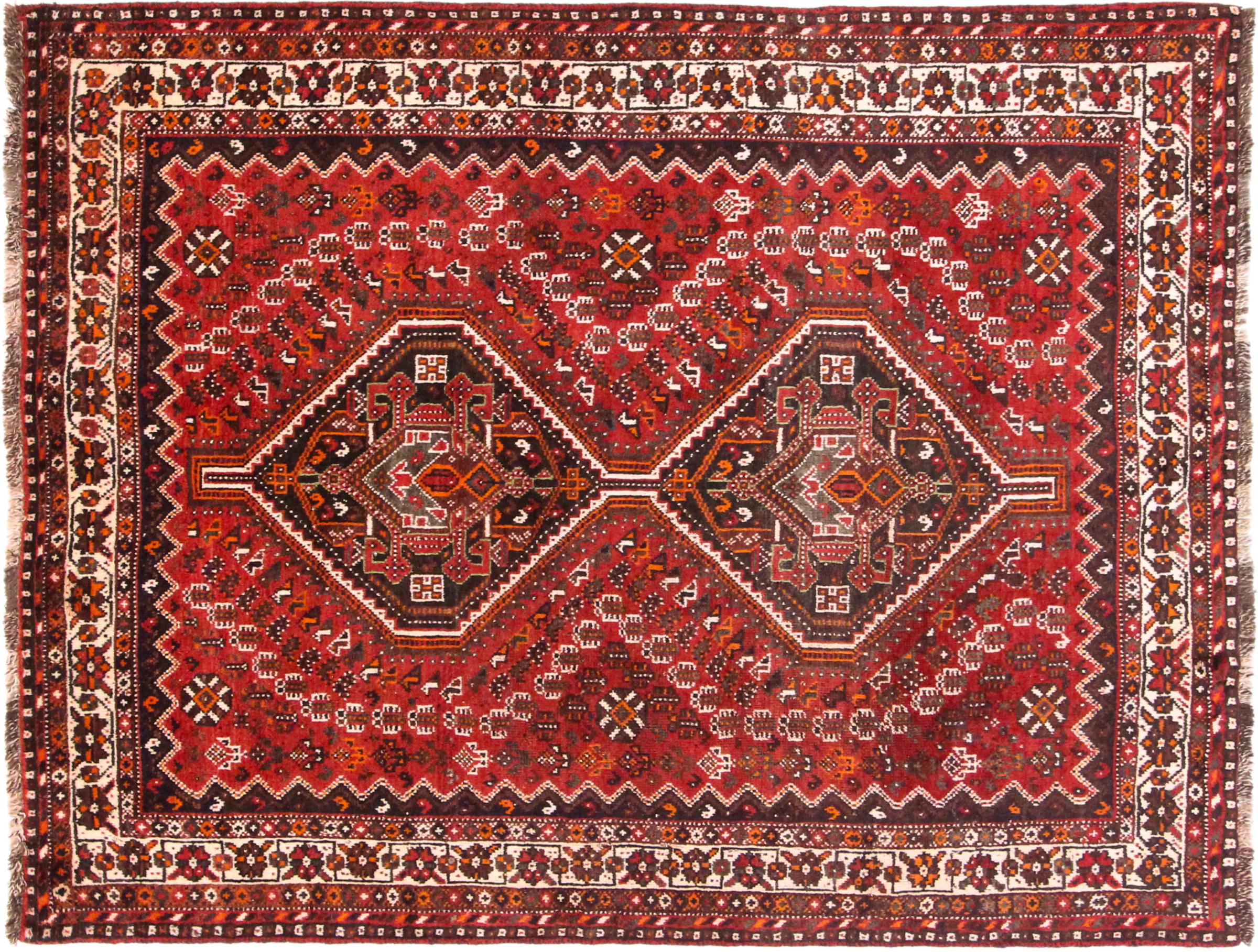 Dette Shiraz tæppe afspejler håndværk af nomader i Fars-provinsen. Bare dens enkle design, de smukke farver og den god kvalitet taler for ham, lige som dens lange liv. Dem som værdsætter persiske tæpper, vil elske en Shiraz.