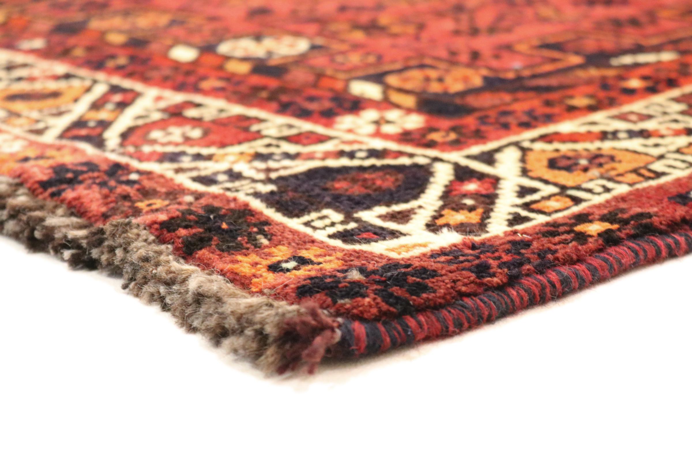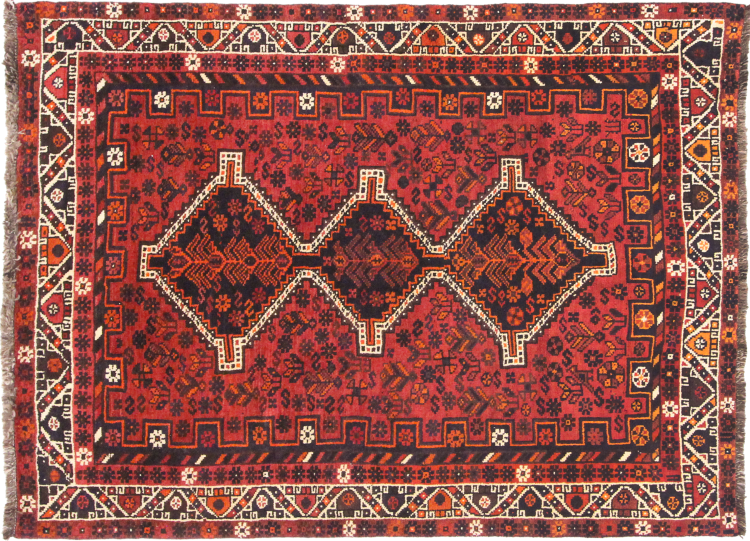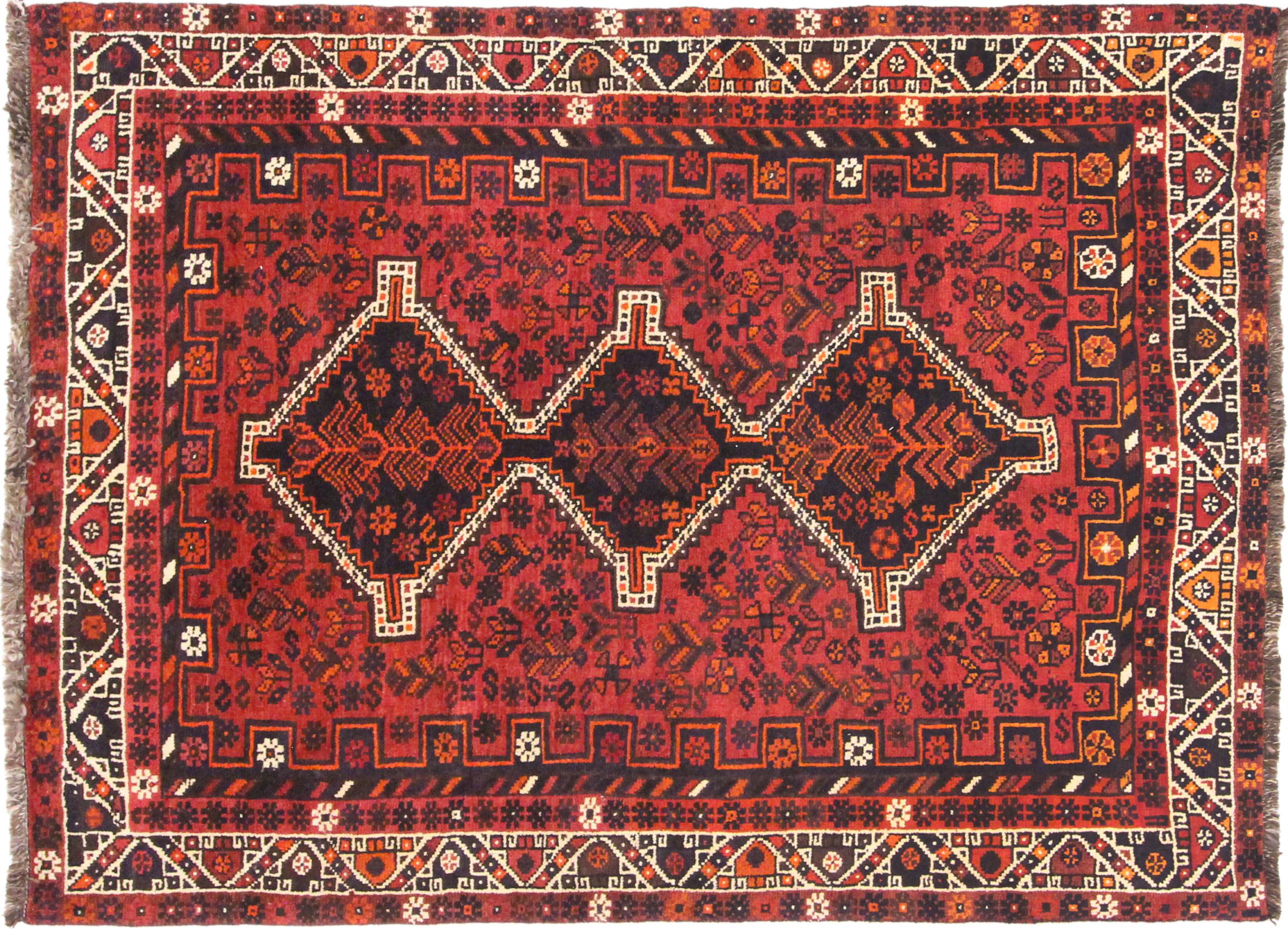 Dette Shiraz tæppe afspejler håndværk af nomader i Fars-provinsen. Bare dens enkle design, de smukke farver og den god kvalitet taler for ham, lige som dens lange liv. Dem som værdsætter persiske tæpper, vil elske en Shiraz.