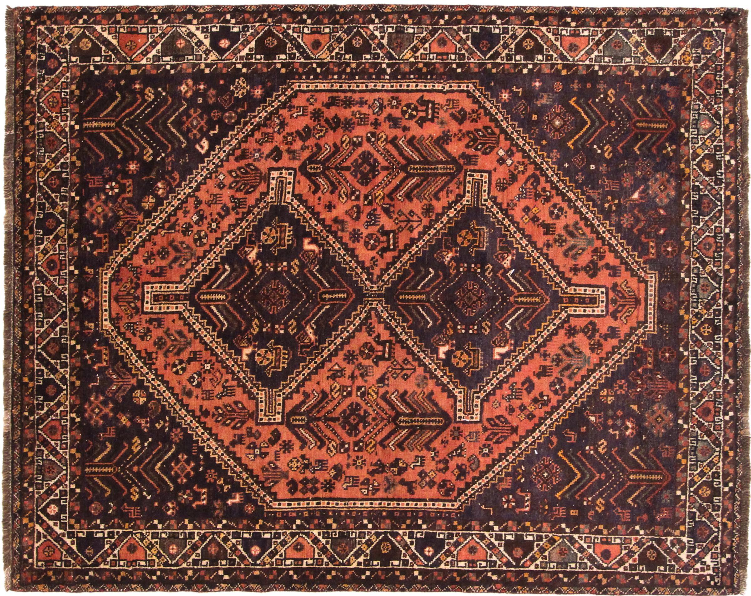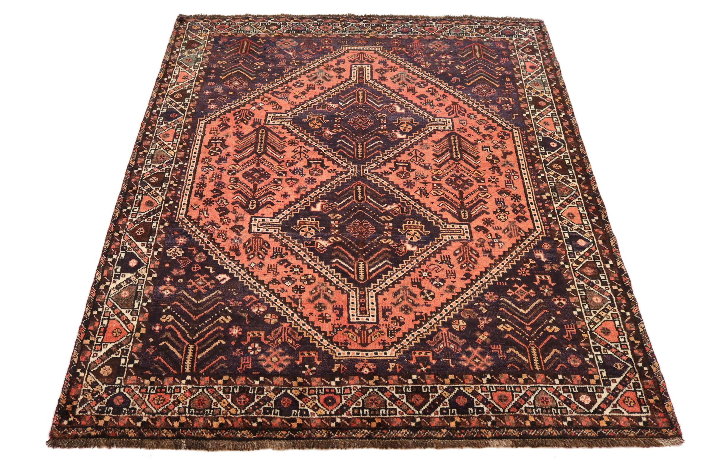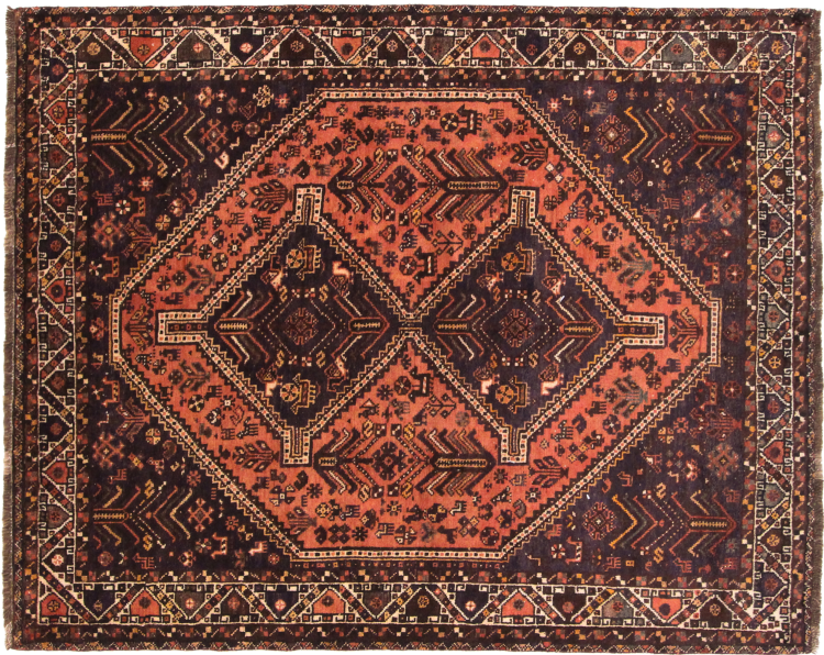 Dette Shiraz tæppe afspejler håndværk af nomader i Fars-provinsen. Bare dens enkle design, de smukke farver og den god kvalitet taler for ham, lige som dens lange liv. Dem som værdsætter persiske tæpper, vil elske en Shiraz.